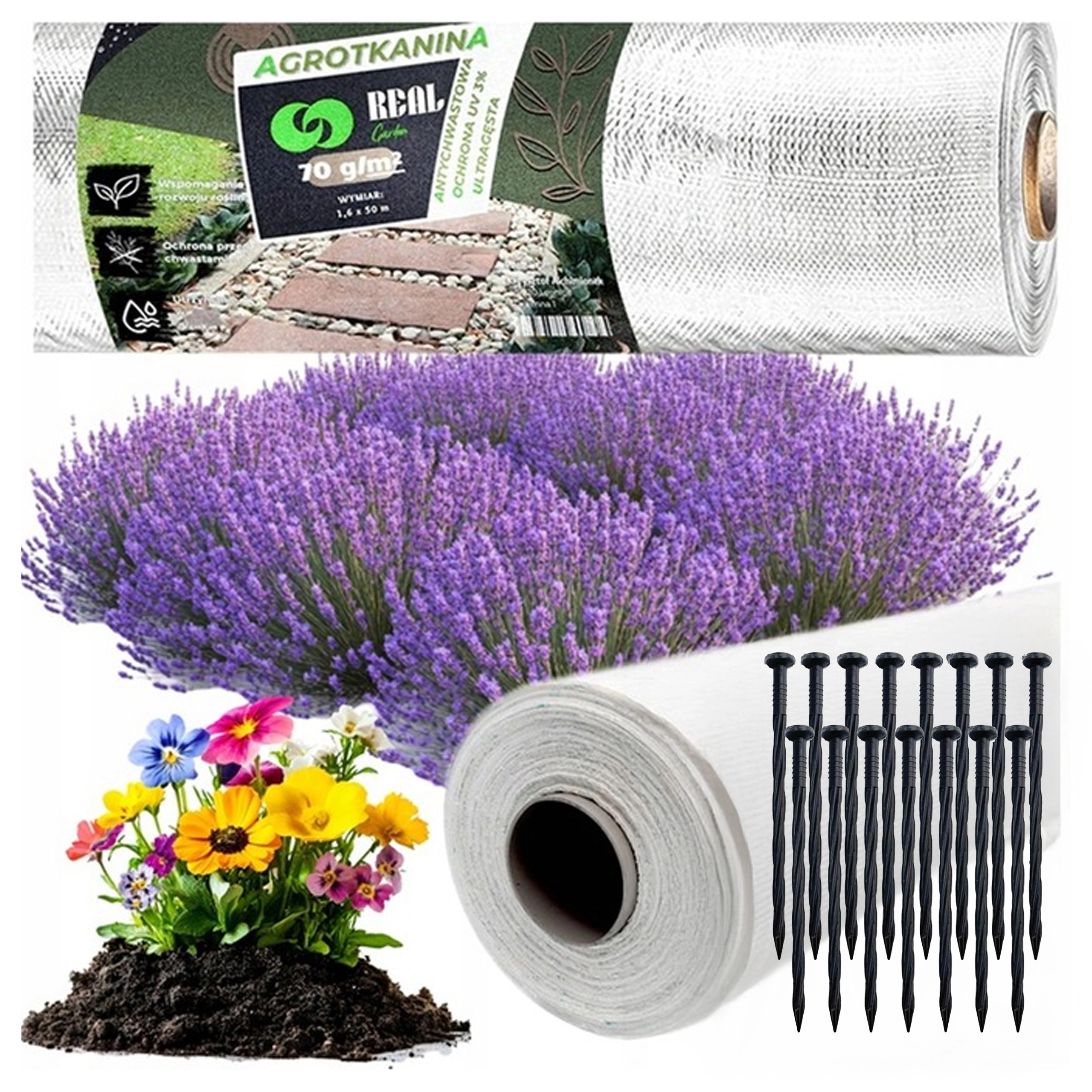 Nasvet za uporabo: Pred polaganjem odstranite plevel, poravnajte površino, raztegnite tekstilijo, pritrdite jo s klini in zarežite križne odprtine za sajenje. Na koncu prekrijte z dekorativnim lubjem ali prodom.
