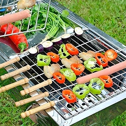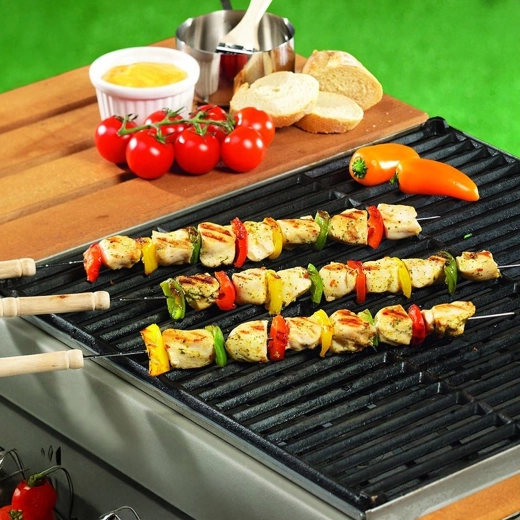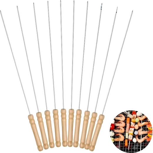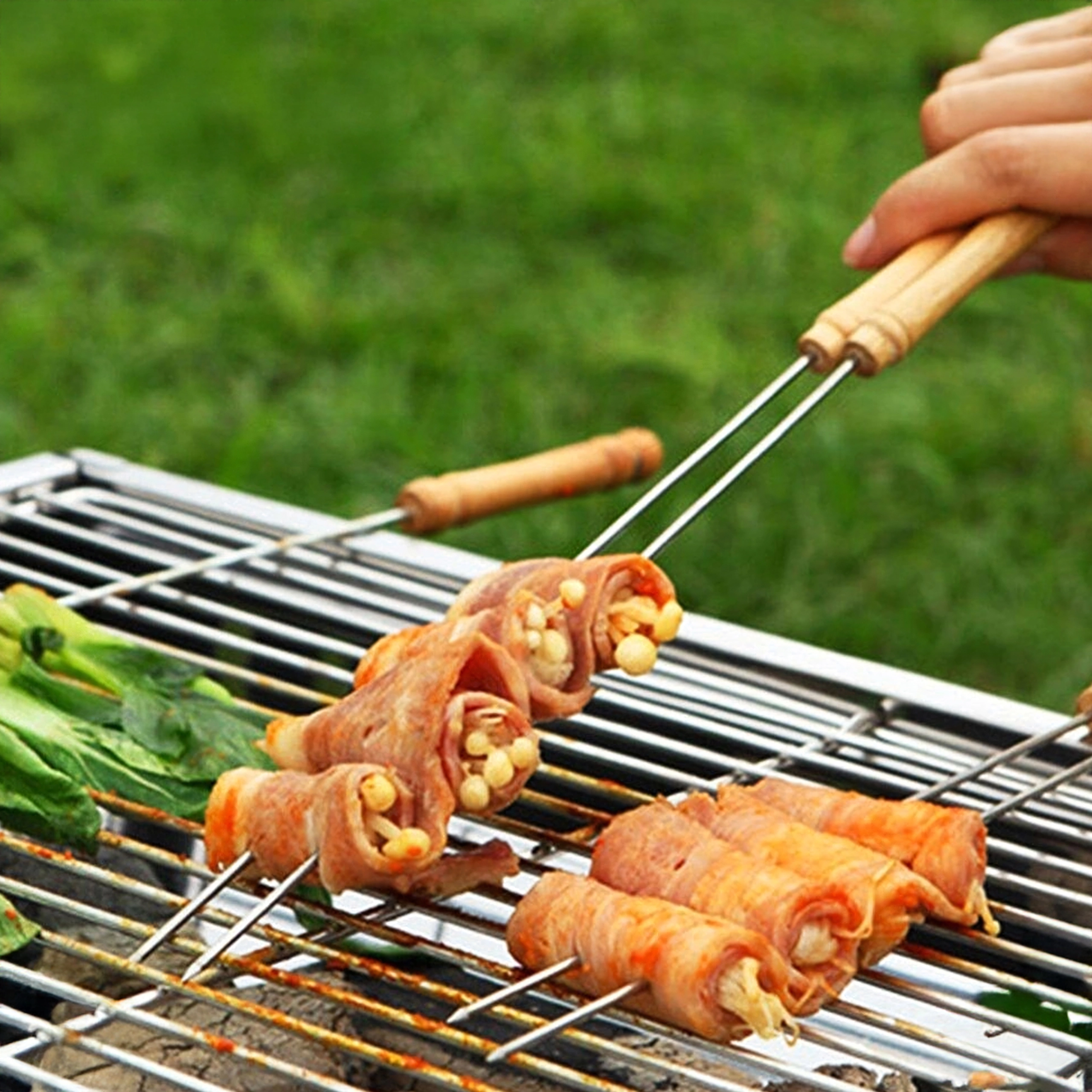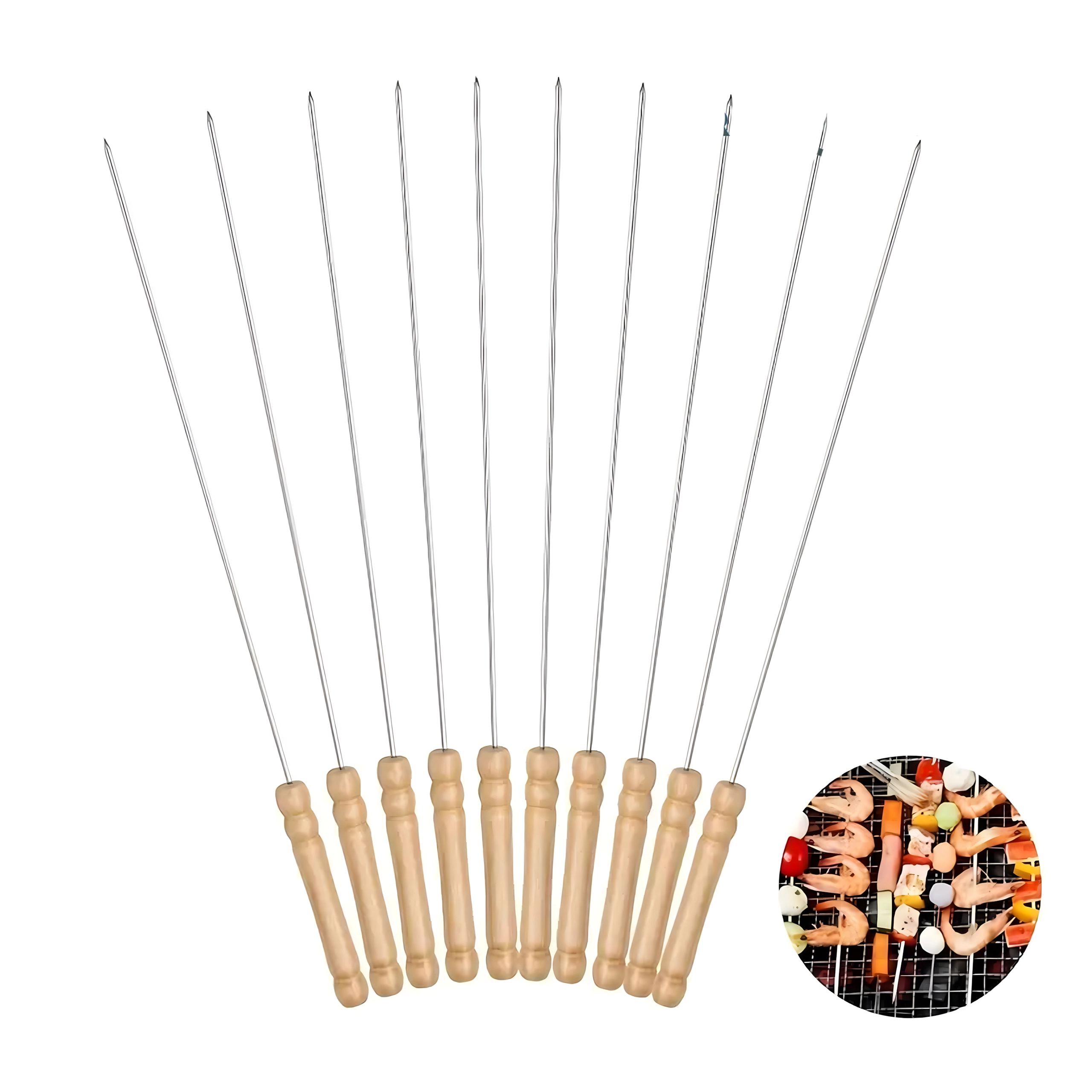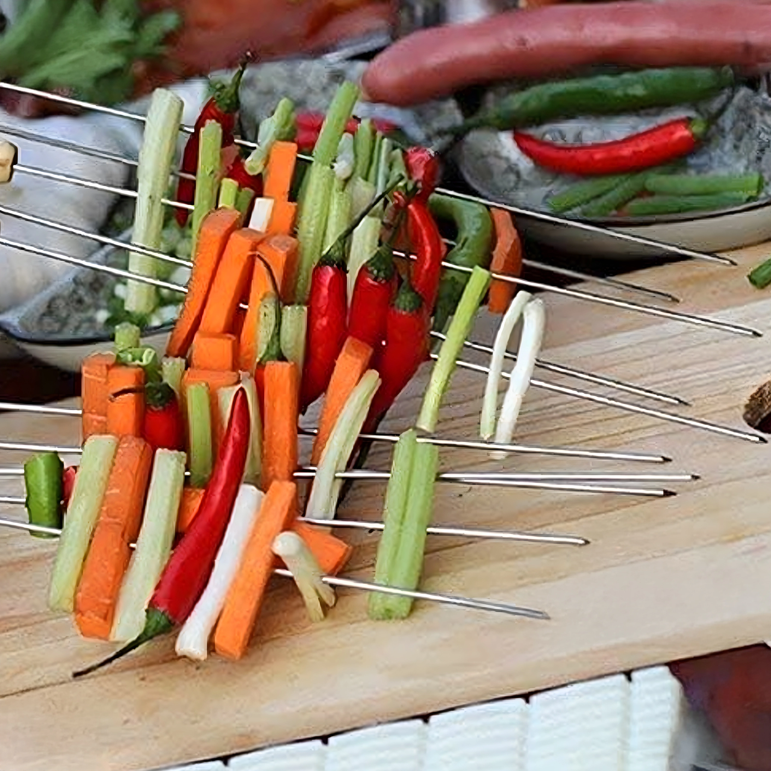 Uživajte v brezskrbnem peki na žaru z setom kovinskih nabodal iz odpornega nerjavečega jekla. Zaradi kakovostne izdelave so stabilna, čvrsta in hrana na njih dobro drži brez vrtenja. So nevtralna do živil in zdravju neškodljiva, zato so primerna za meso, zelenjavo in morske sadeže.