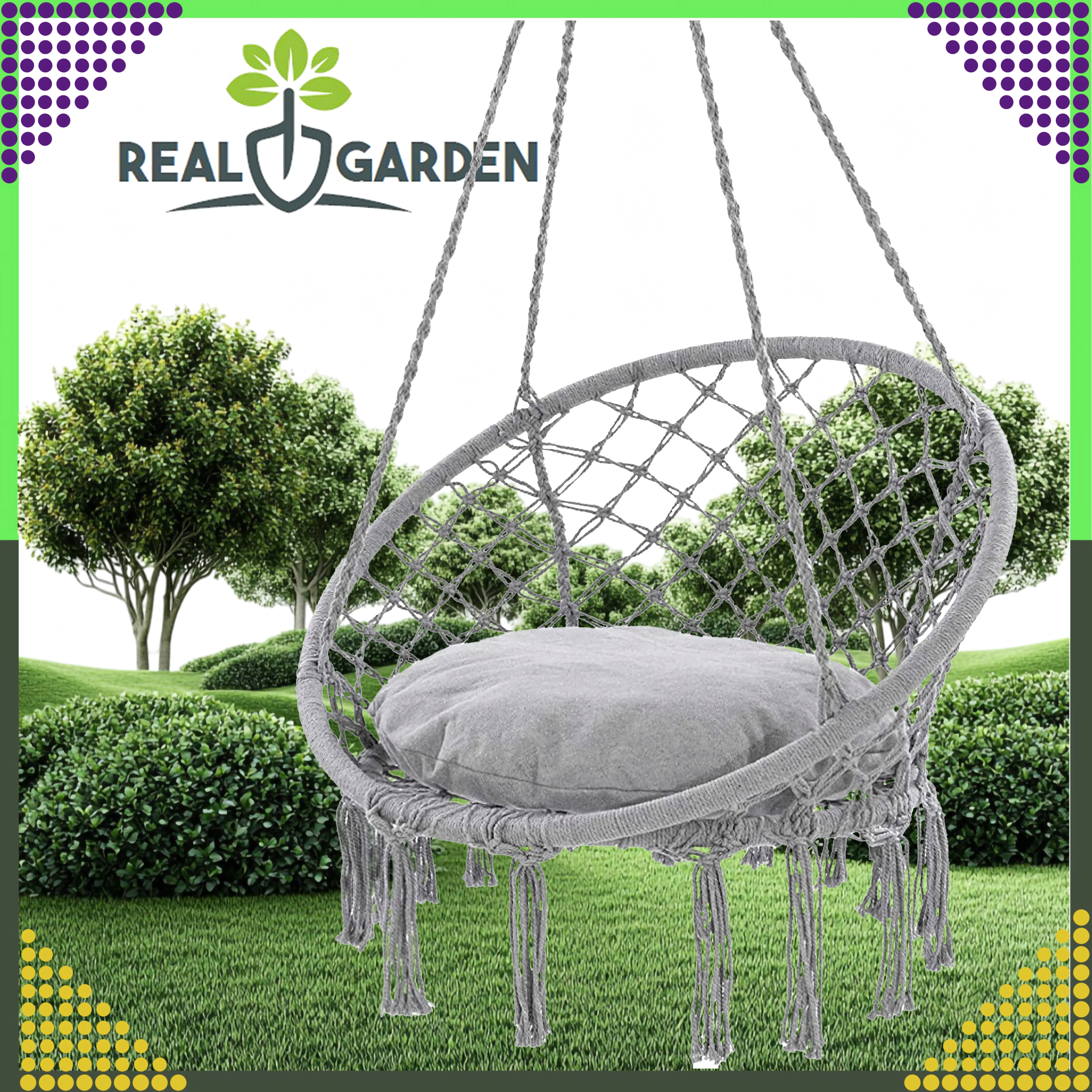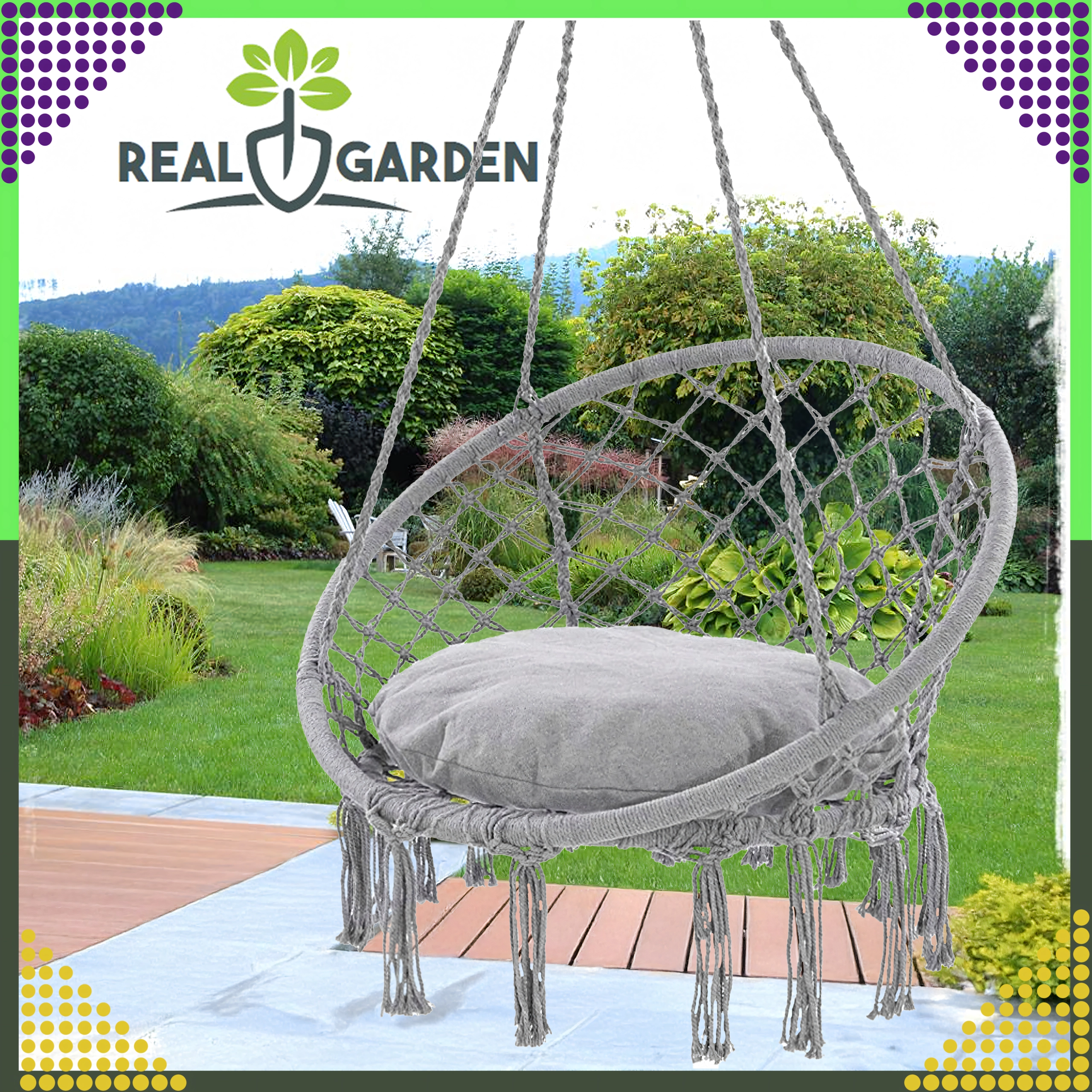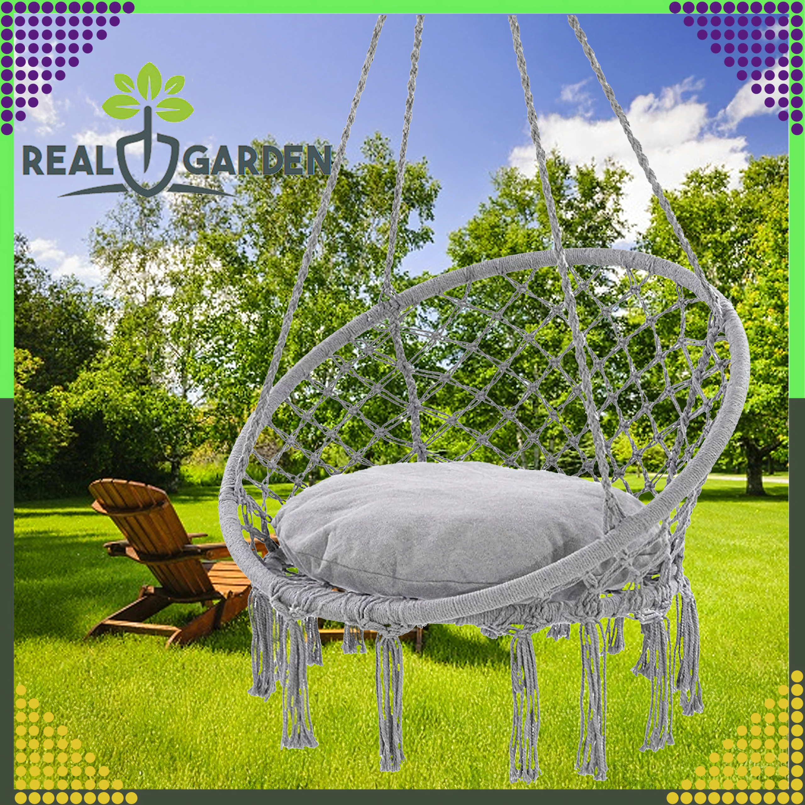 Montaža je hitra in prilagodljiva: izberite klasično obešanje za guganje naprej in nazaj ali združite dva nosilca ter uživajte v nežni rotaciji, idealni za branje. Blazina v paketu poveča udobje, da bo vaš počitek še prijetnejši.