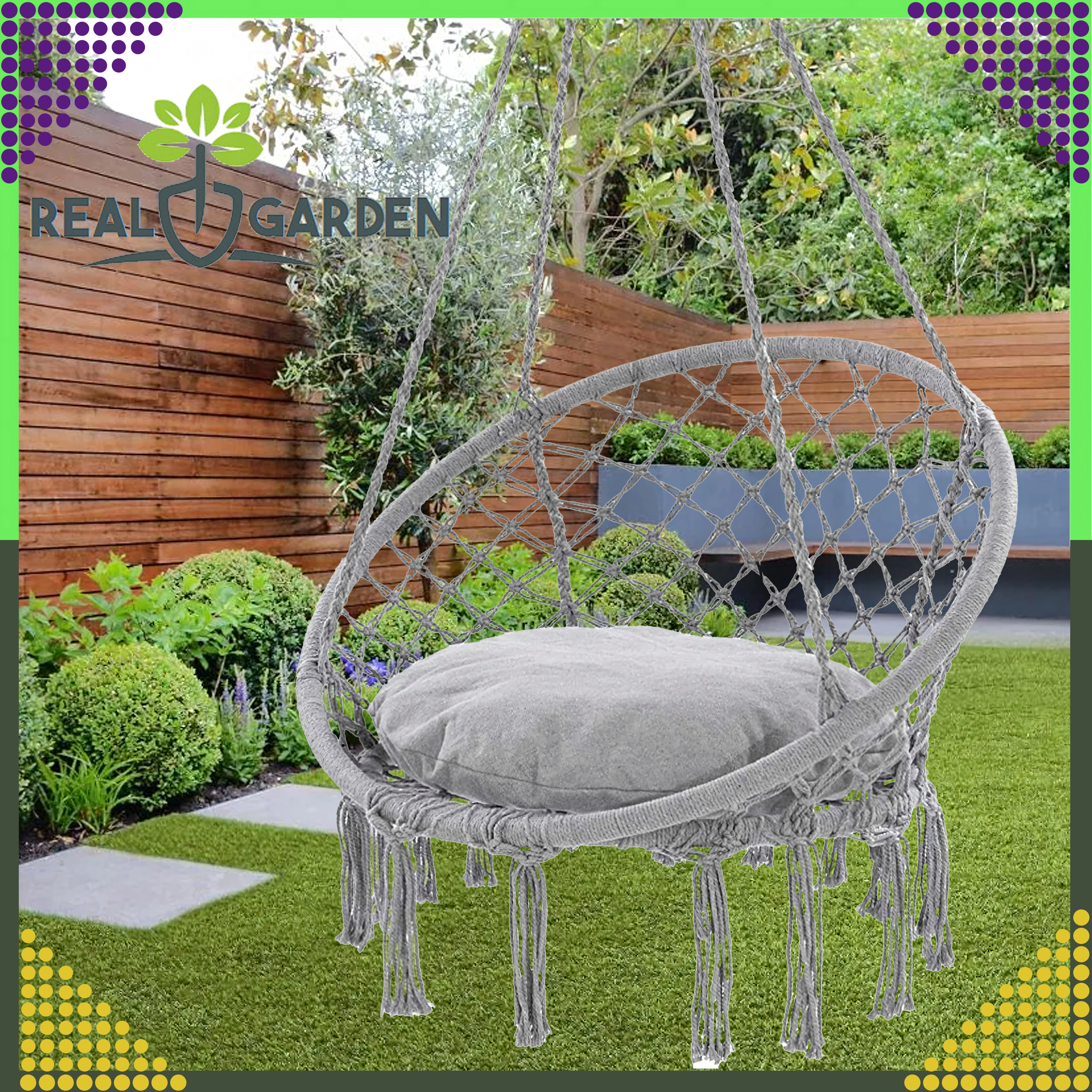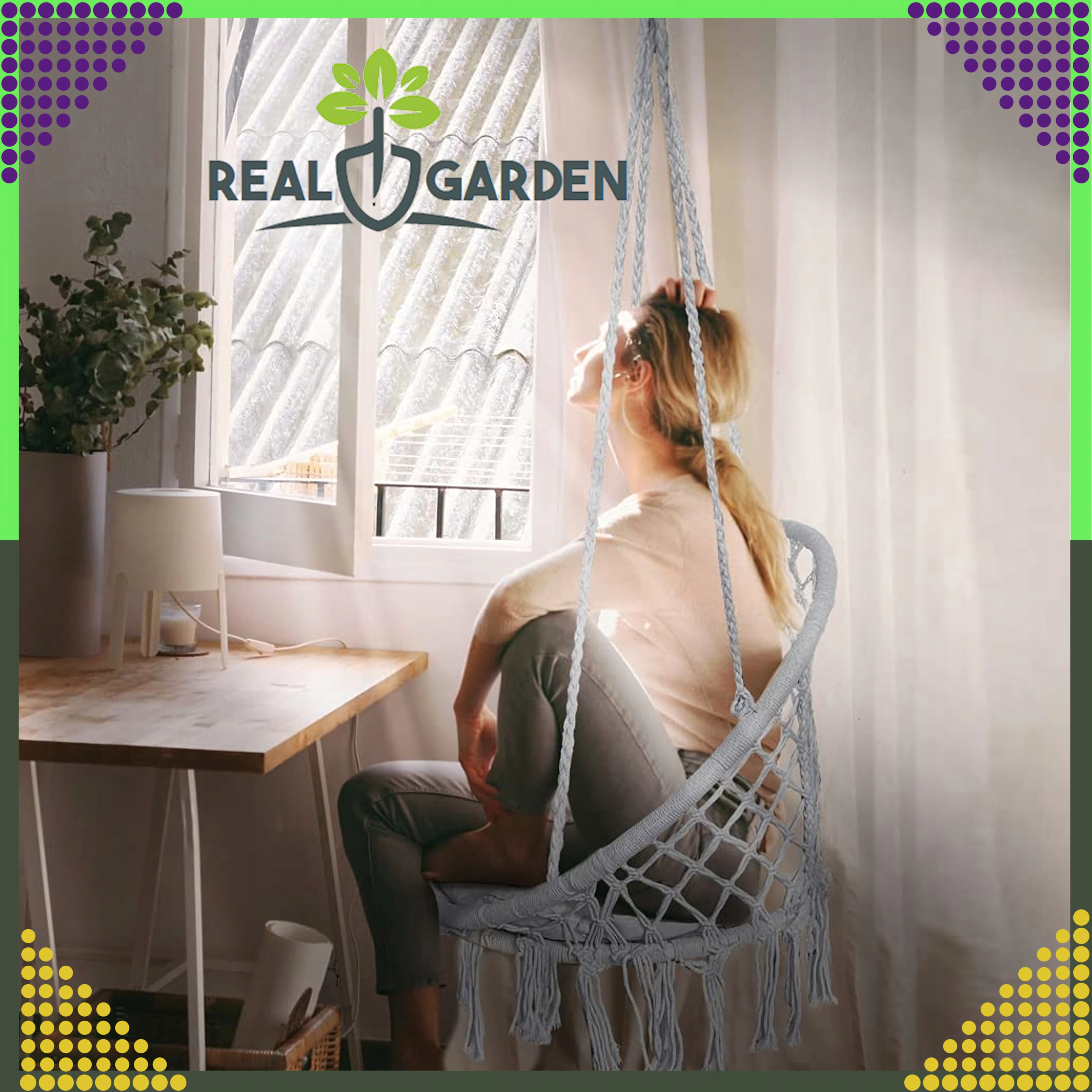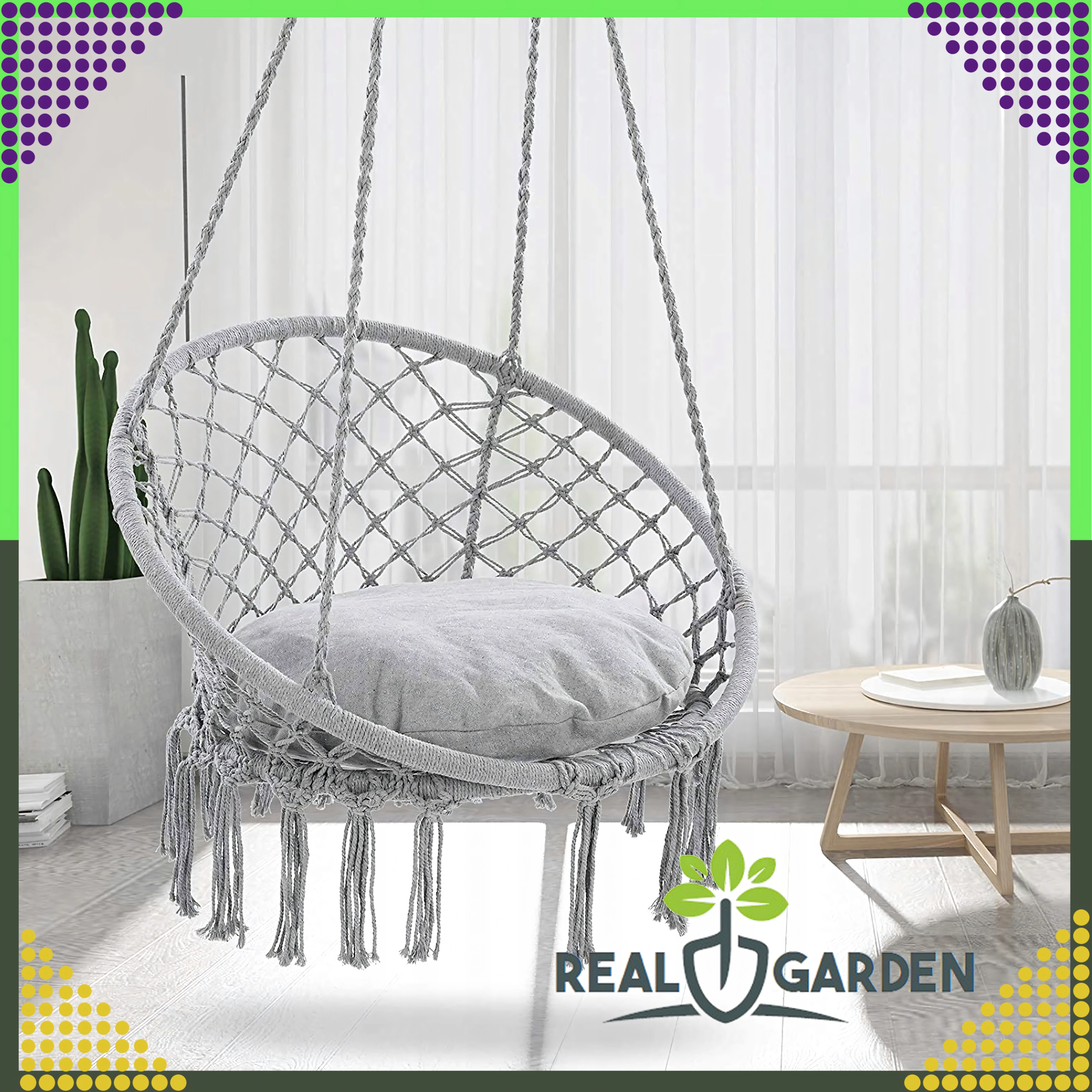 Montaža je hitra in prilagodljiva: izberite klasično obešanje za guganje naprej in nazaj ali združite dva nosilca ter uživajte v nežni rotaciji, idealni za branje. Blazina v paketu poveča udobje, da bo vaš počitek še prijetnejši.