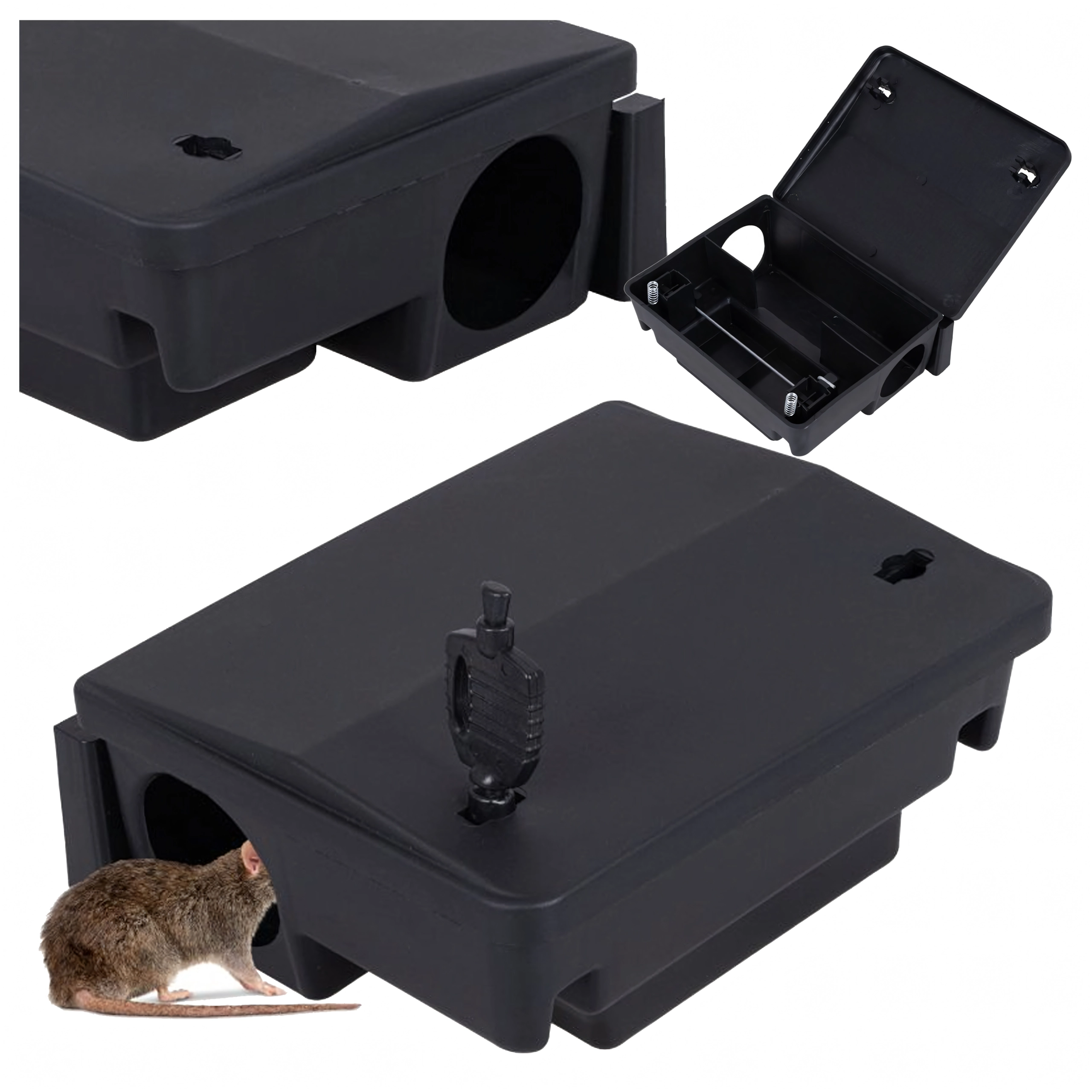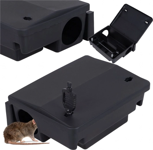 Zaklenljiv krmilnik za glodavce omogoča varno shranjevanje strupa (vaba ni del pakiranja) in privabljanje škodljivcev z vonjem neposredno v postajo. Robusten PP plastičen ohišje zagotavlja visoko odpornost, enostavno vzdrževanje in dolgo življenjsko dobo, tako v gospodinjstvih kot v skladiščih, garažah ali obratih.