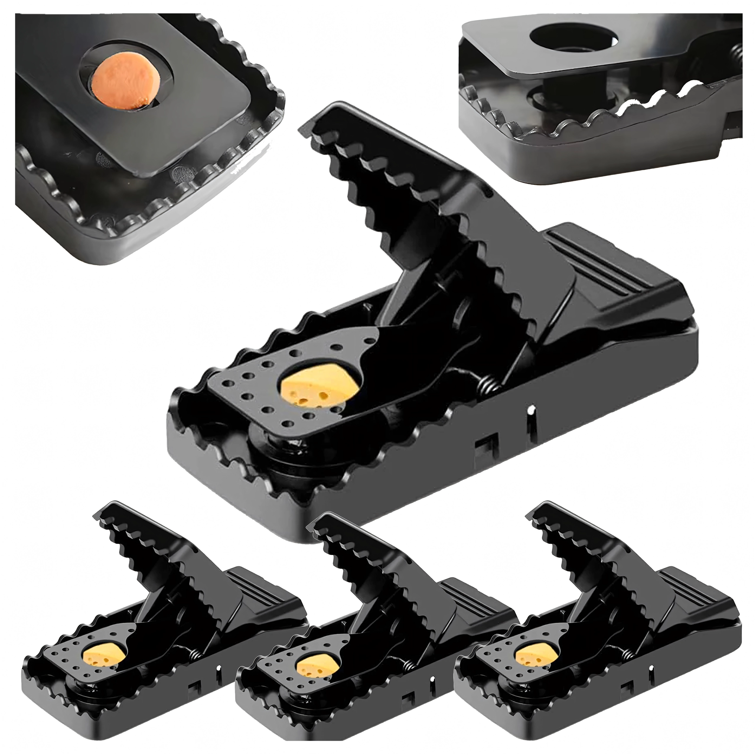 Praktičen komplet 4 pastí za miši in podgane iz odporne plastike za hitro in higiensko zatiranje glodavcev v gospodinjstvu. Past ima močno vzmet, enostavno nastavitev z ročico in vgrajen nastavek za vabo za varno in učinkovito uporabo v kuhinji, shrambi, garaži ali kleti.