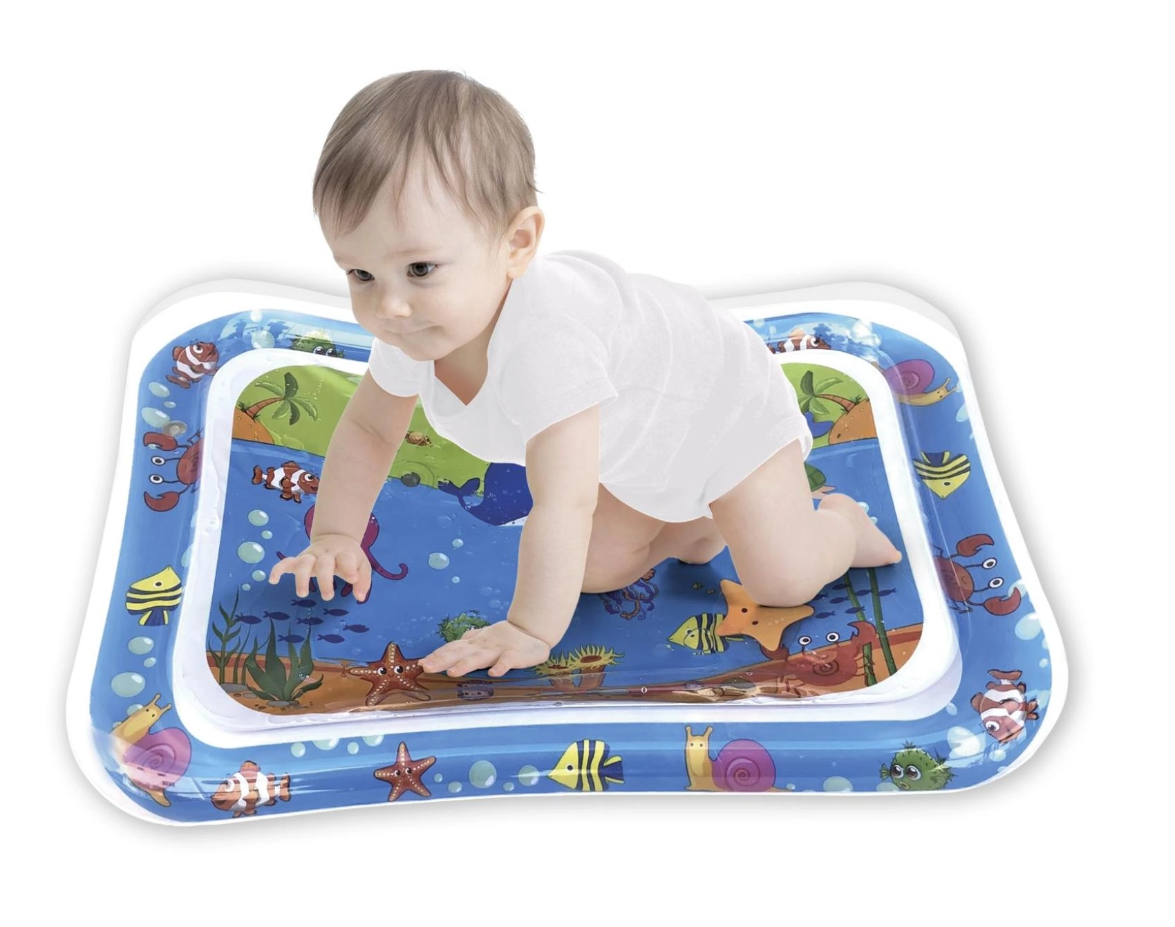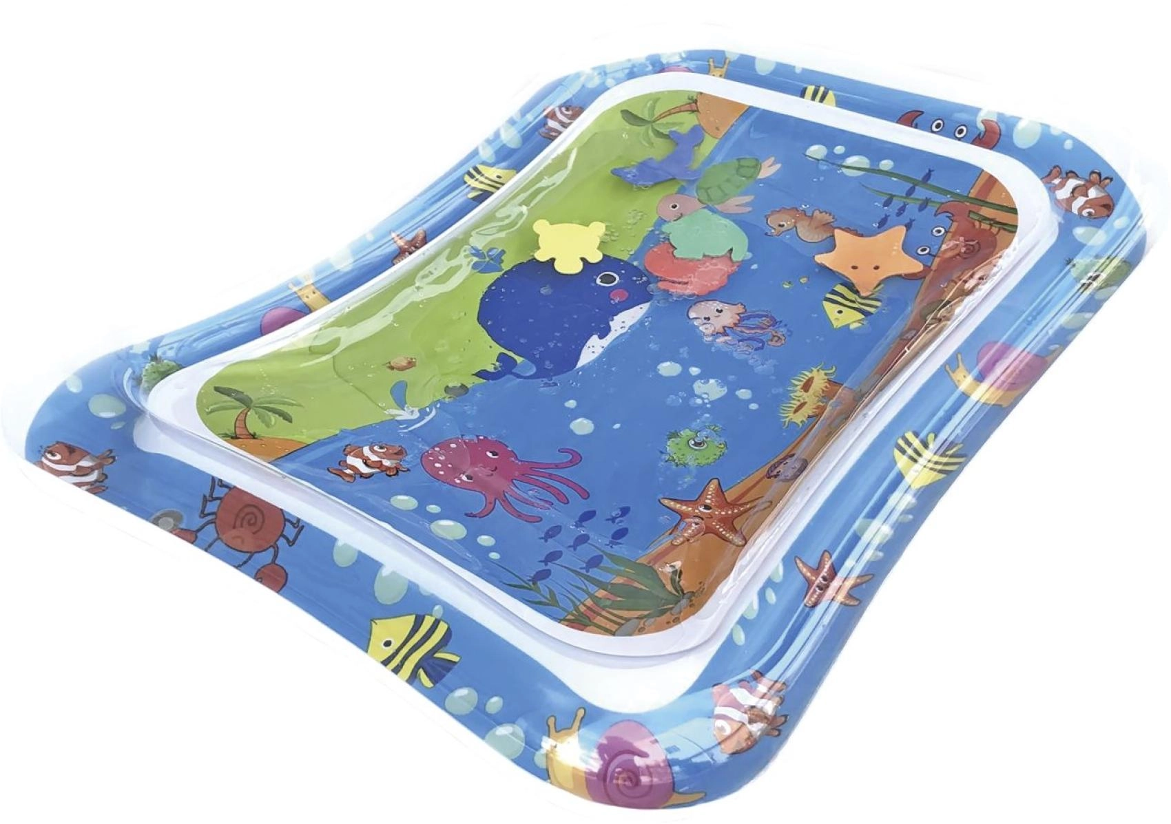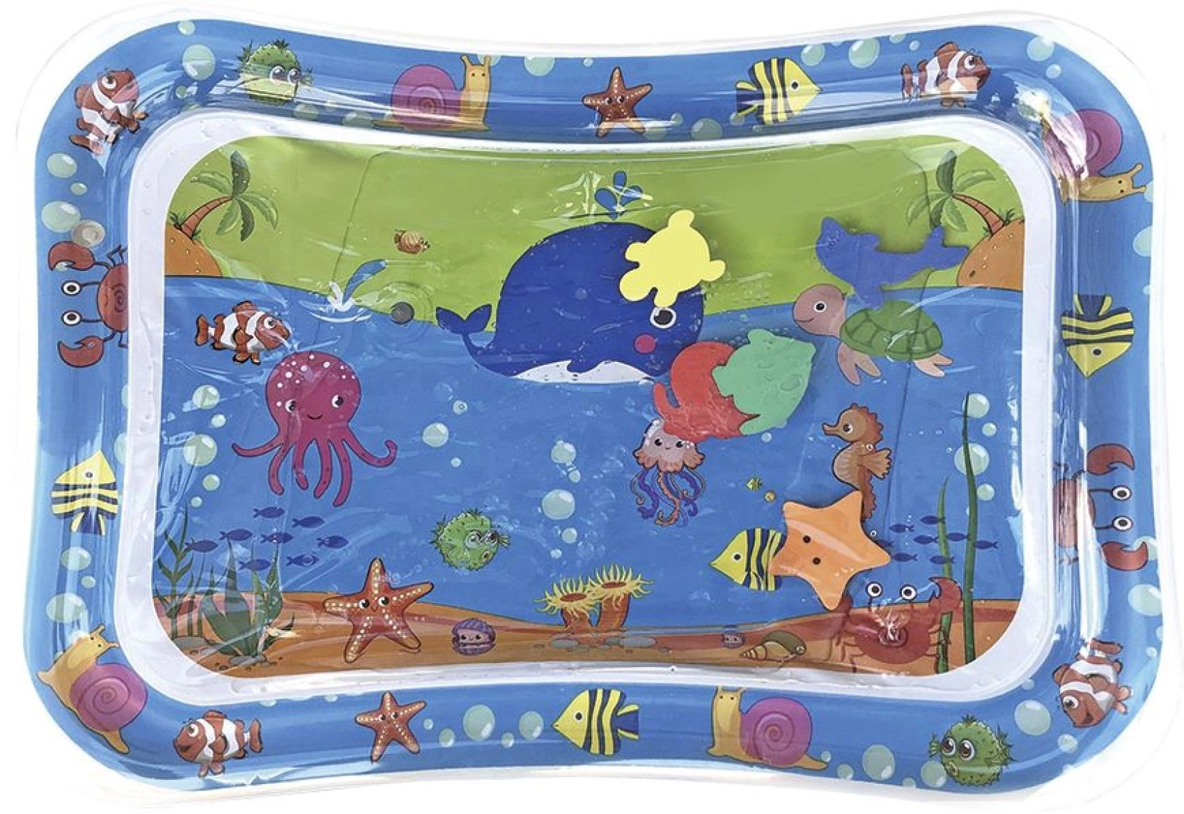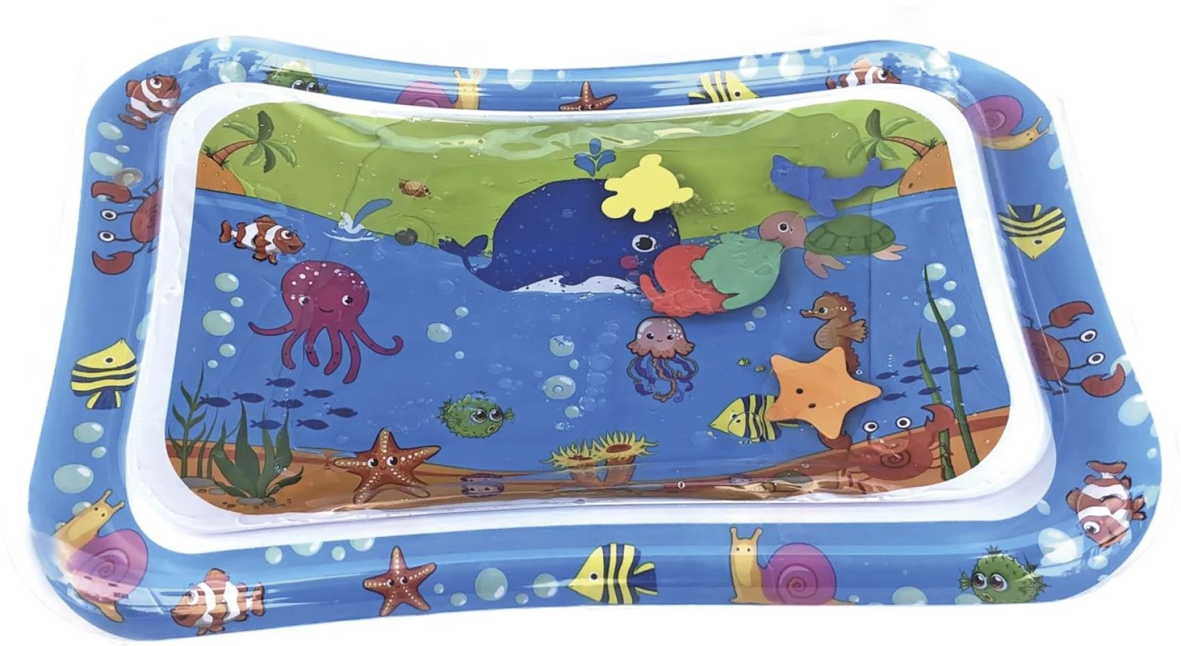 Ta napihljiva vodna blazina z oceanskimi motivi ponuja otrokom varno in zabavno okolje za igro na trebuhu in prve dvige glavice. Vodna komora s plavajočimi oblikami ustvarja učinek gibanja, ki naravno spodbuja vid, tip in koordinacijo oko–roka.