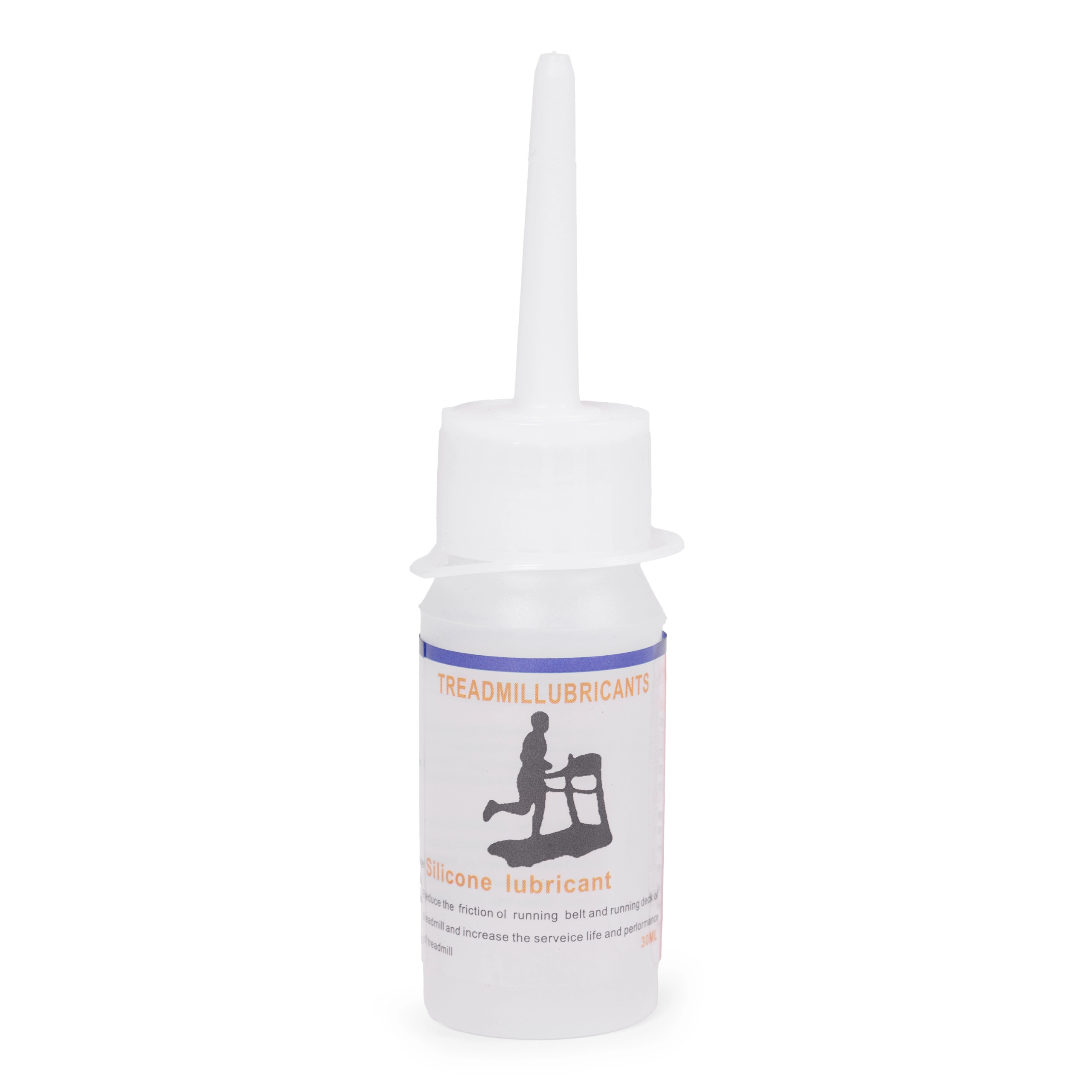 V paketu je priloženo silikonsko olje. Redno mazanje zmanjšuje trenje, utiša delovanje in podaljšuje življenjsko dobo tekaške deske in pasu.