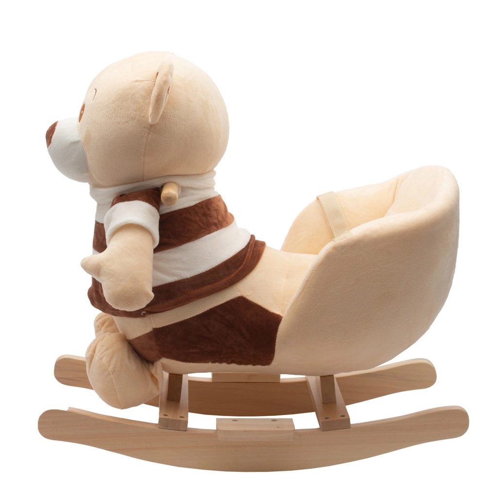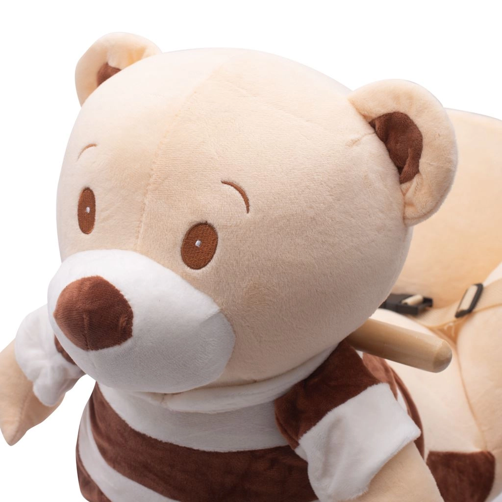 Gugalna igrača PlayTo v obliki medvedka je izdelana iz kakovostnega, na otip zelo prijetnega pliša, ki vabi k crkljanju. Zahvaljujoč ergonomsko oblikovanemu sedlu z varnostnim pasom in stabilni leseni konstrukciji lahko otroci uživajo v guganju z največjim udobjem in varnostjo.