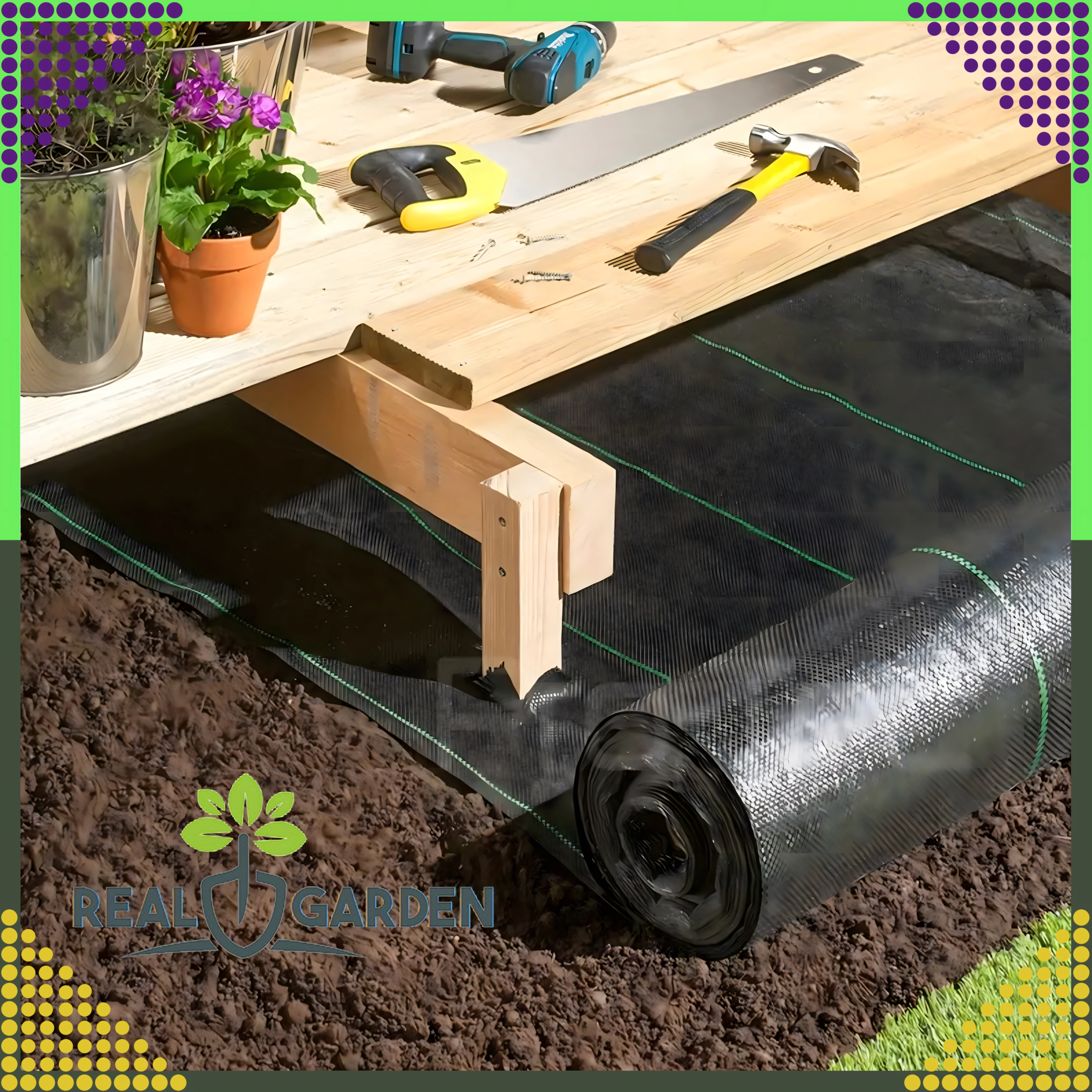 Zaradi UV stabilizacije je tekstil odporen na sončno sevanje in zdrži dolgotrajno zunanjo uporabo. Namestitev je enostavna – položite na pripravljen teren, pritrdite s količki in prekrijte z lubjem ali dekorativnim kamnom. Rola je dobavljena zložena na polovico za lažje rokovanje.