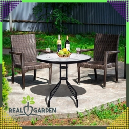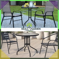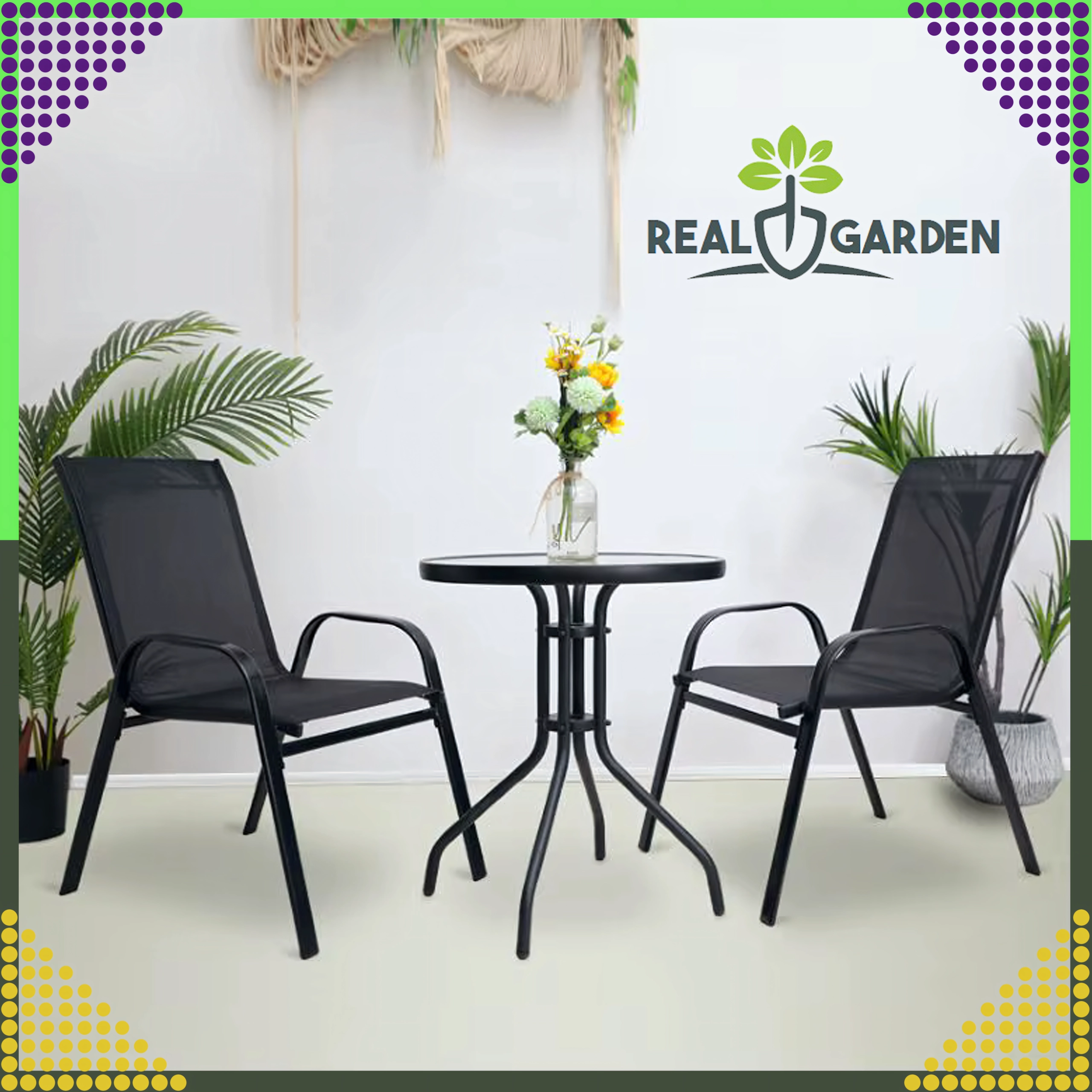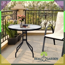 Robusten okvir iz jekla s prašnim lakiranjem zagotavlja stabilnost in zaščito pred korozijo, zato je mizica kot nalašč za zunanjost – balkon, teraso, patio in vrt. Zahvaljujoč univerzalni črni barvi se ujema z večino vrtnega pohištva ter deluje moderno in elegantno.