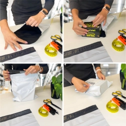 Peel-and-seal trak omogoča, da pošiljko zaprete v nekaj sekundah brez dodatnih pripomočkov. Zapiranje je čvrsto in z dokazljivim posegom (tamper-evident).