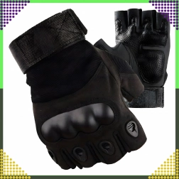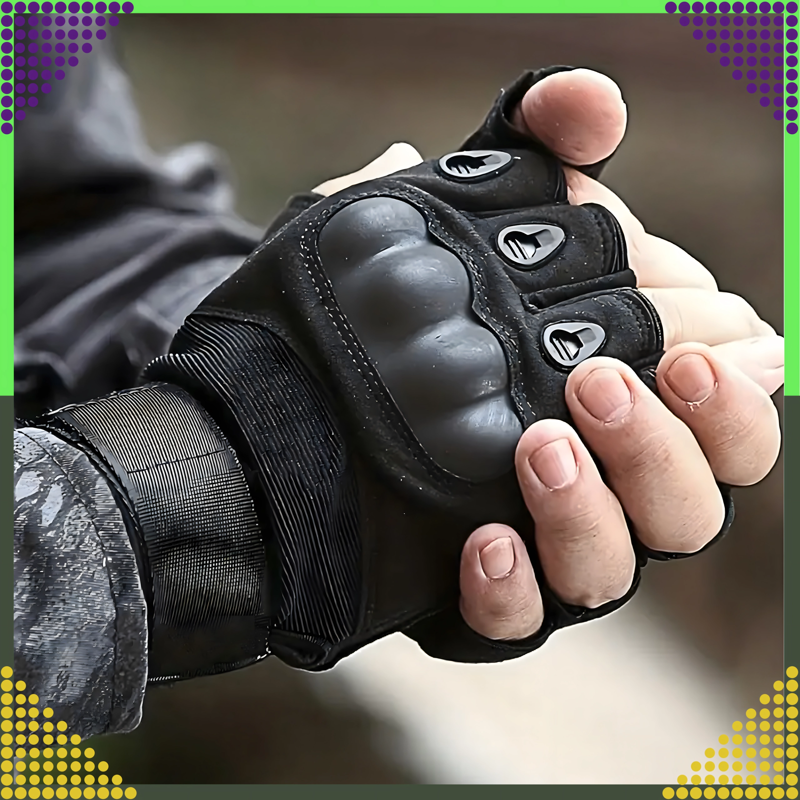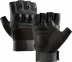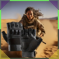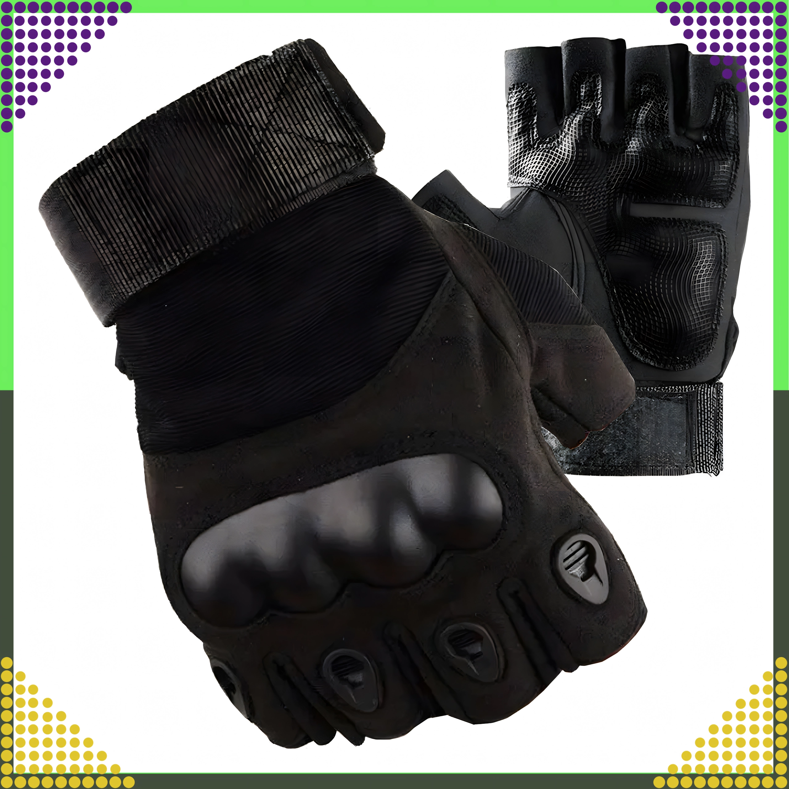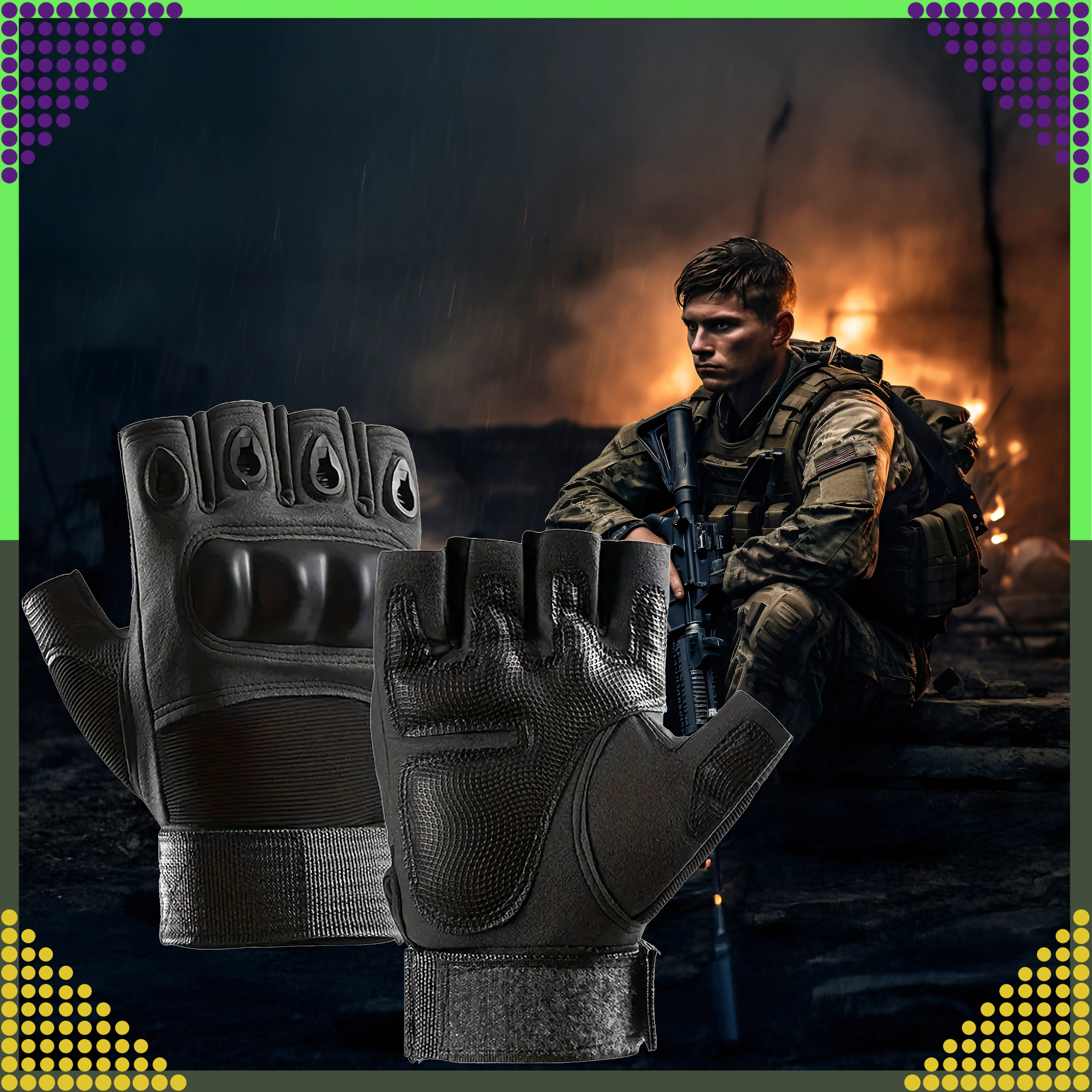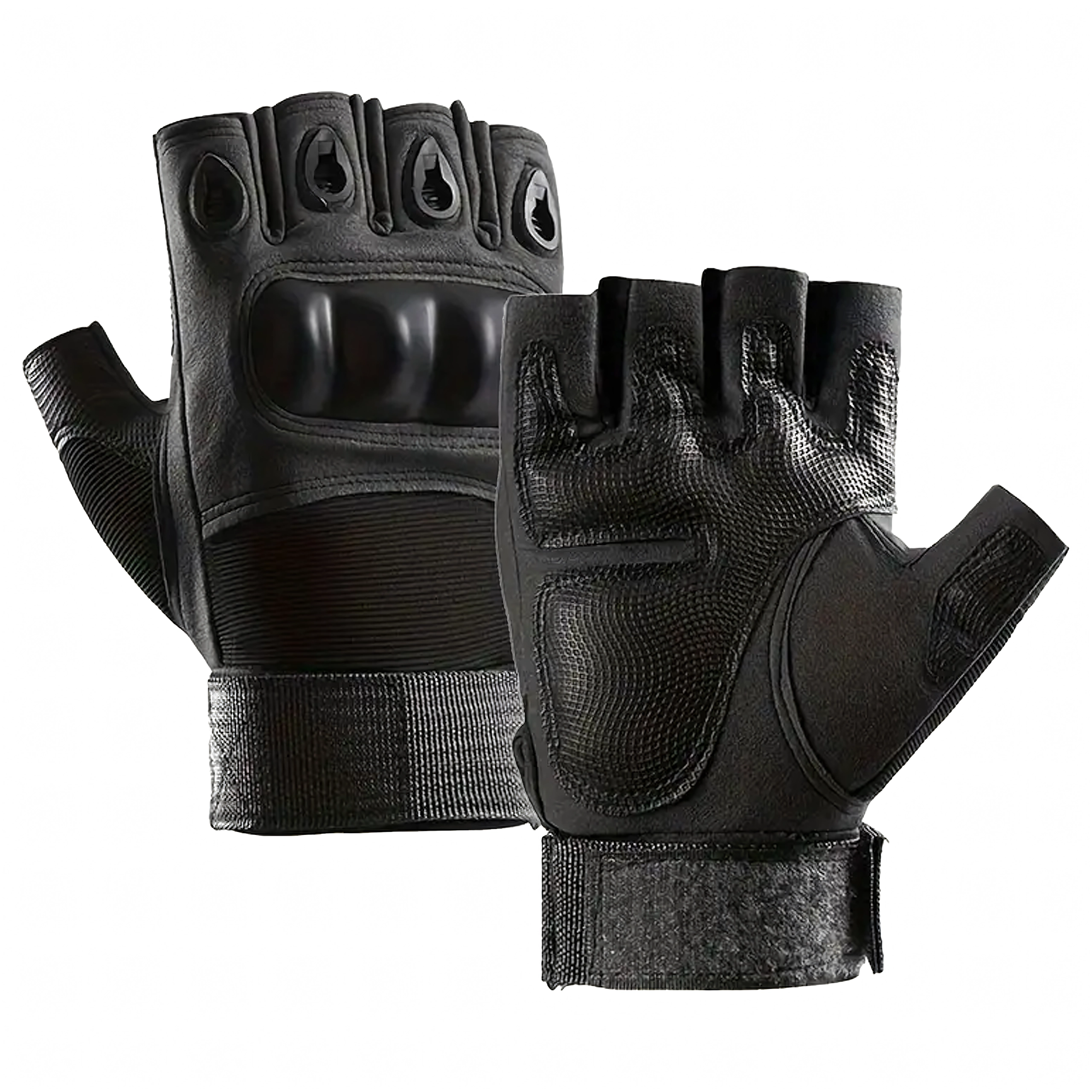 Te brezprstne taktične rokavice združujejo vzdržljivost in udobje za dolgotrajno nošenje. Ojačana zaščita členkov in oblazinjenje blažita udarce, medtem ko teksturiran dlan zagotavlja zanesljiv oprijem tudi v zahtevnih pogojih. Odprti konci prstov omogočajo maksimalen občutek in natančnost pri delu z orodjem ali orožjem.