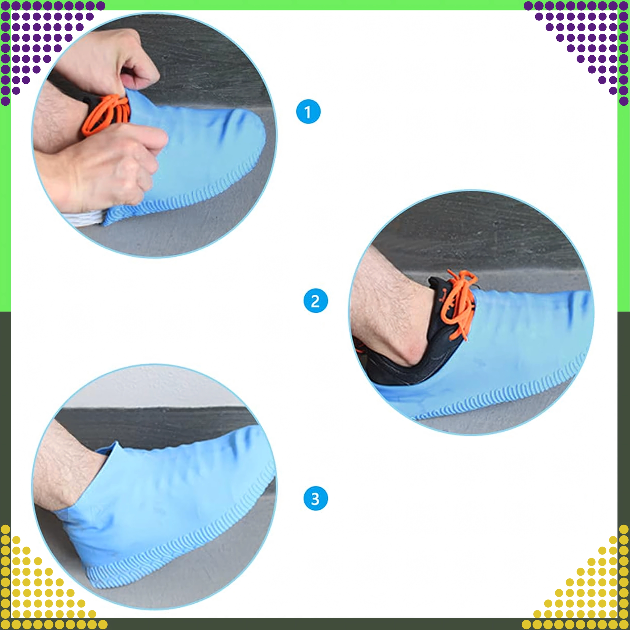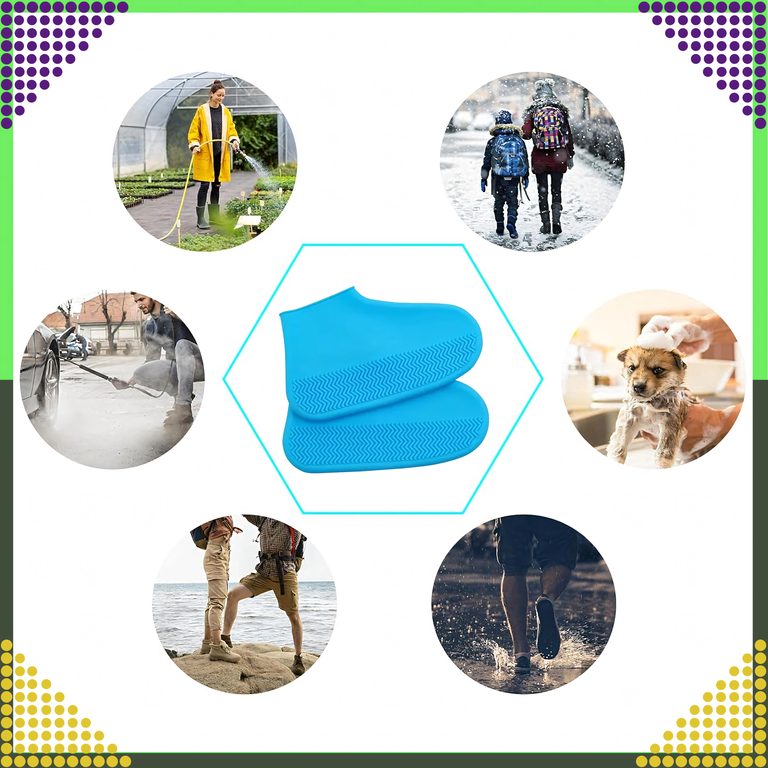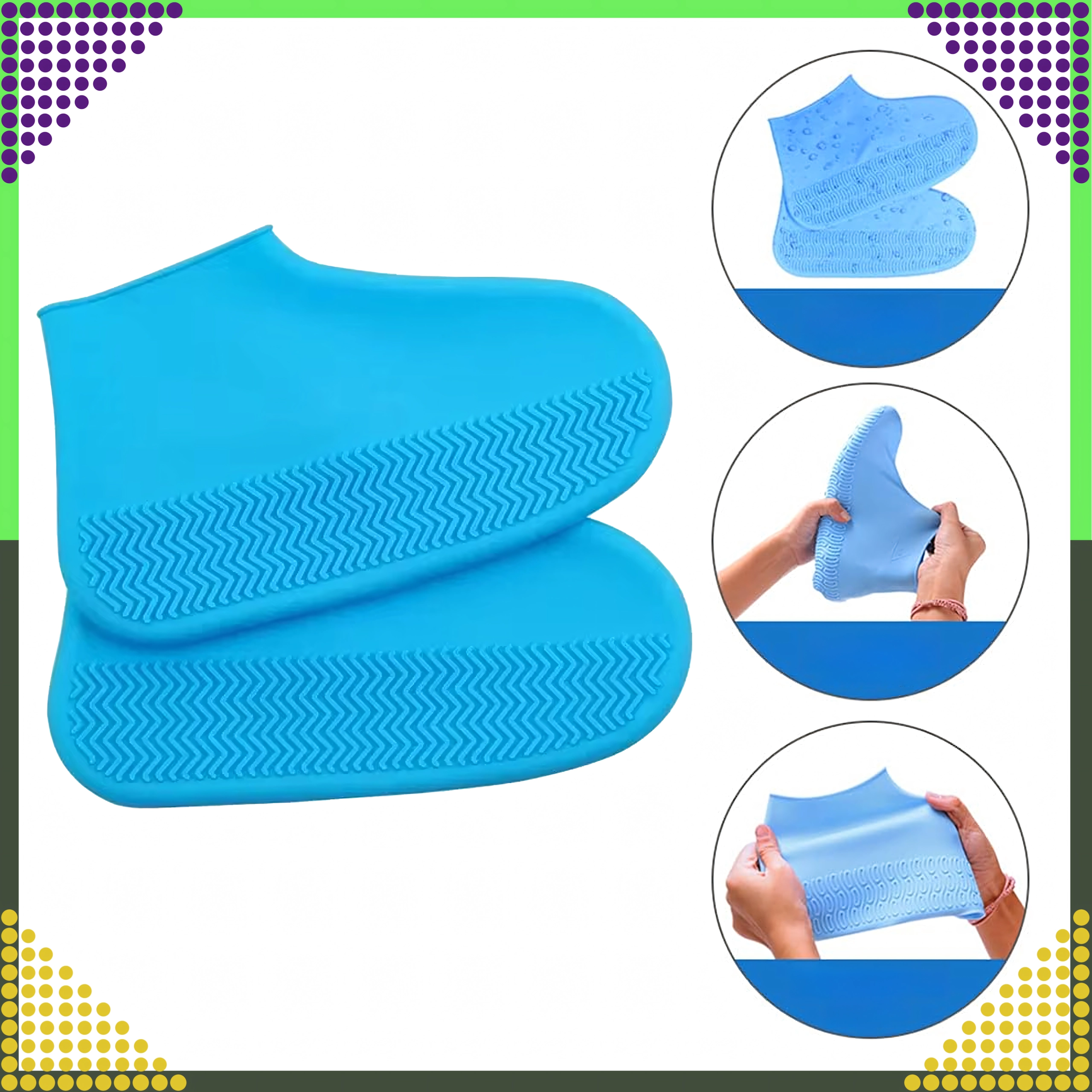 Te vodoodporne prevleke za obutev iz kakovostnega silikona zanesljivo ščitijo čevlje pred vodo, blatom in snegom. Zaradi elastične zasnove se prilagodijo obliki čevlja in ostanejo trdno na mestu. Teksturiran podplat zagotavlja odličen oprijem na mokrih površinah.