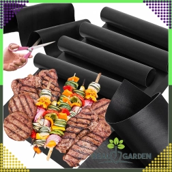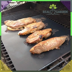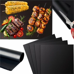 Odkrijte udobnejše in bolj zdravo pečenje in žarjenje. Teflonska podloga nadomešča enkratne pladnje, preprečuje padanje sestavin skozi rešetko in zahvaljujoč nelepljivi površini omogoča pripravo jedi z minimalno ali povsem brez dodane maščobe. Material je varen za stik z živili in ne vsebuje PFOA.