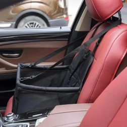 Notranji pas s karabinom se pripne na oprsnico ljubljenčka in omejuje njegovo gibanje med vožnjo. Ojačani robovi in trdno pritrditev na sedež povečujejo stabilnost.