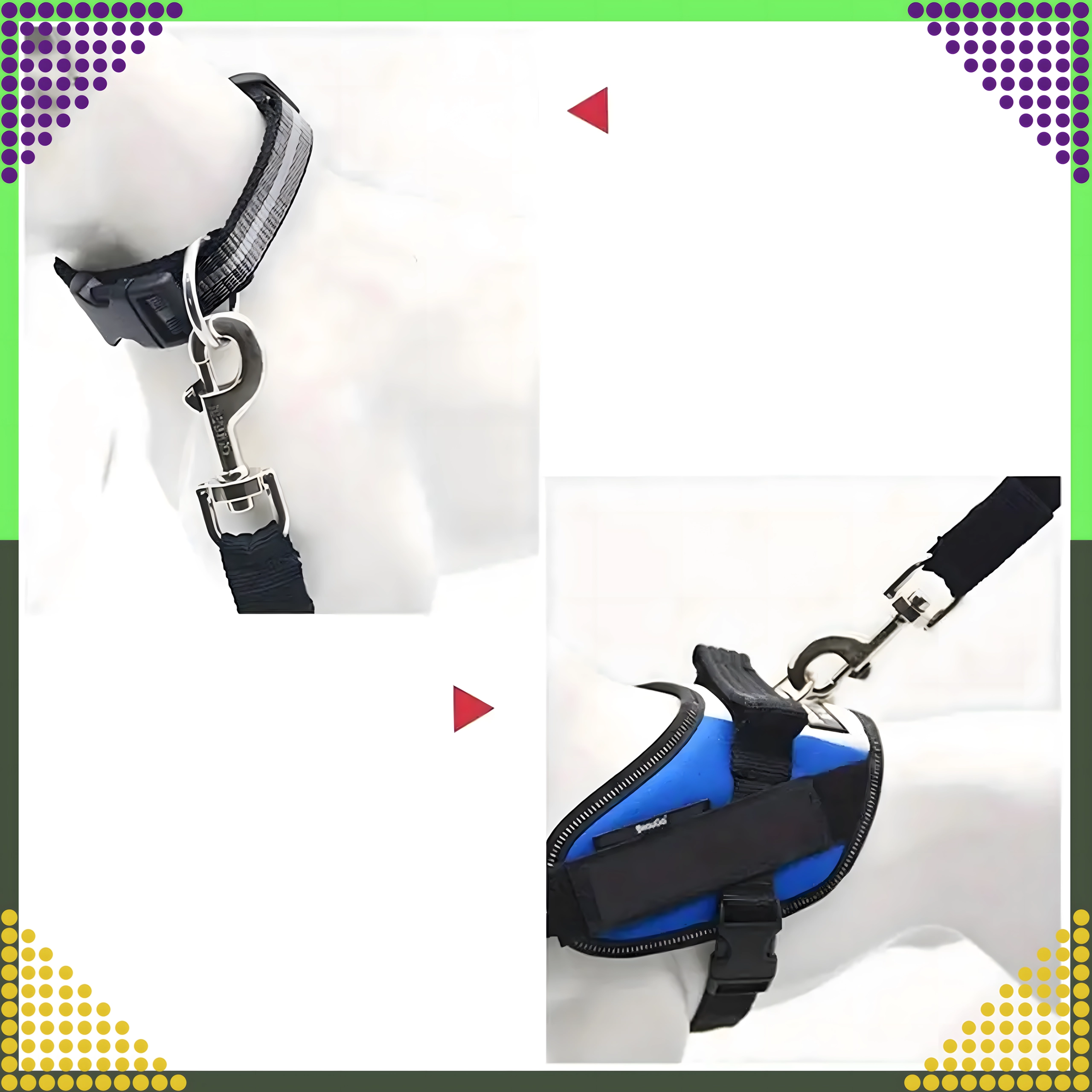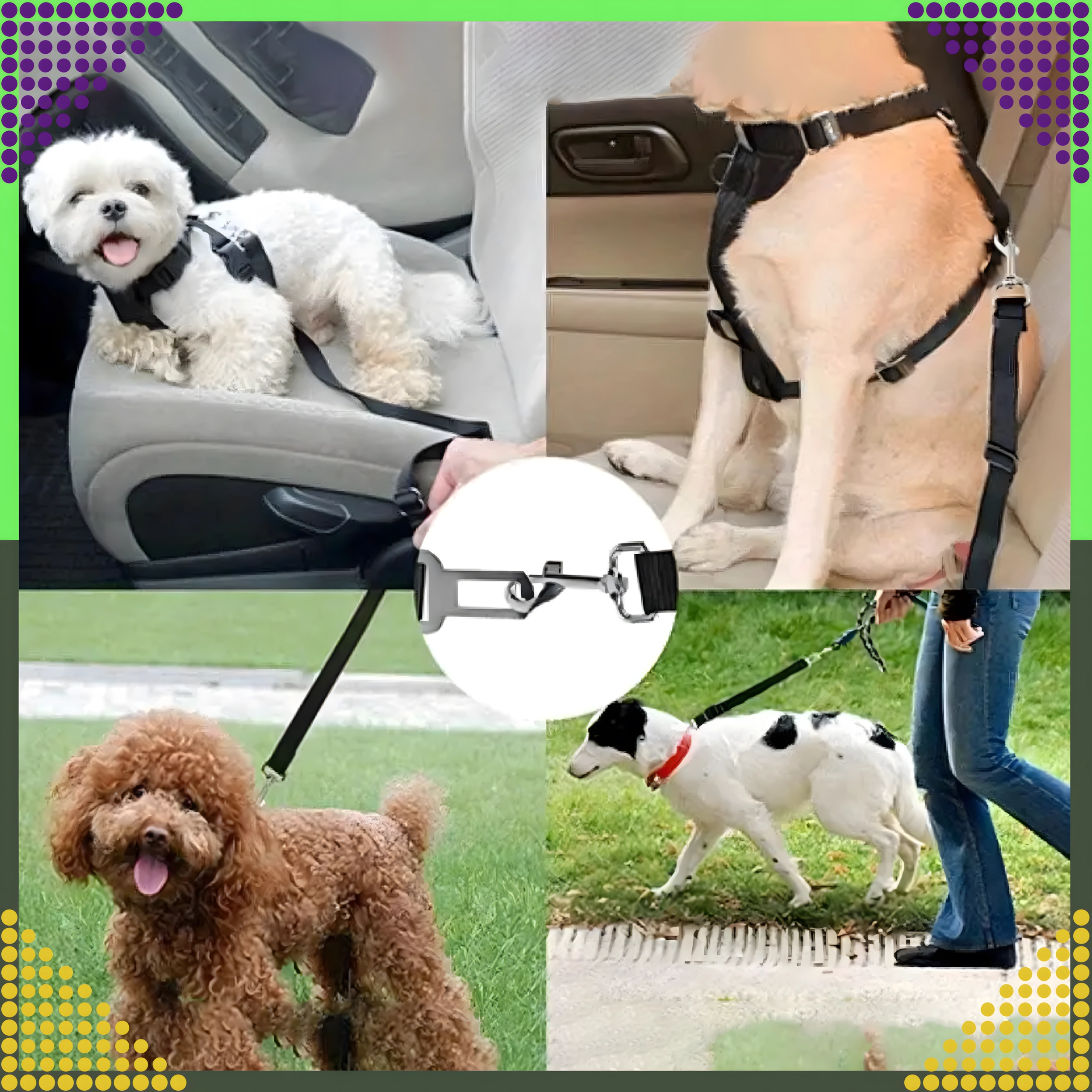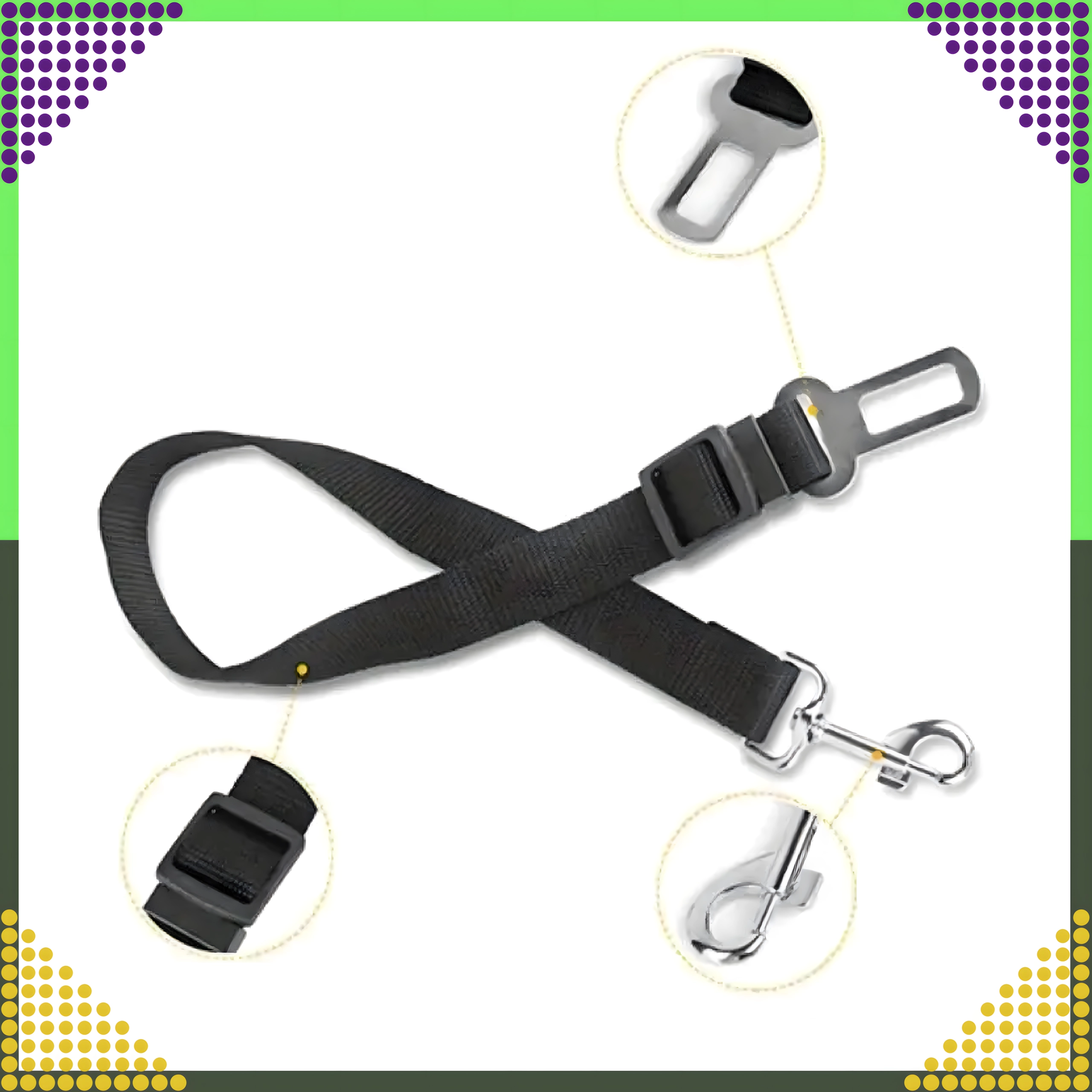 Praktičen pas za zavarovanje psa ali mačke med vožnjo z avtomobilom. Preprosto ga vstavite v standardno režo varnostnega pasu, drugi konec pa z vrtljivim karabinom pripnete na oprtnico (priporočljivo namesto ovratnice). Nastavljiva dolžina 45–72 cm omogoča, da žival sedi ali leži, hkrati pa preprečuje nevarno premikanje po vozilu.