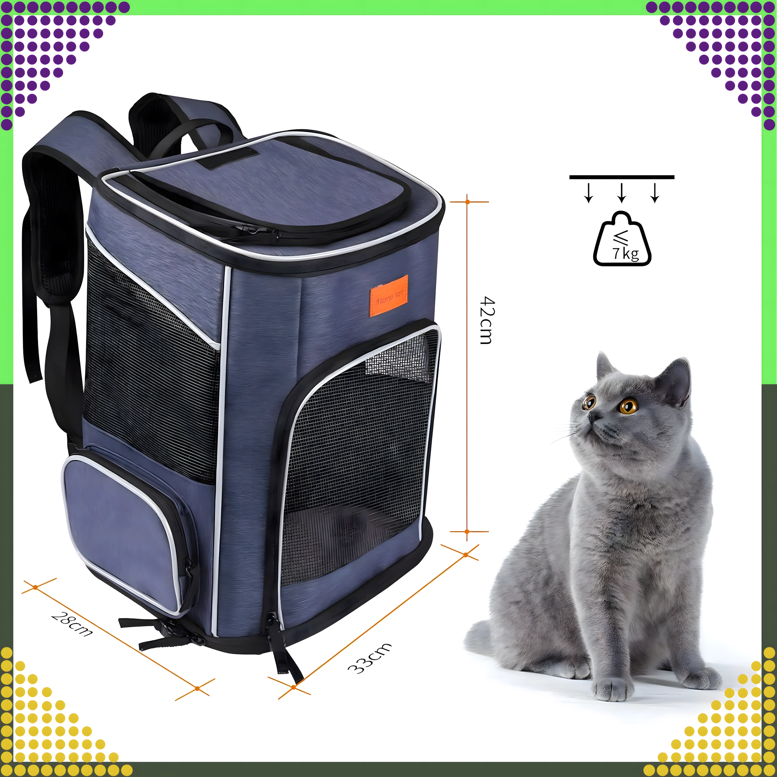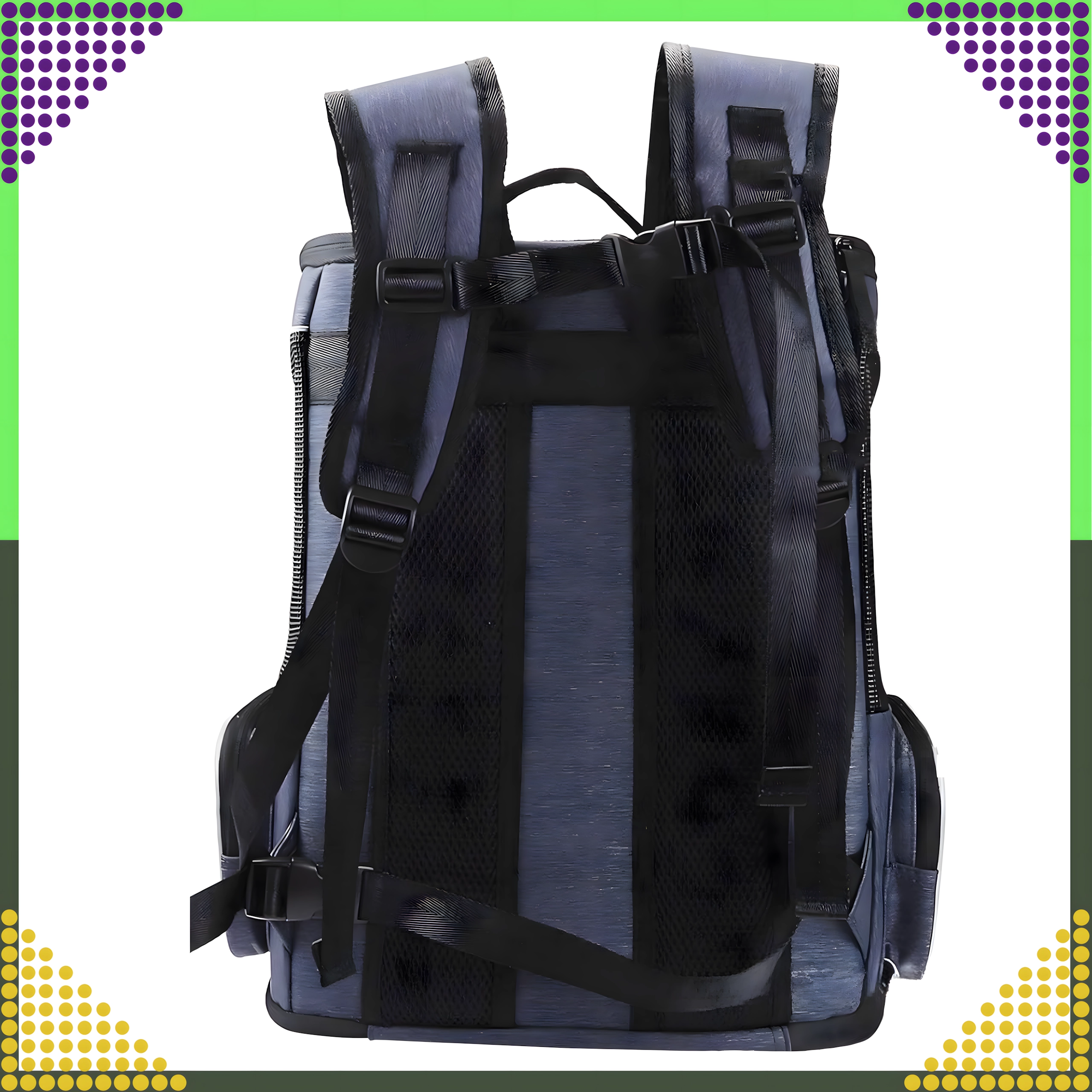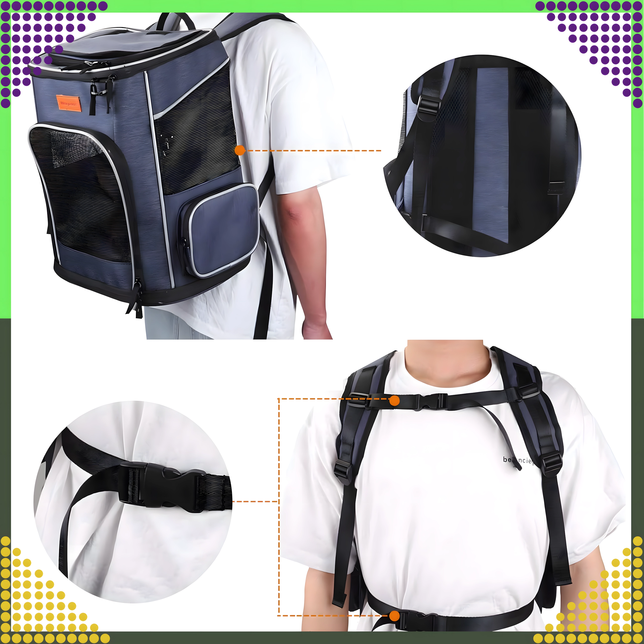 Moderen nahrbtnik za hišne ljubljenčke združuje vzdržljivo konstrukcijo z udobjem za žival in lastnika. Zahvaljujoč mrežastim oknom ima ljubljenček odličen pregled in dostop do svežega zraka, medtem ko vam nastavljive naramnice in prsni pas zagotavljajo udobno nošenje brez pritiska na hrbet.