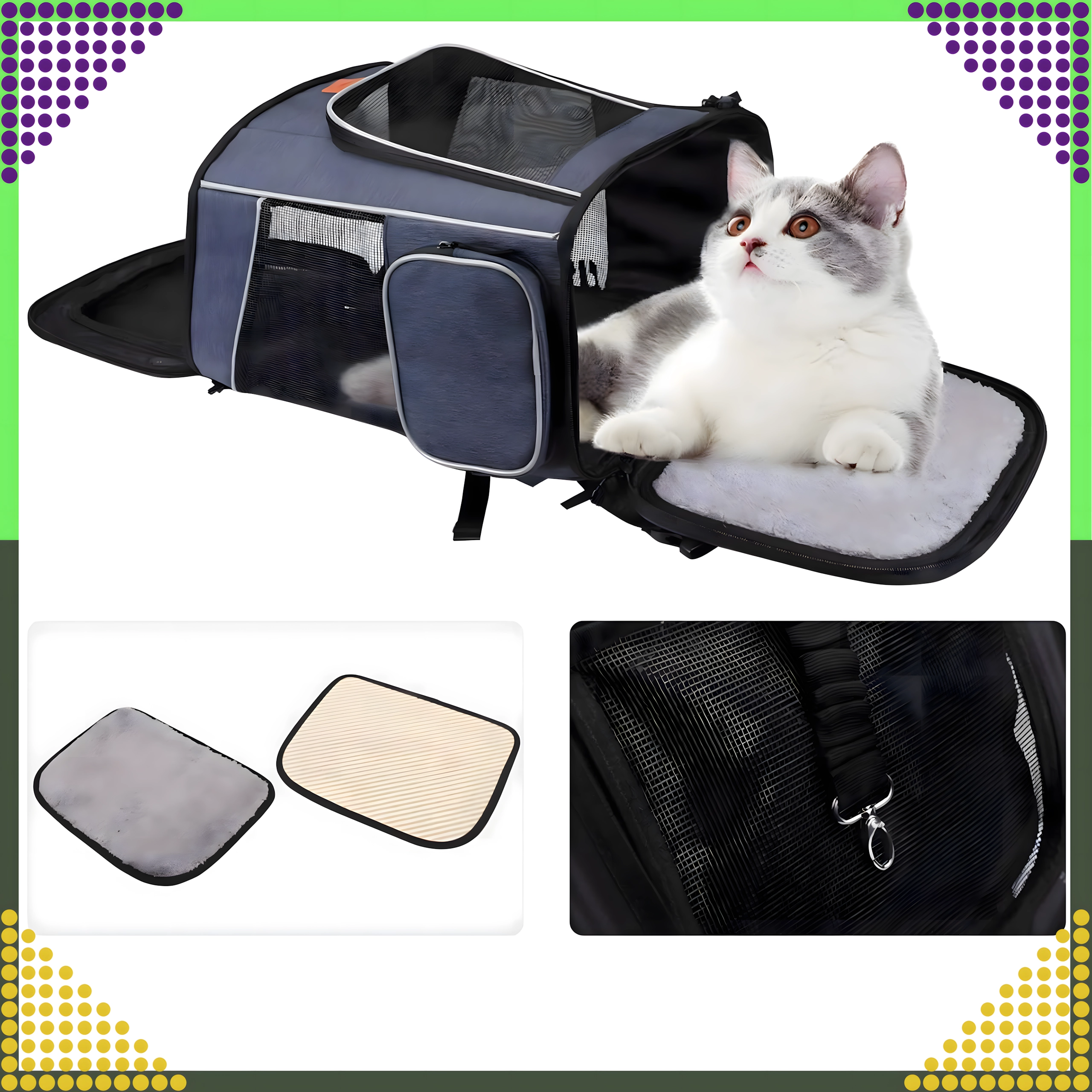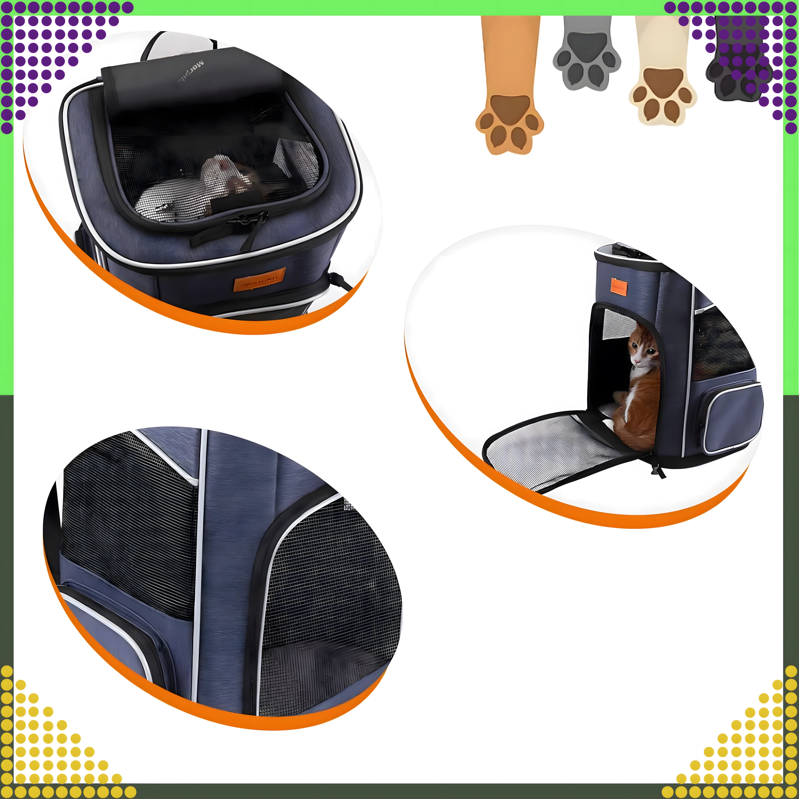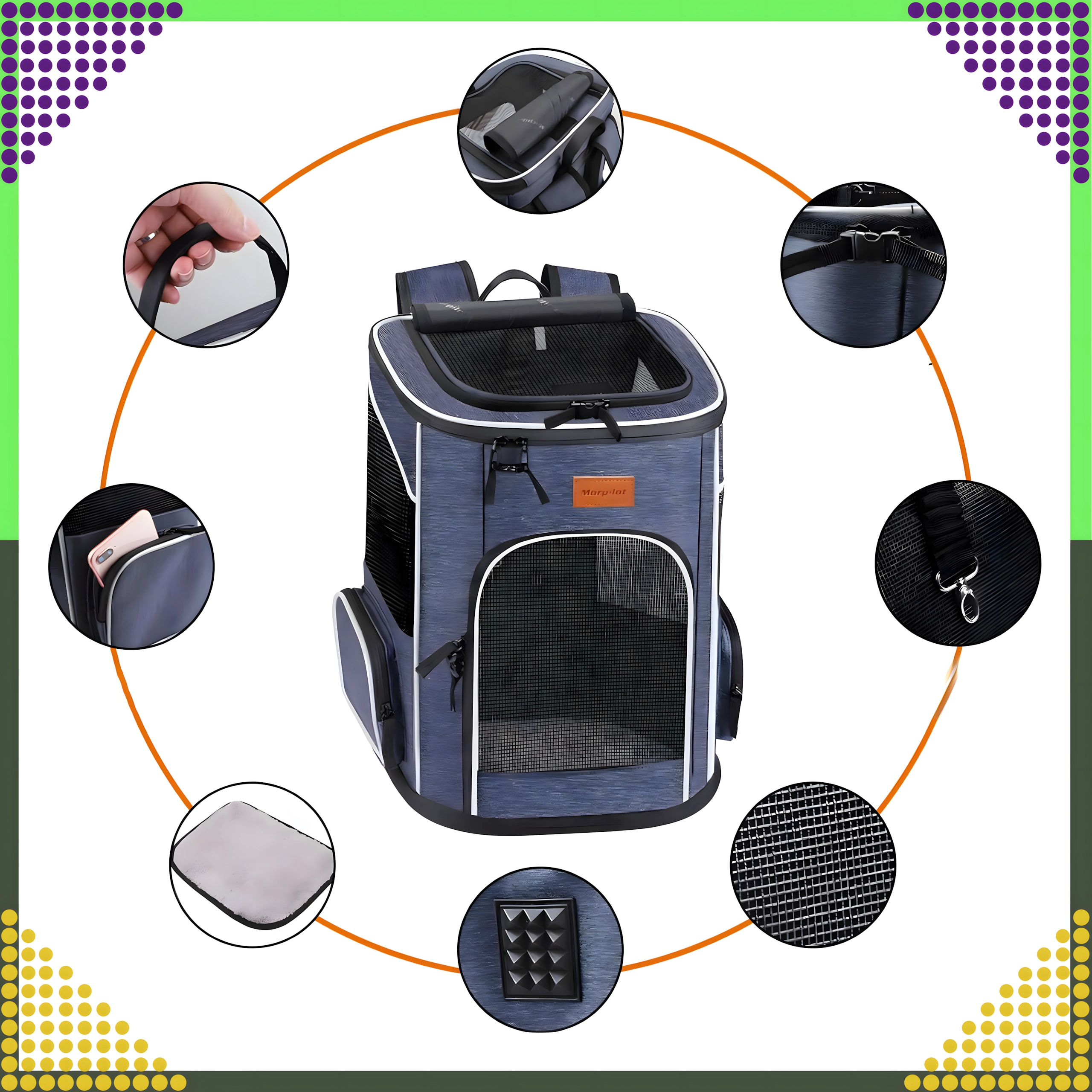 Moderen nahrbtnik za hišne ljubljenčke združuje vzdržljivo konstrukcijo z udobjem za žival in lastnika. Zahvaljujoč mrežastim oknom ima ljubljenček odličen pregled in dostop do svežega zraka, medtem ko vam nastavljive naramnice in prsni pas zagotavljajo udobno nošenje brez pritiska na hrbet.
