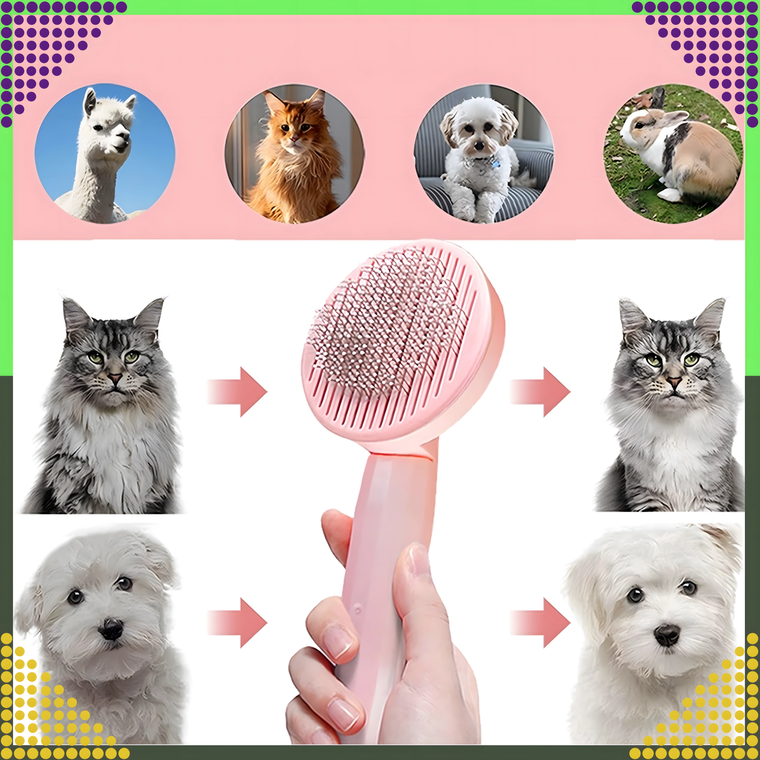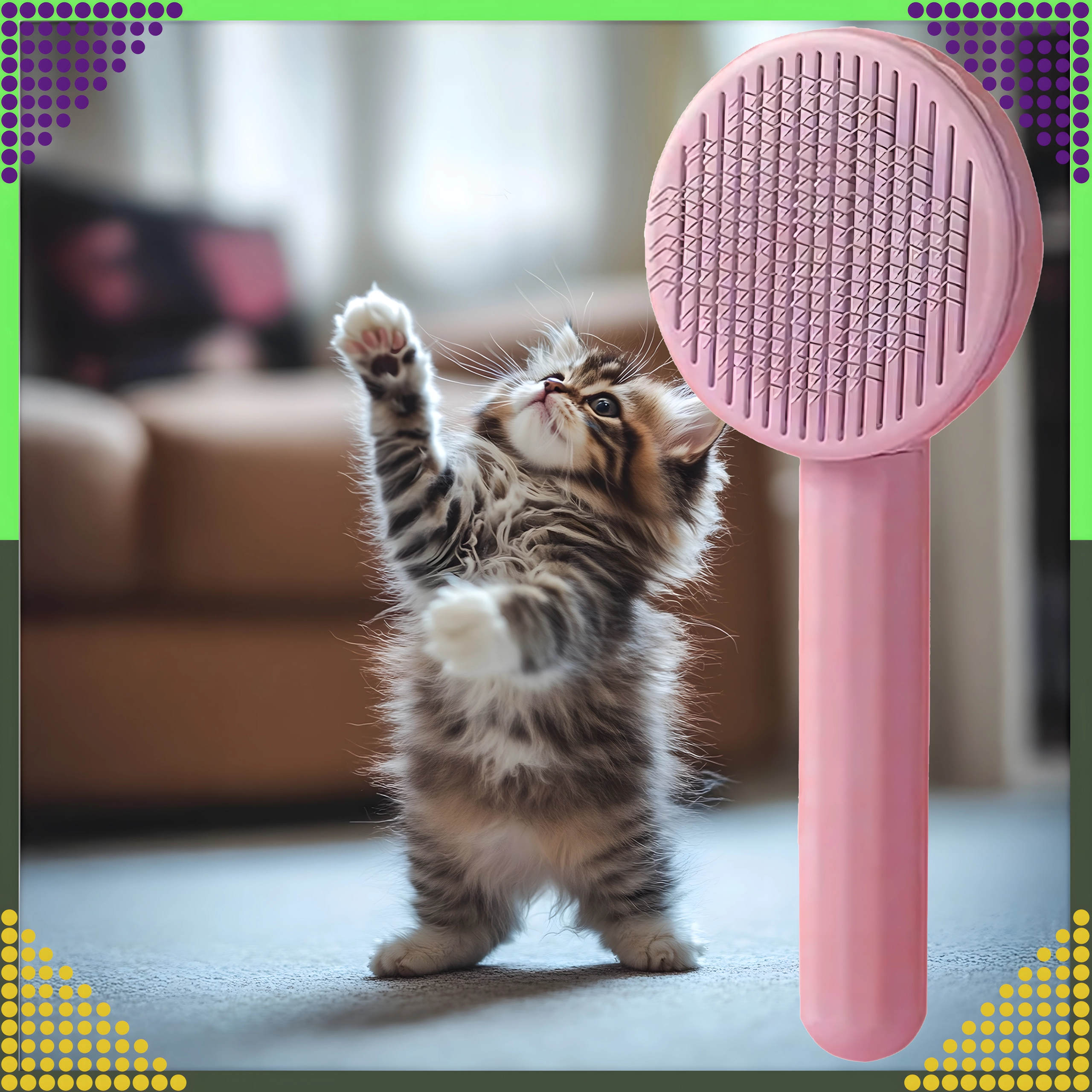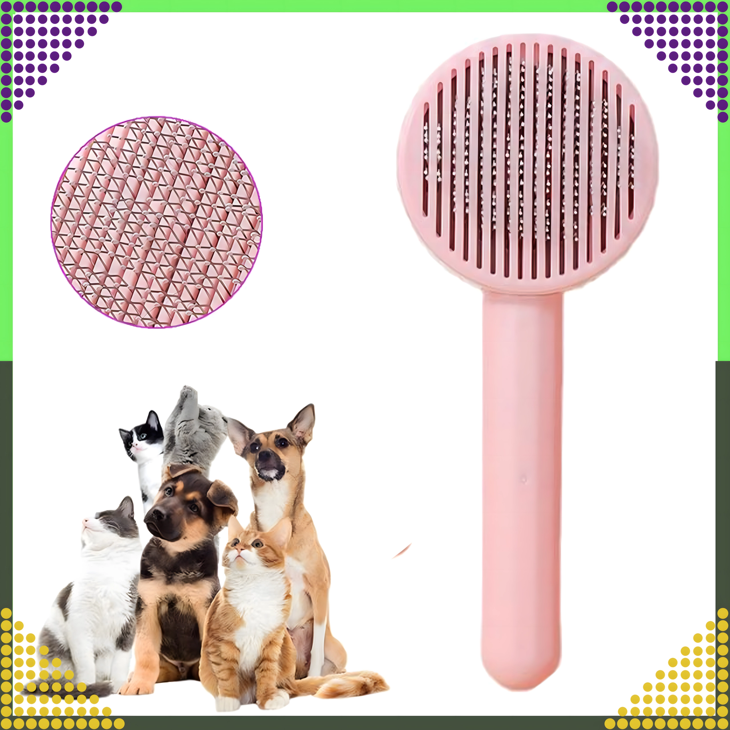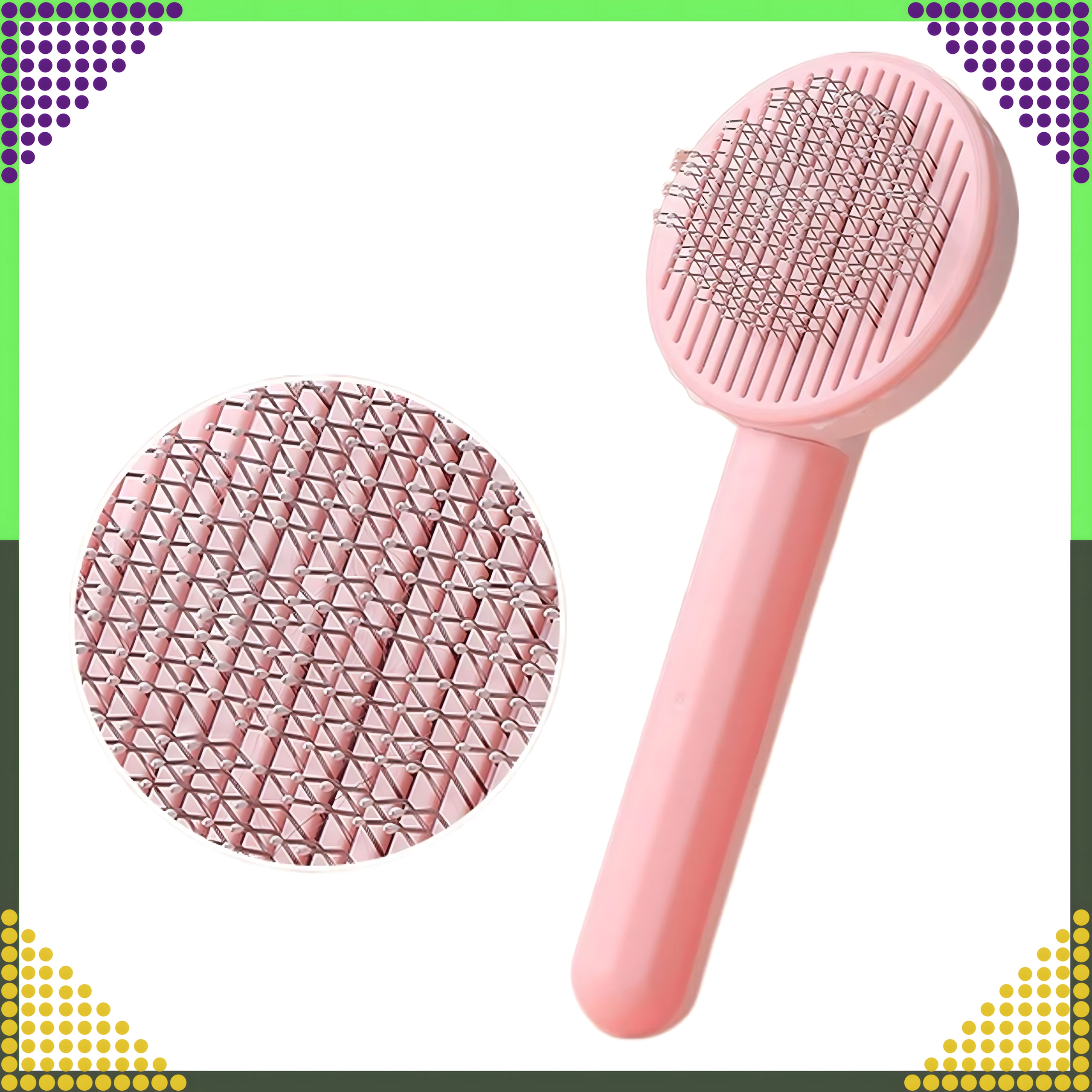Iščete učinkovito, a hkrati nežno krtačo za vsakodnevno nego dlake vašega ljubljenčka? Ta rožnata samoočistilna krtača združuje nežne kovinske ščetine z zaobljenimi konicami in praktičen gumb, ki z enim pritiskom sprosti ujete dlake. Česanje je tako hitro, udobno in higienično.