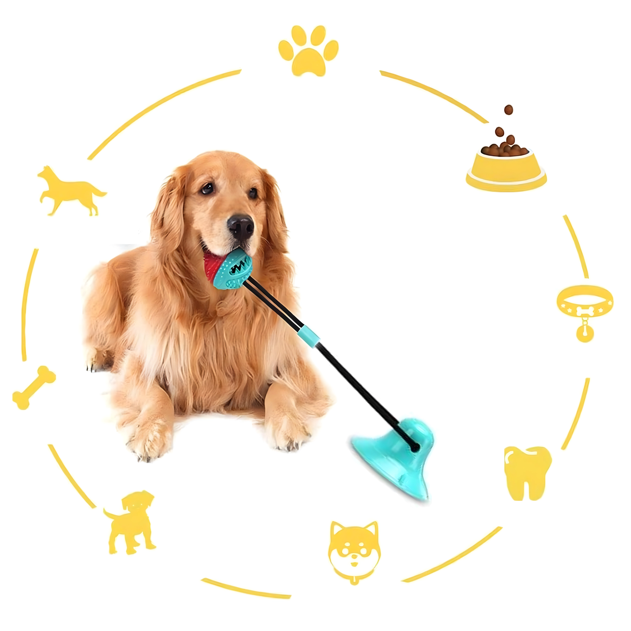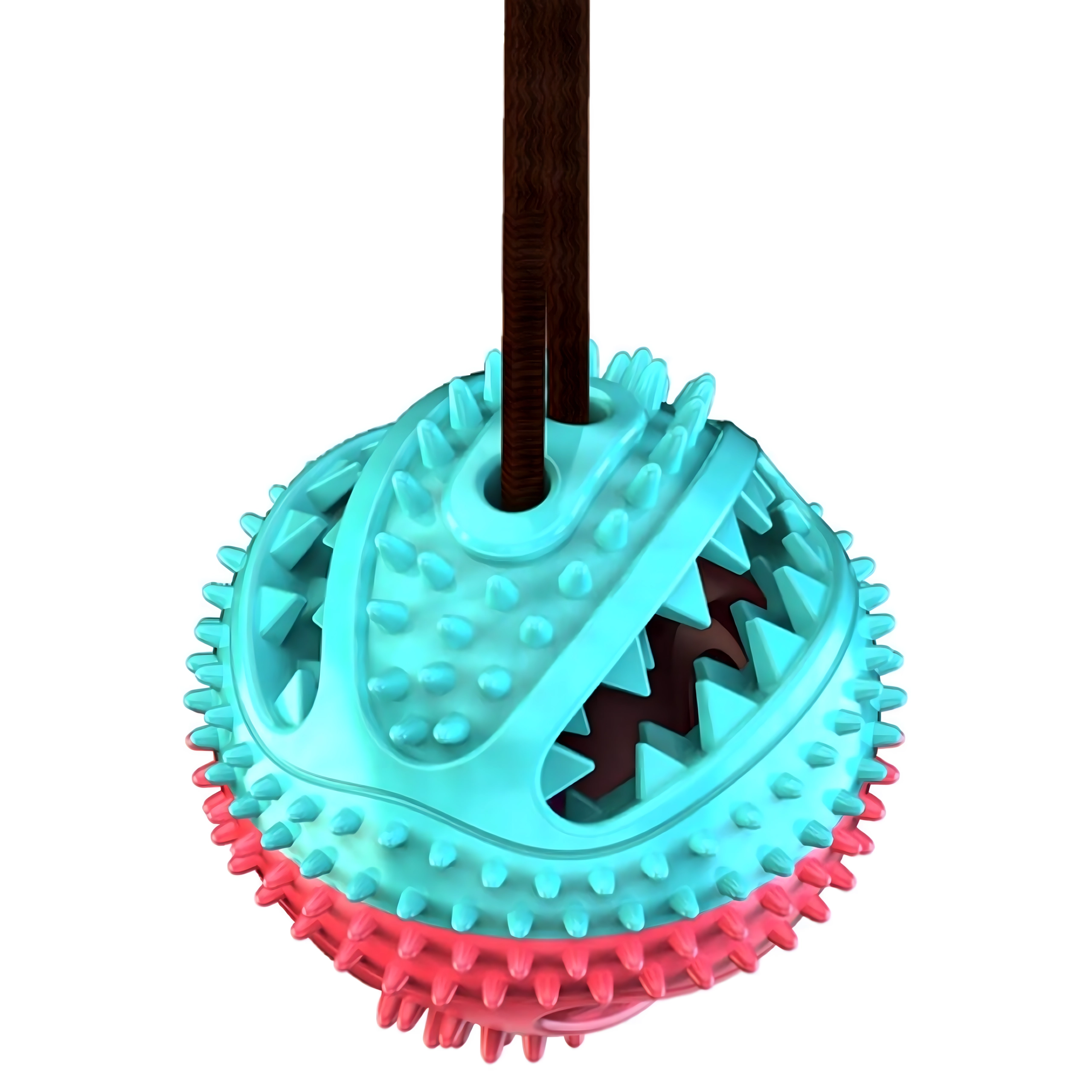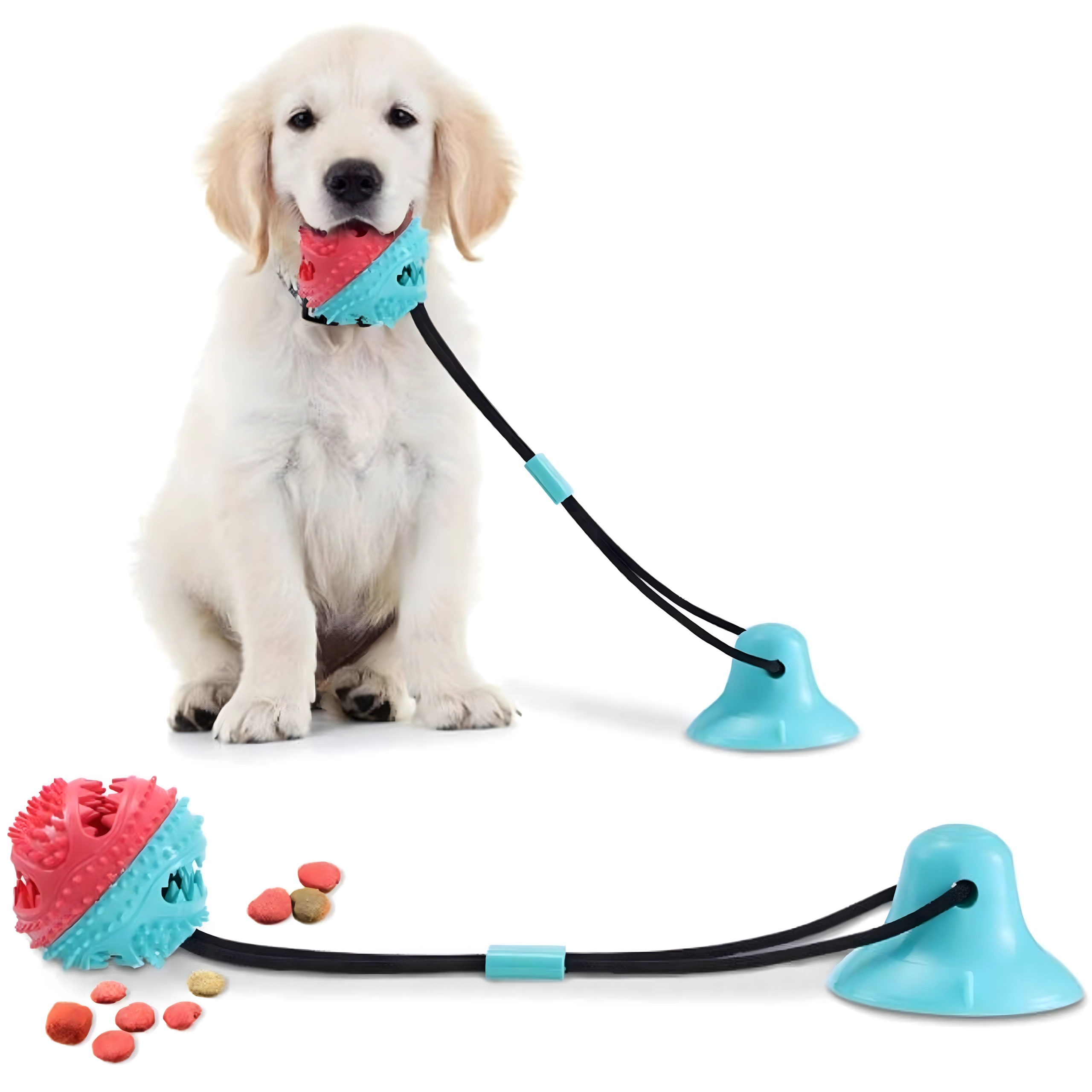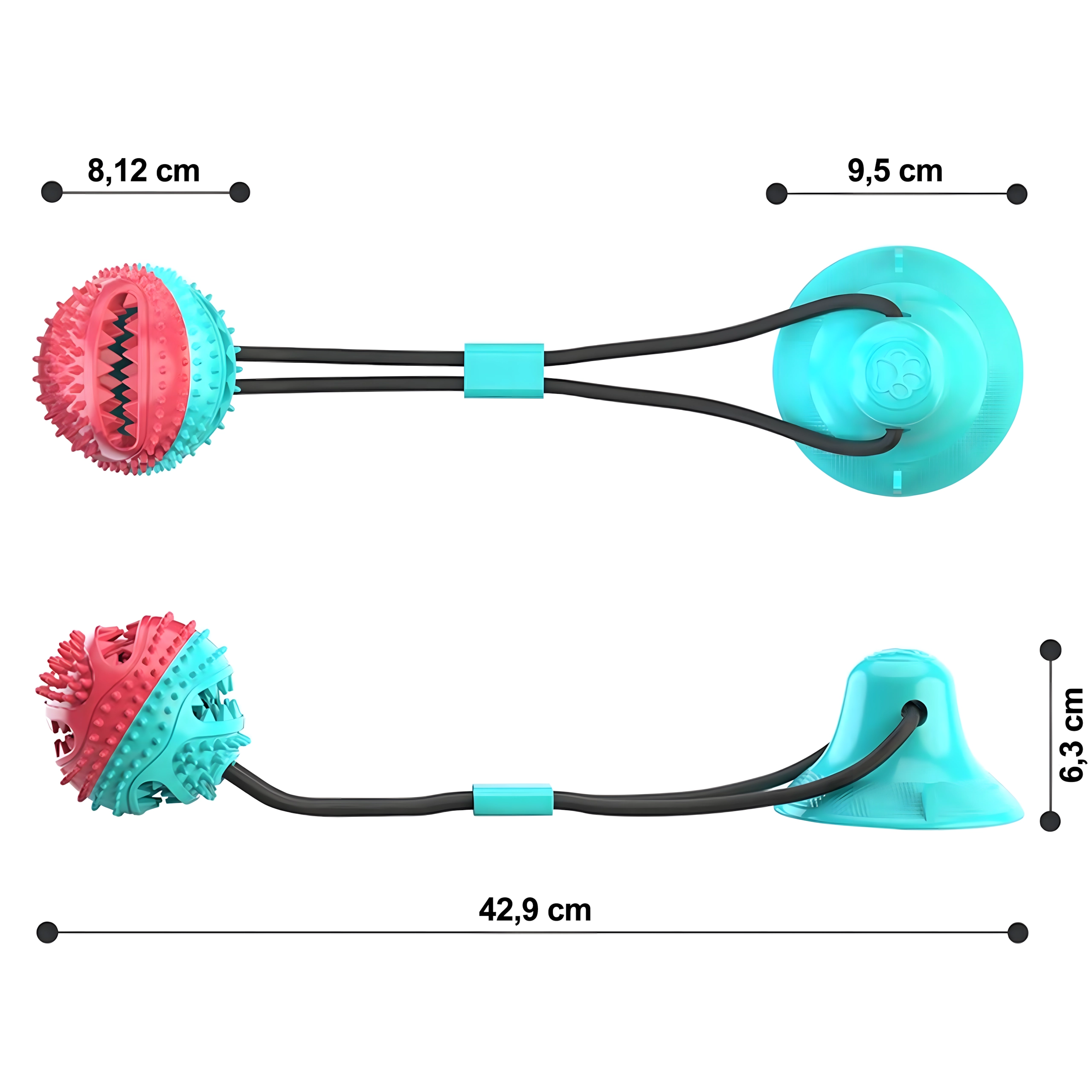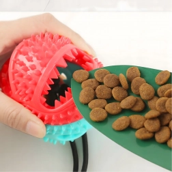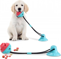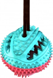 Ta interaktivna igrača s priseskom združuje žogico za priboljške z vrvjo za vlečenje in žvečenje. Prisesek zlahka pritrdite na gladko površino in pes se lahko varno igra tudi brez vaše pomoči. Konicasta struktura žogice pri vsakem ugrizu pomaga zmanjševati zobni plak in skrbeti za dlesni. Odprtina za priboljške spodbuja počasnejši vnos hrane in podaljšuje zabavo.