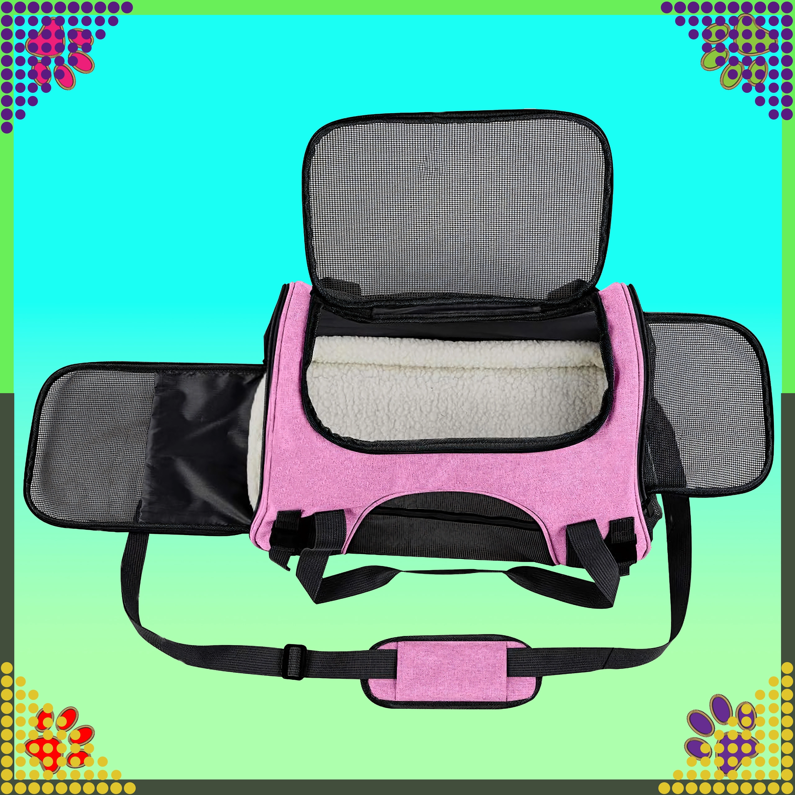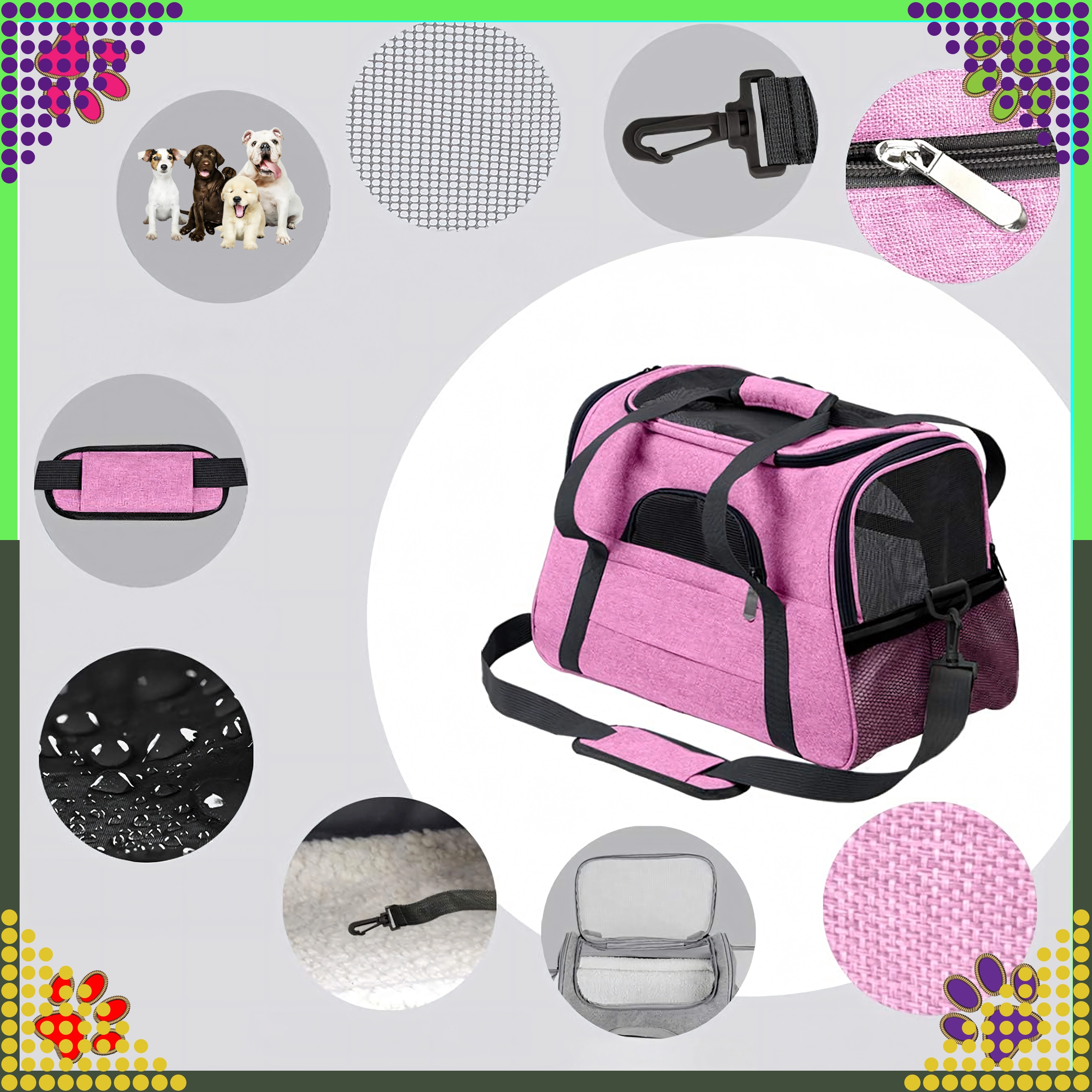 Udoben in varen transporter za psa, mačko ali majhne glodalce za vsakodnevne poti z avtom ali javnim prevozom. Lahka in trpežna torba iz poliestra ne vpija vonjav, je odporna proti madežem in vremenskim vplivom ter ponuja dovolj prostora za priboljške in igrače. Idealna izbira za udobno in varno potovanje vašega ljubljenčka.