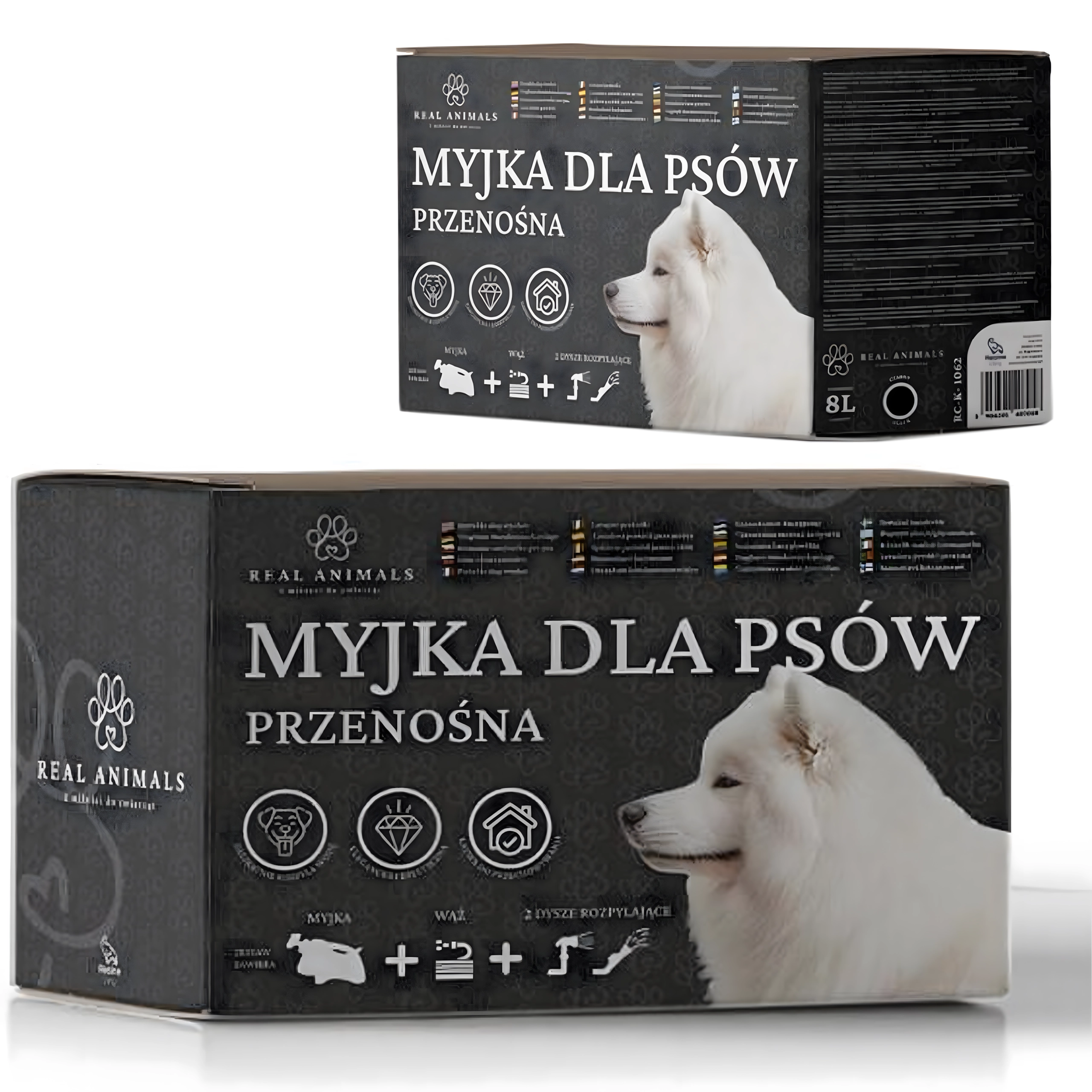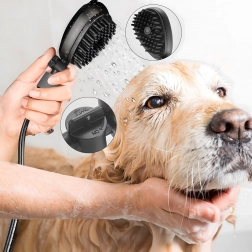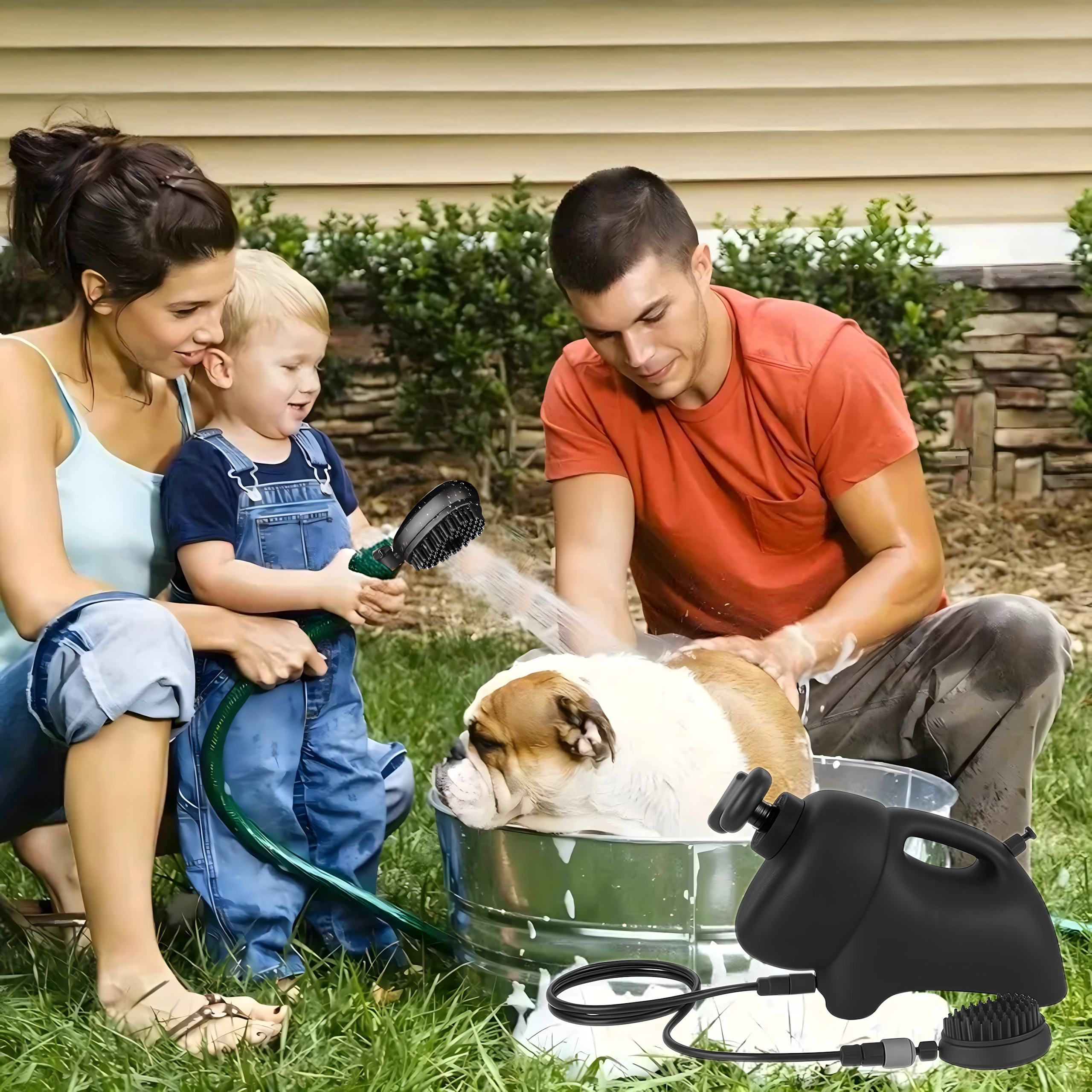 Prenosna pralna naprava za pse in mačke s prostornino 8 l združuje udobno zunanje umivanje z nežno nego dlake. Vgrajena pršna glava z gumijastimi ščetinami kombinira izpiranje in nežno krtačenje, s čimer učinkovito odstranjuje nečistoče in odvečno dlako ter hkrati nudi prijetno masažo.