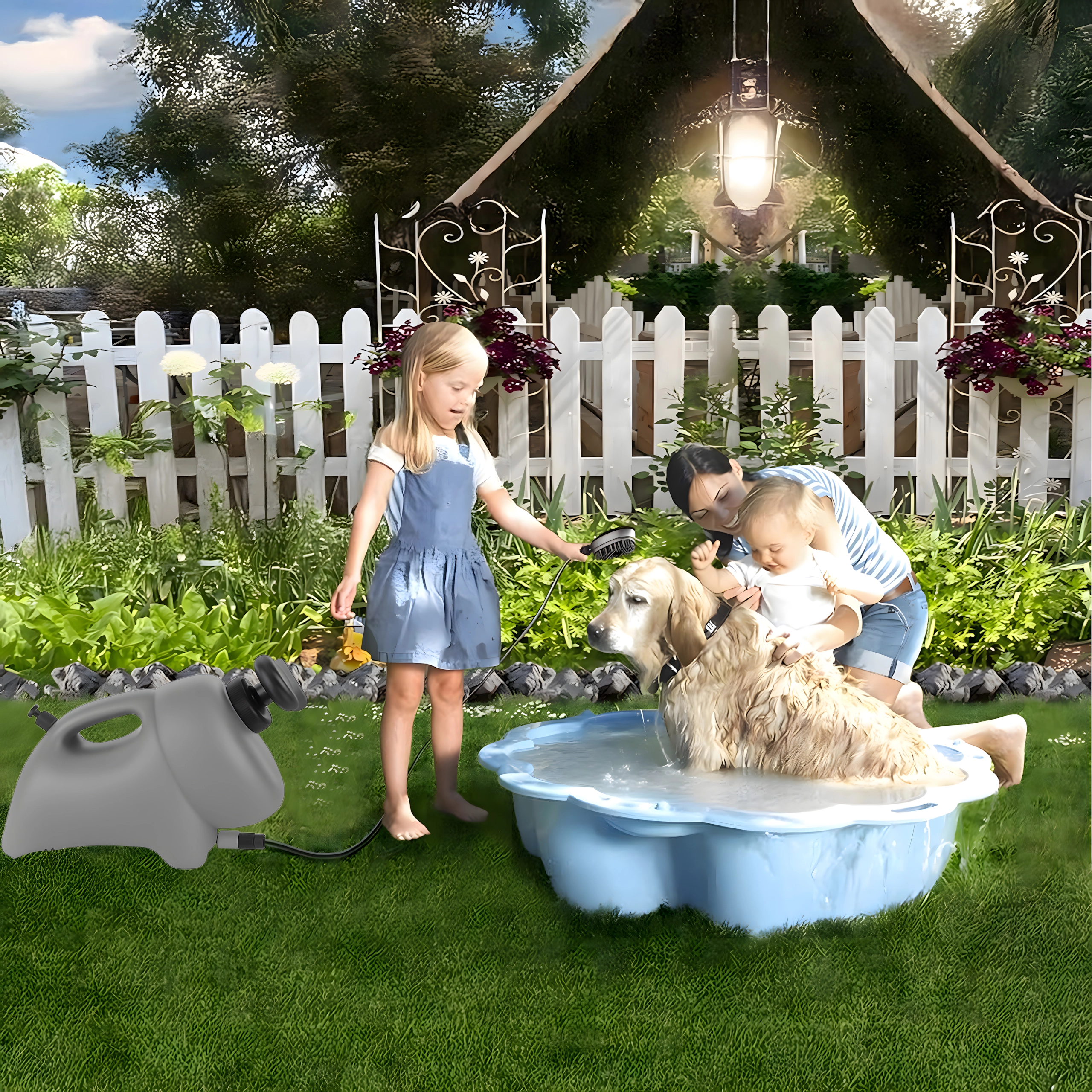 Uživajte v čistoči in udobju kjerkoli – prenosni pralnik s prostornino 8 l je odličen za higieno hišnih ljubljenčkov, pa tudi za hitro izpiranje koles, obutve ali vozičkov. Zahvaljujoč integrirani prhi z mehkimi ščetinami nežno opere in hkrati počeše dlako, s čimer skrajša čas kopanja in prihrani vodo.