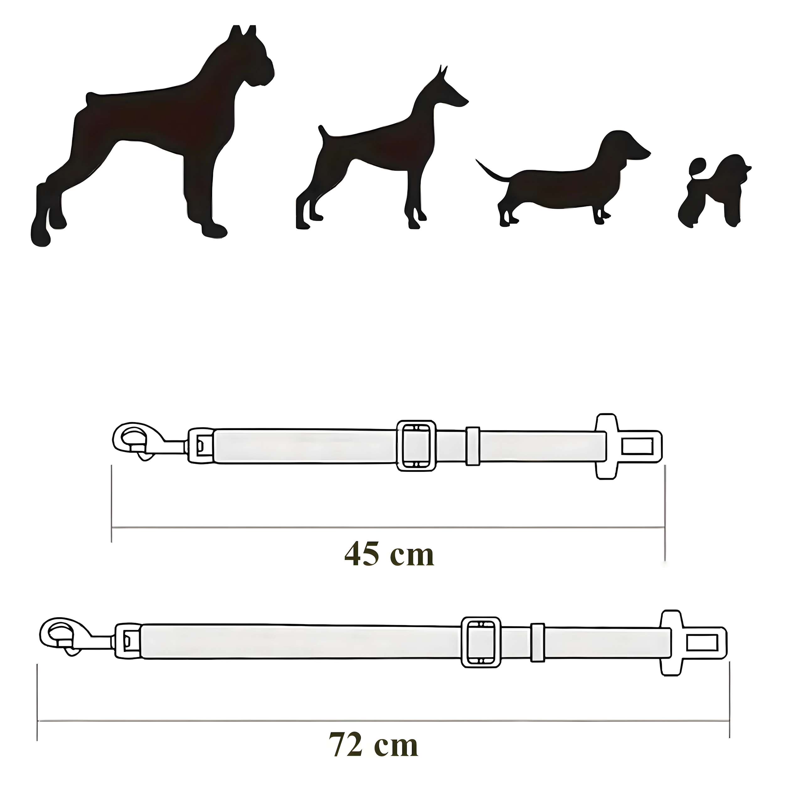 Varnostni pas za psa ali mačko za avto pomaga ohraniti žival varno na zadnjem sedežu in zmanjšuje tveganje nenadnih premikov pri zaviranju. Zahvaljujoč univerzalni kovinski jezičkasti zaponki ga preprosto pripnete v večino avtomobilskih ključavnic, vrtljiva karabinka pa se pritrdi na oprsnico vašega ljubljenčka.