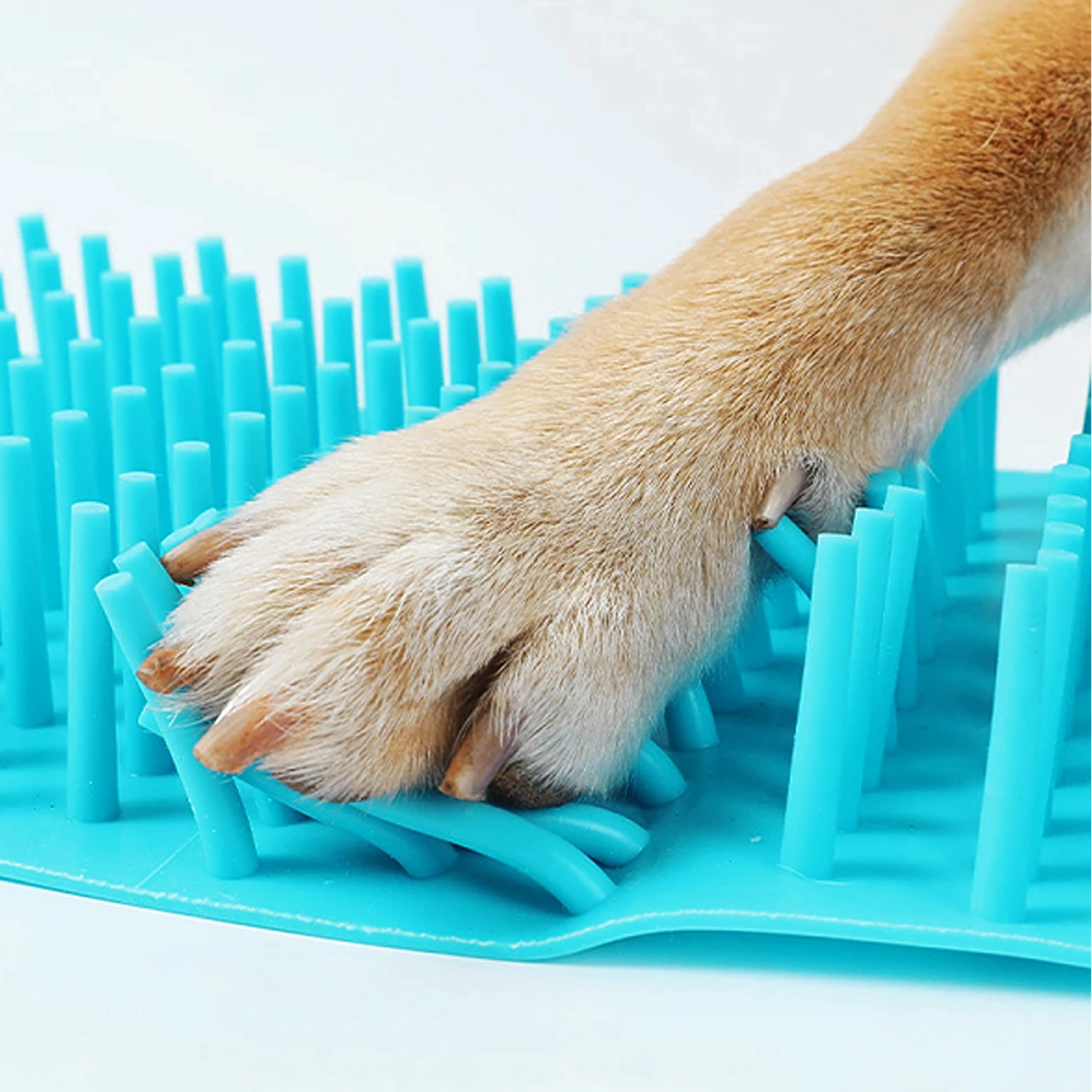 Goste, mehke silikonske ščetine nežno odstranijo blato in pesek z blazinic in med prsti brez draženja.