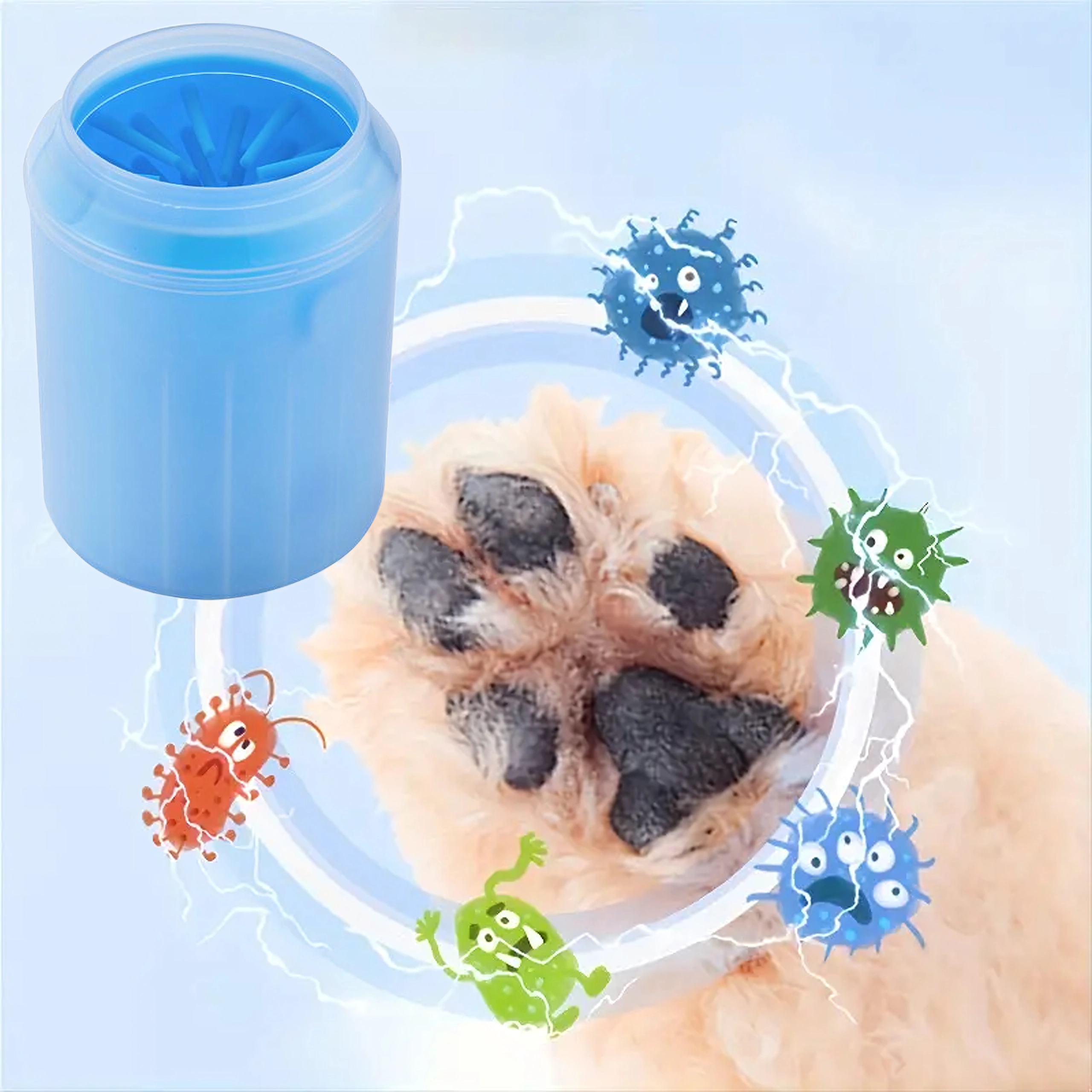 Praktični silikonski čistilec tačk za pse in mačke nežno in učinkovito odstrani blato, pesek in nečistoče, da vaš dom ostane čist. Zahvaljujoč mehkim antibakterijskim izboklinam čisti tačke nežno in brez stresa, je lahek, prenosljiv in preprost za vzdrževanje.