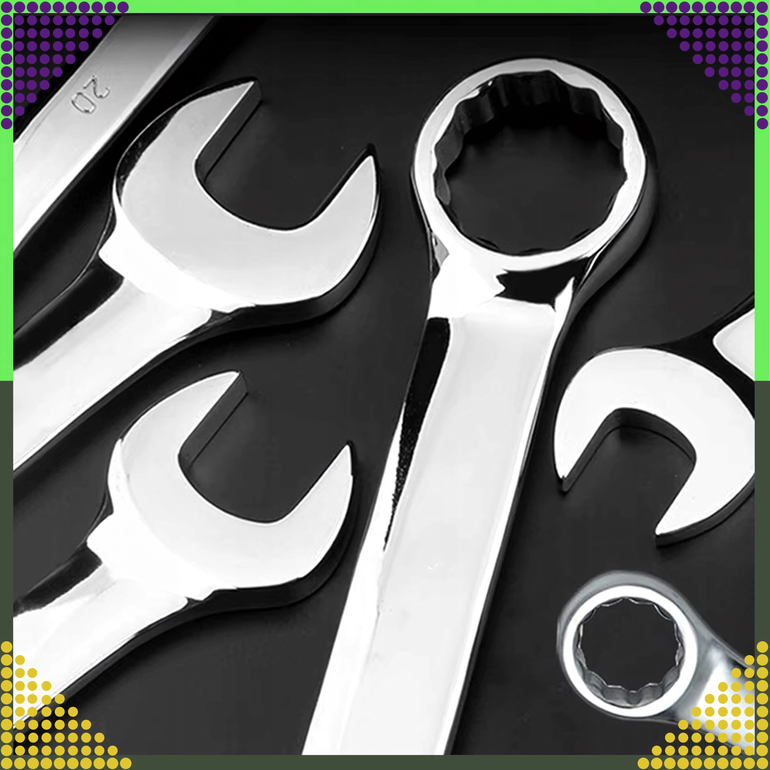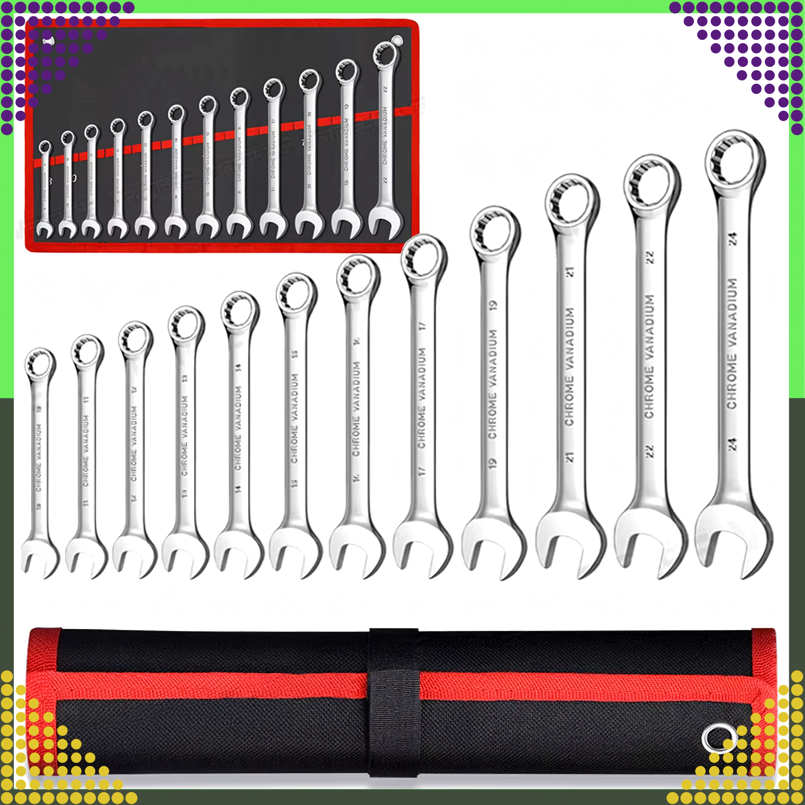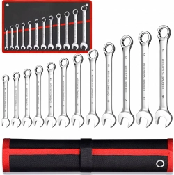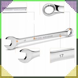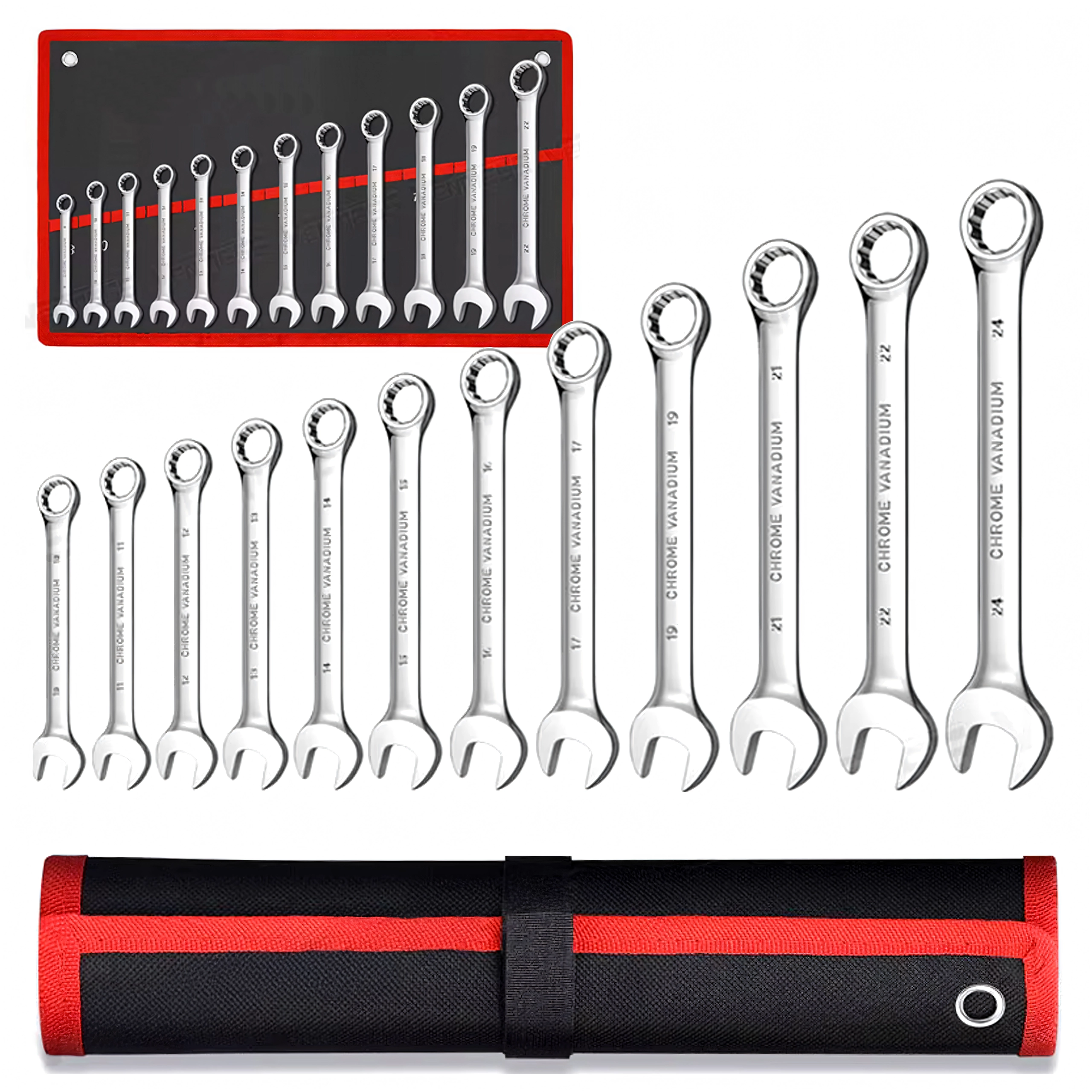 Ta profesionalni set združuje odprti in obročni konec v enem orodju, zato zlahka zategujete in popuščate matice ter vijake v različnih situacijah. Zahvaljujoč razponu velikosti 8–24 mm pokrije večino običajnih opravil v avtoservisu, delavnici in pri montažah doma.