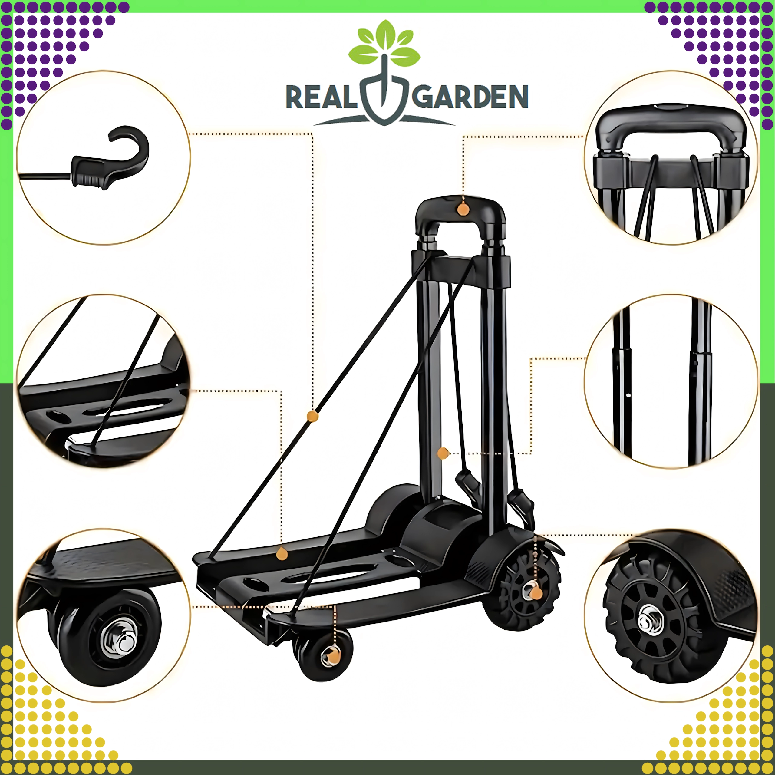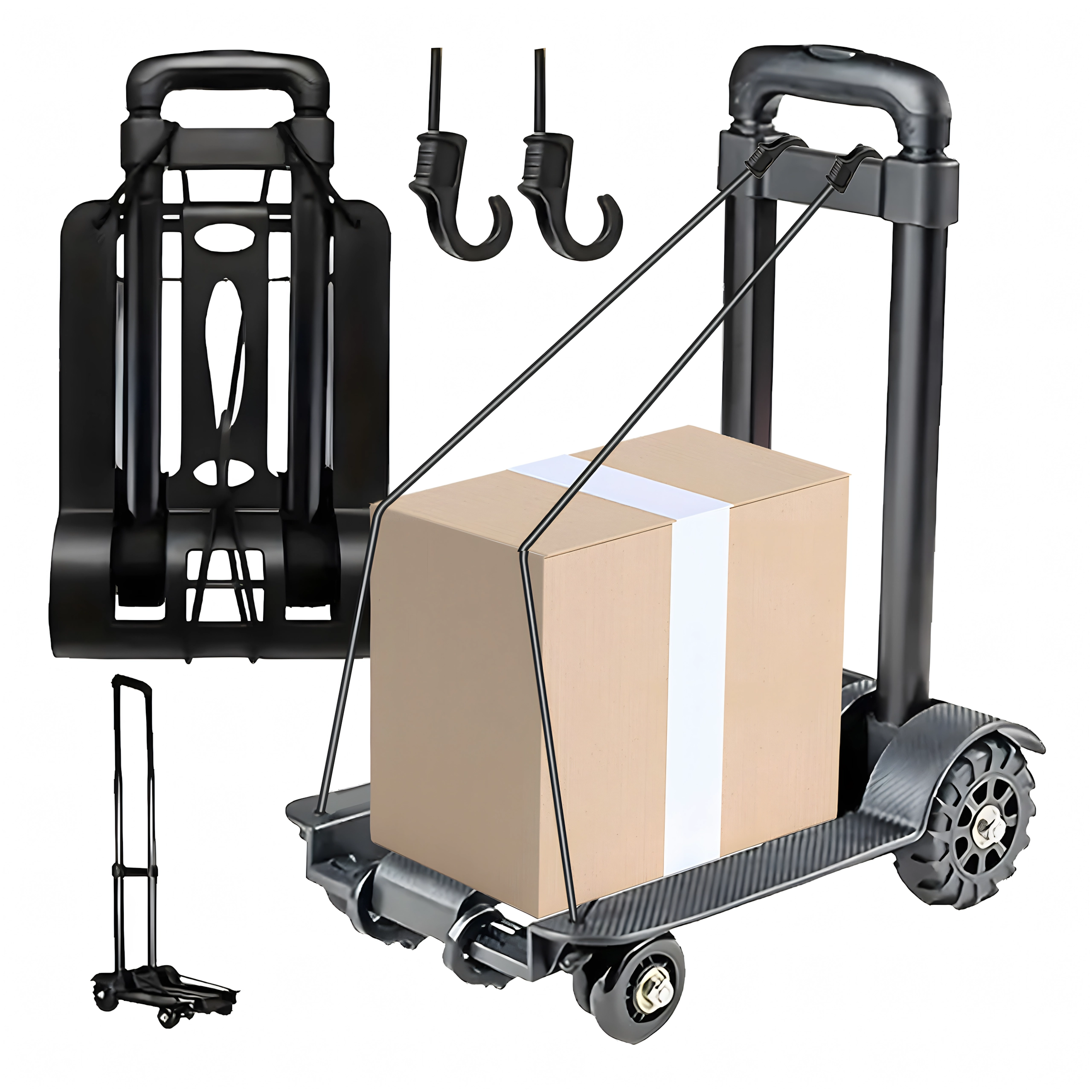 Poenostavite si vsakodnevno ravnanje s tovorom. Ta zložljiv transportni voziček združuje nizko težo, trdno konstrukcijo iz aluminija in plastike ter teleskopski ročaj, ki se prilagodi vaši višini. Zaradi kompaktnih mer ga po uporabi zlahka pospravite v omaro, avto ali na polico.