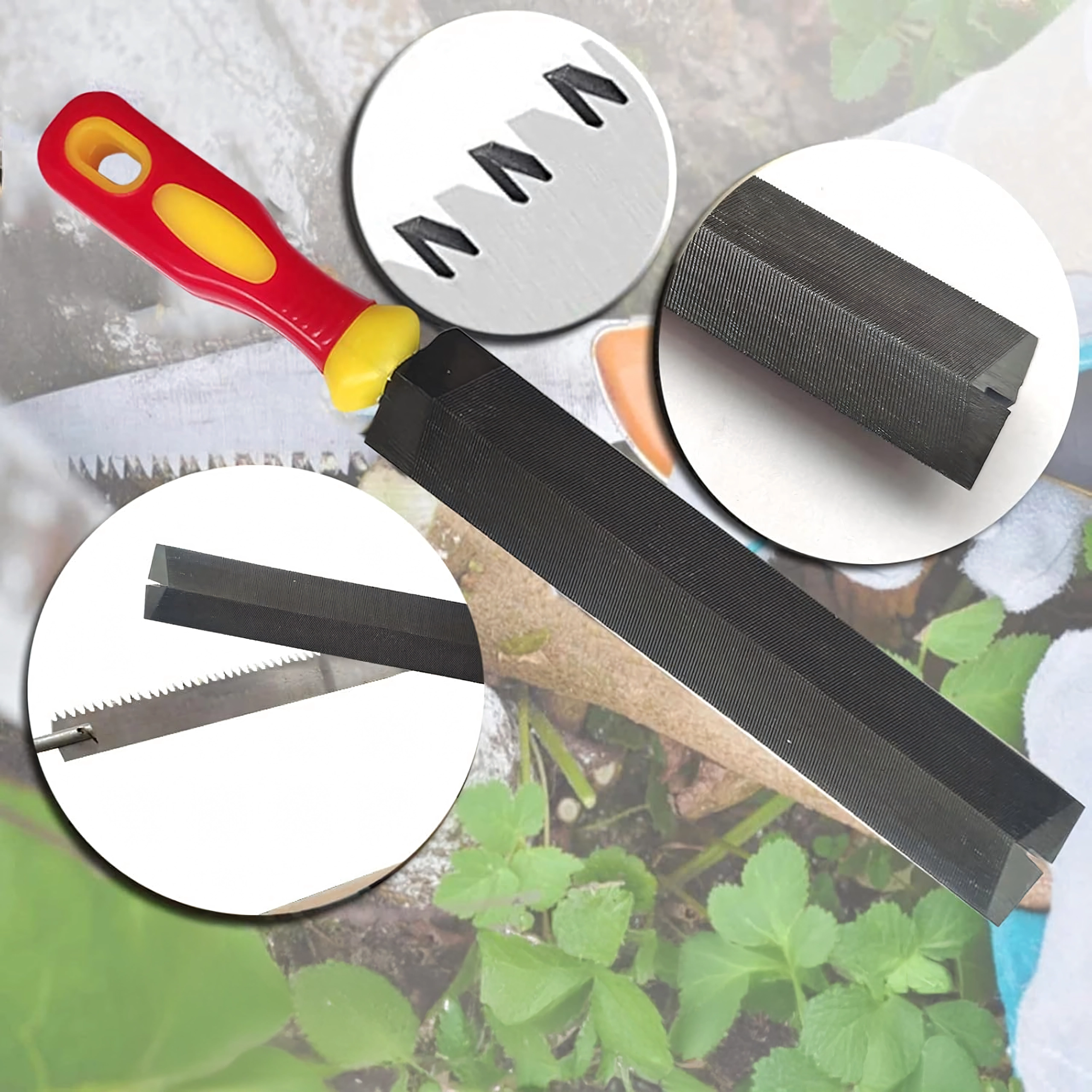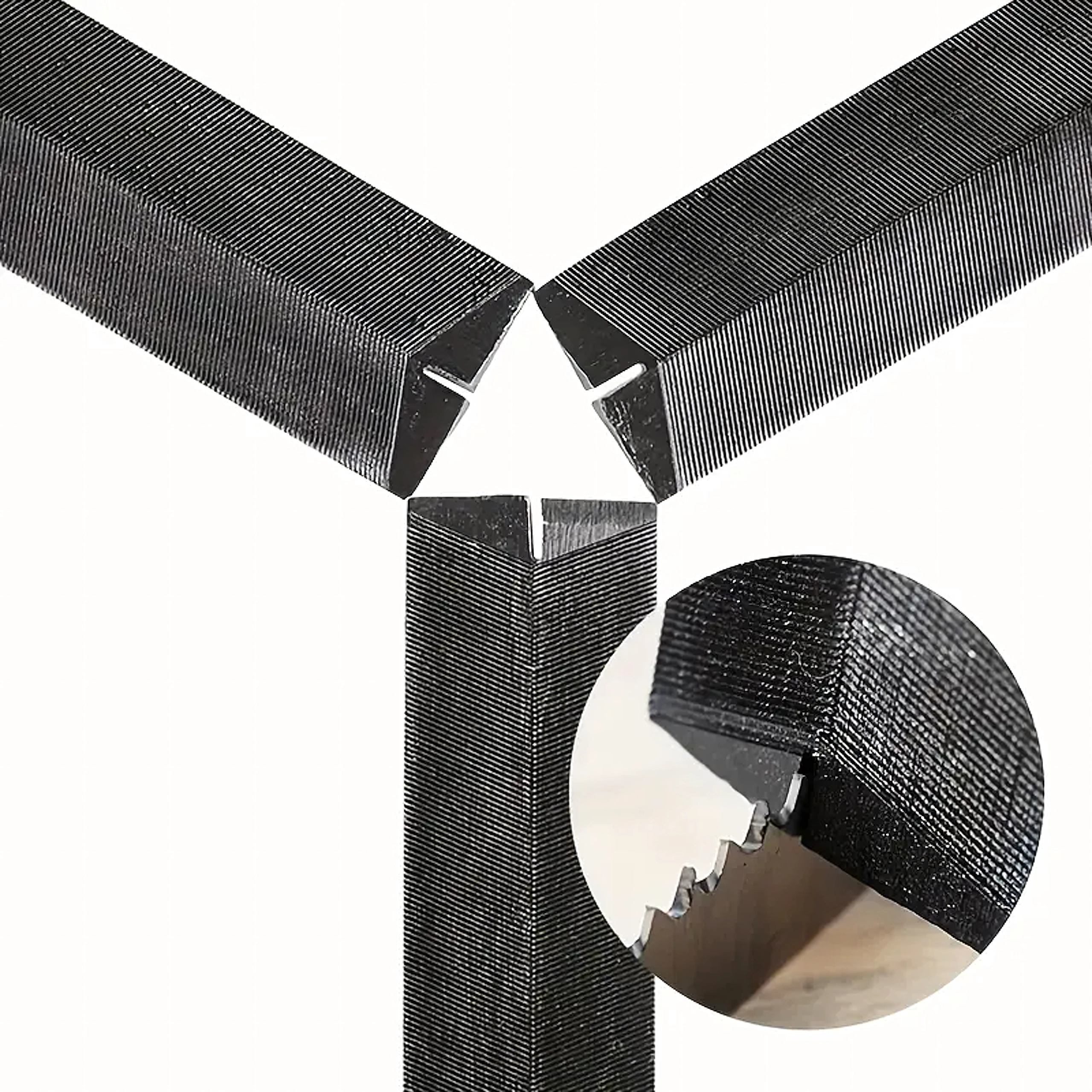 Z kaljenim jeklom T12 v jedru pila nudi odlično stabilnost, odpornost proti obrabi in dolgo življenjsko dobo tudi pri redni uporabi. Trikotni profil zlahka doseže kote ter zobe pil in zobnikov.