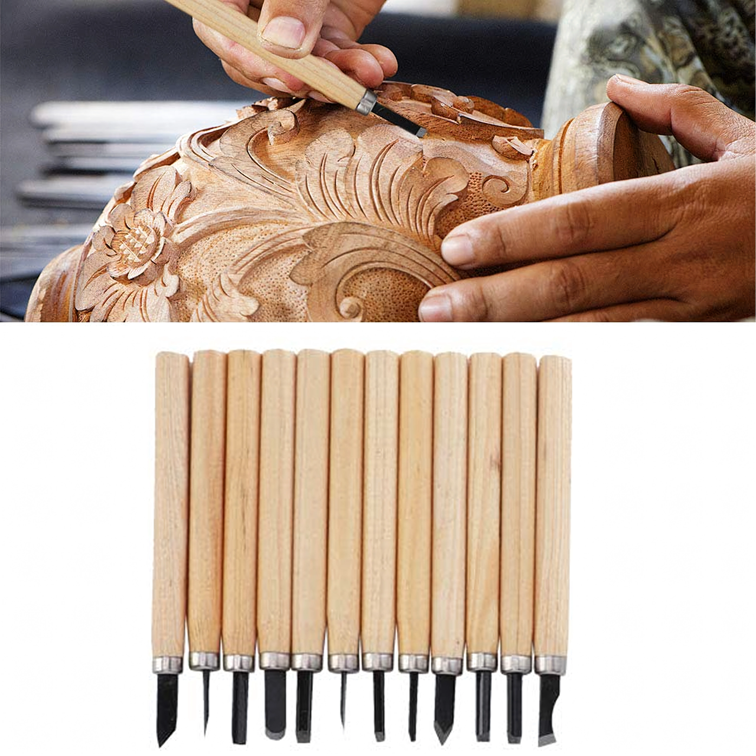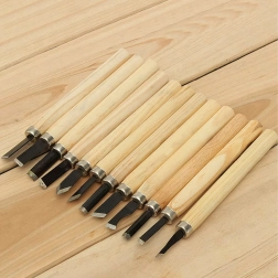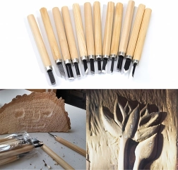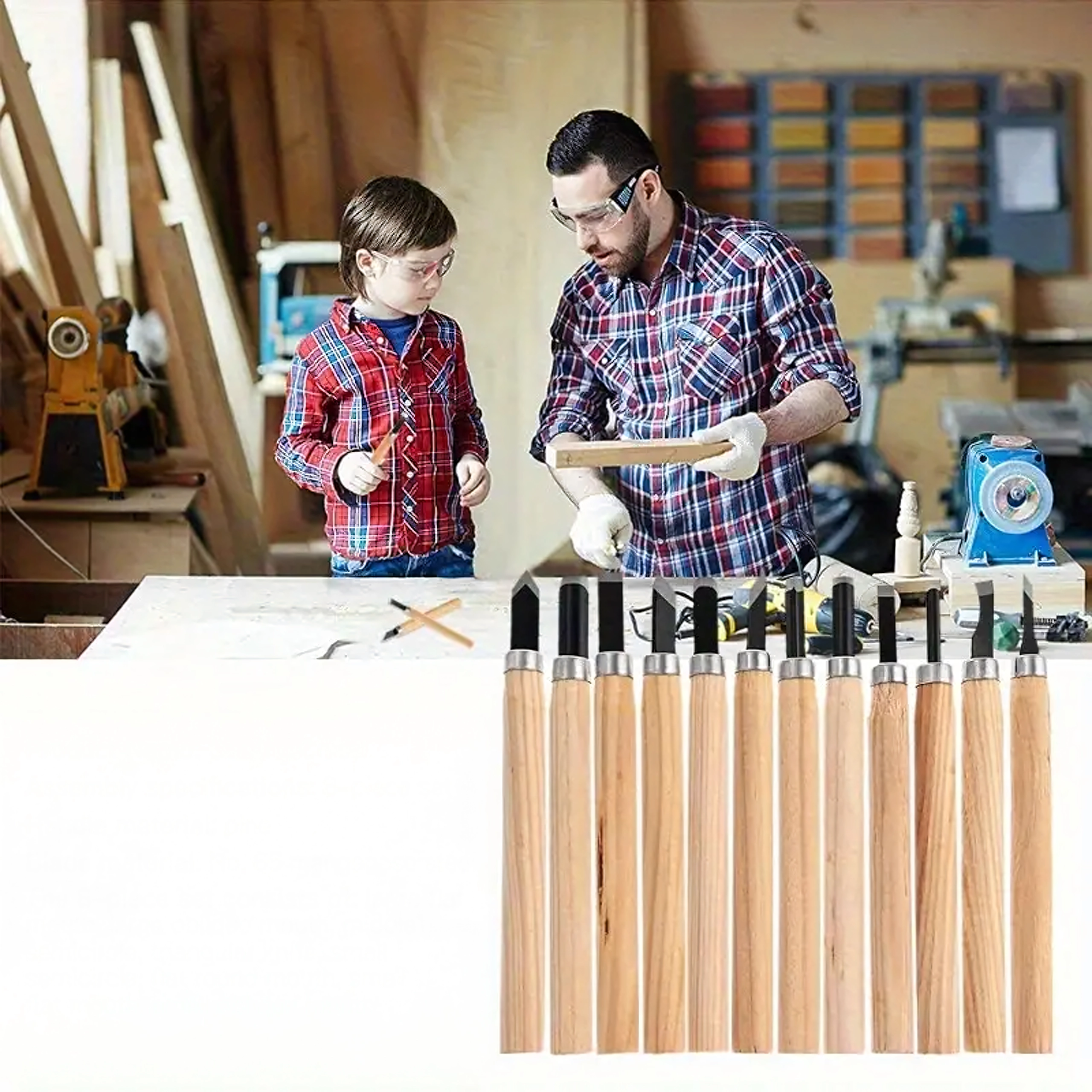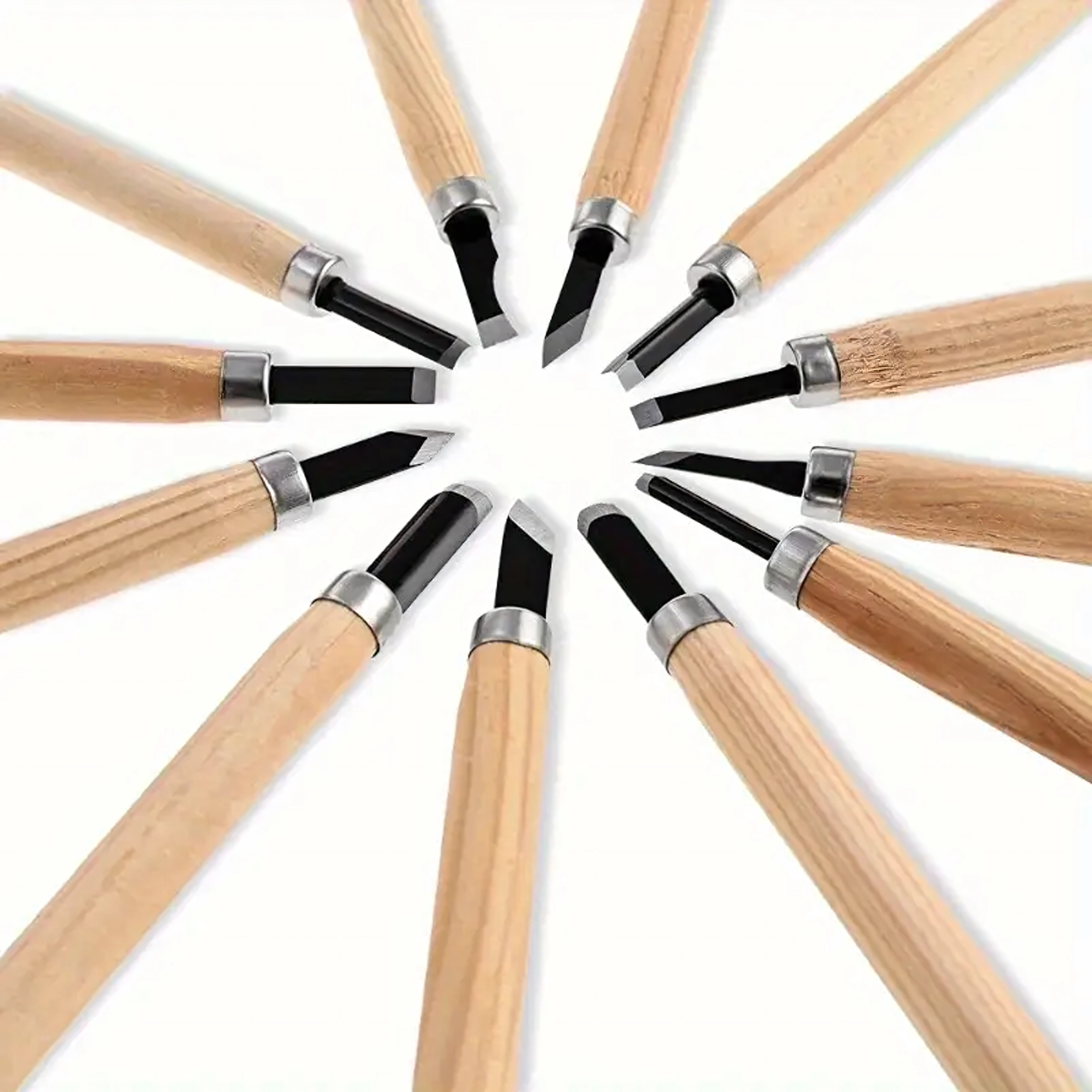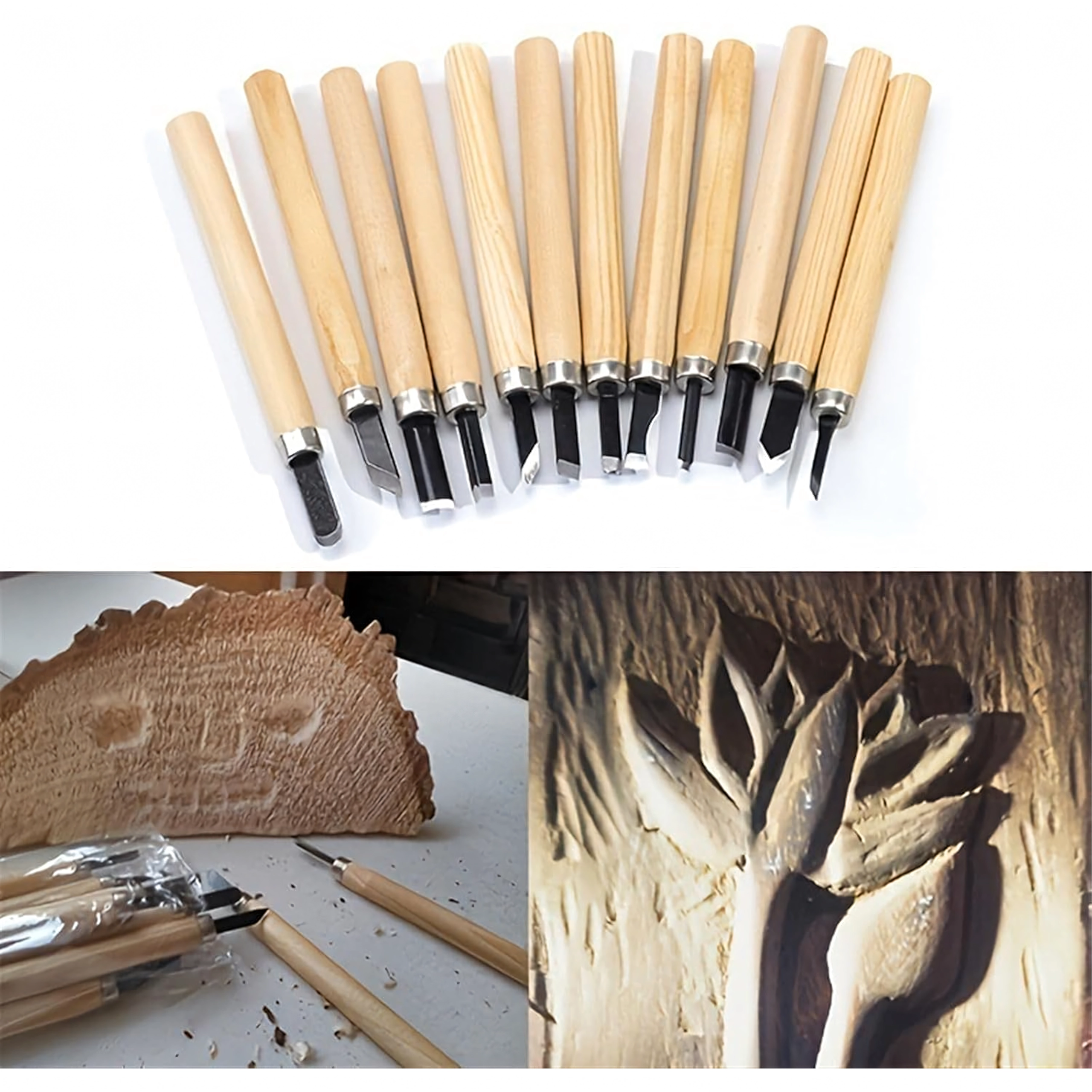 Set vključuje ravna, V in U dleta za detajle, poglobitve in ravno odstranjevanje materiala – vse, kar potrebujete za rezbarske projekte.
