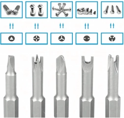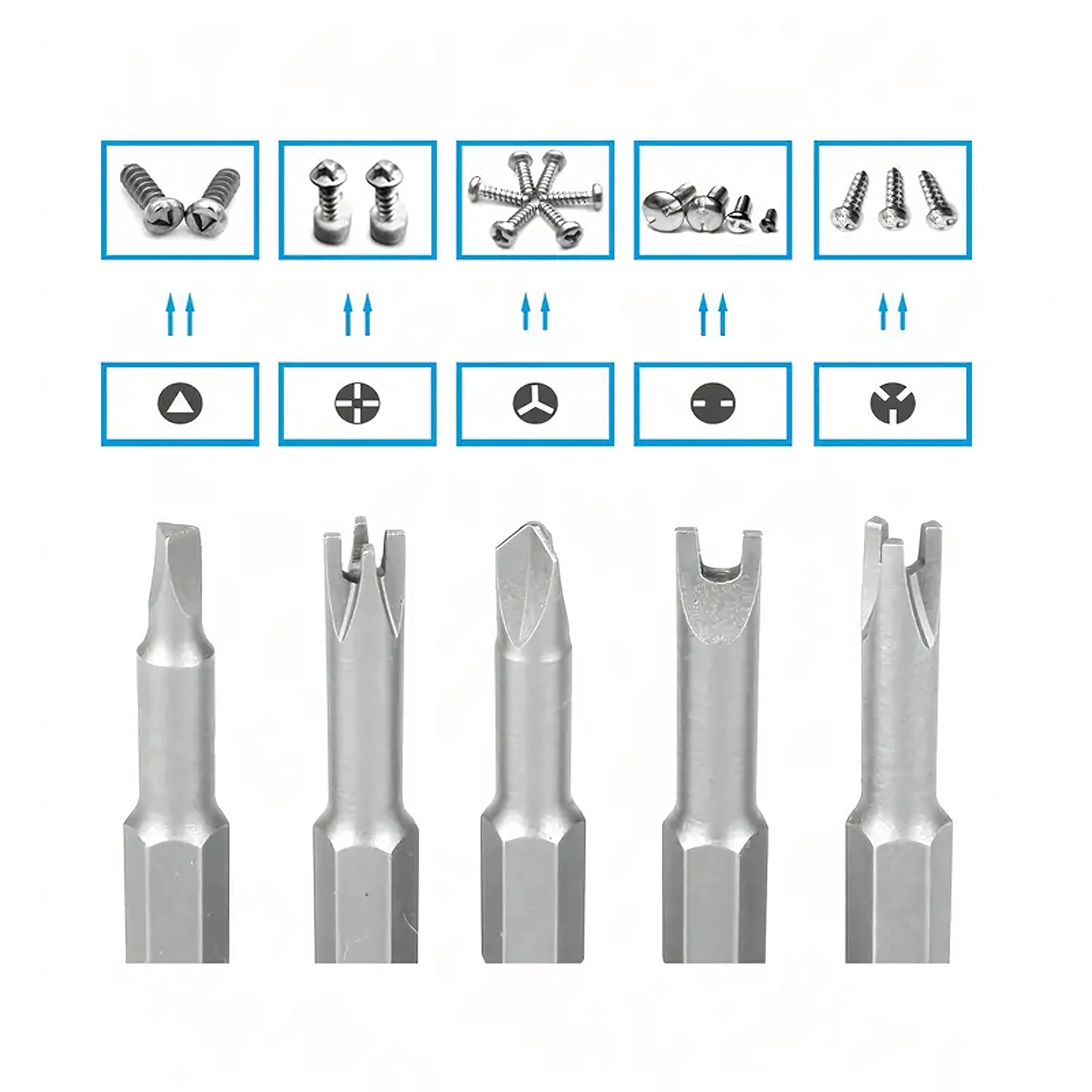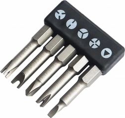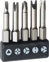 Združljivo z večino ročnih izvijačev in akumulatorskih vrtalnikov zahvaljujoč standardnemu vpenjanju. Komplet je idealen za servis elektronike, manjša popravila pohištva, delo na GSA/aparatih in varnostnih elementih, kjer je zahtevana posebna profilacija vijakov.