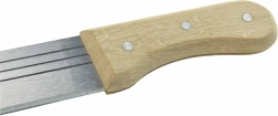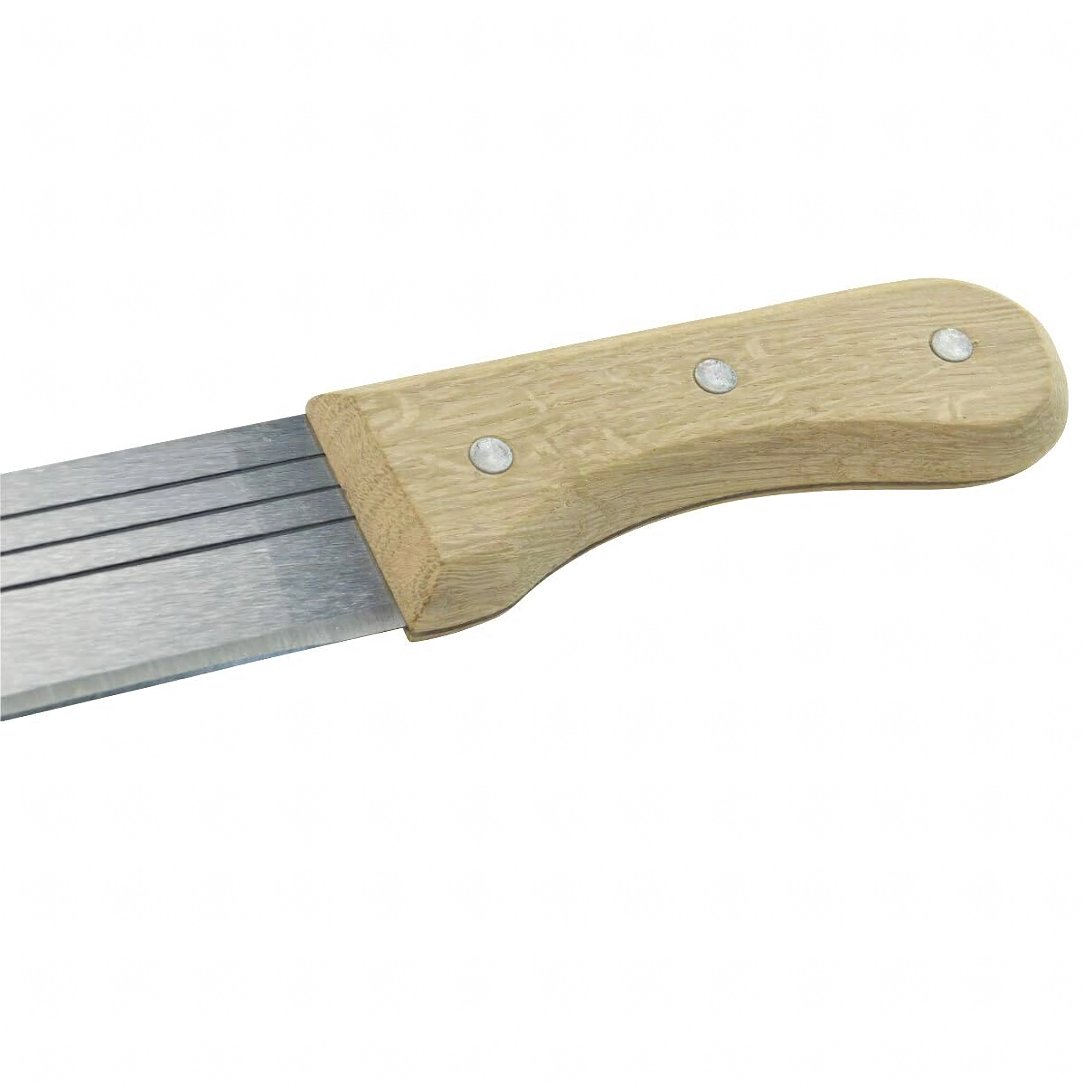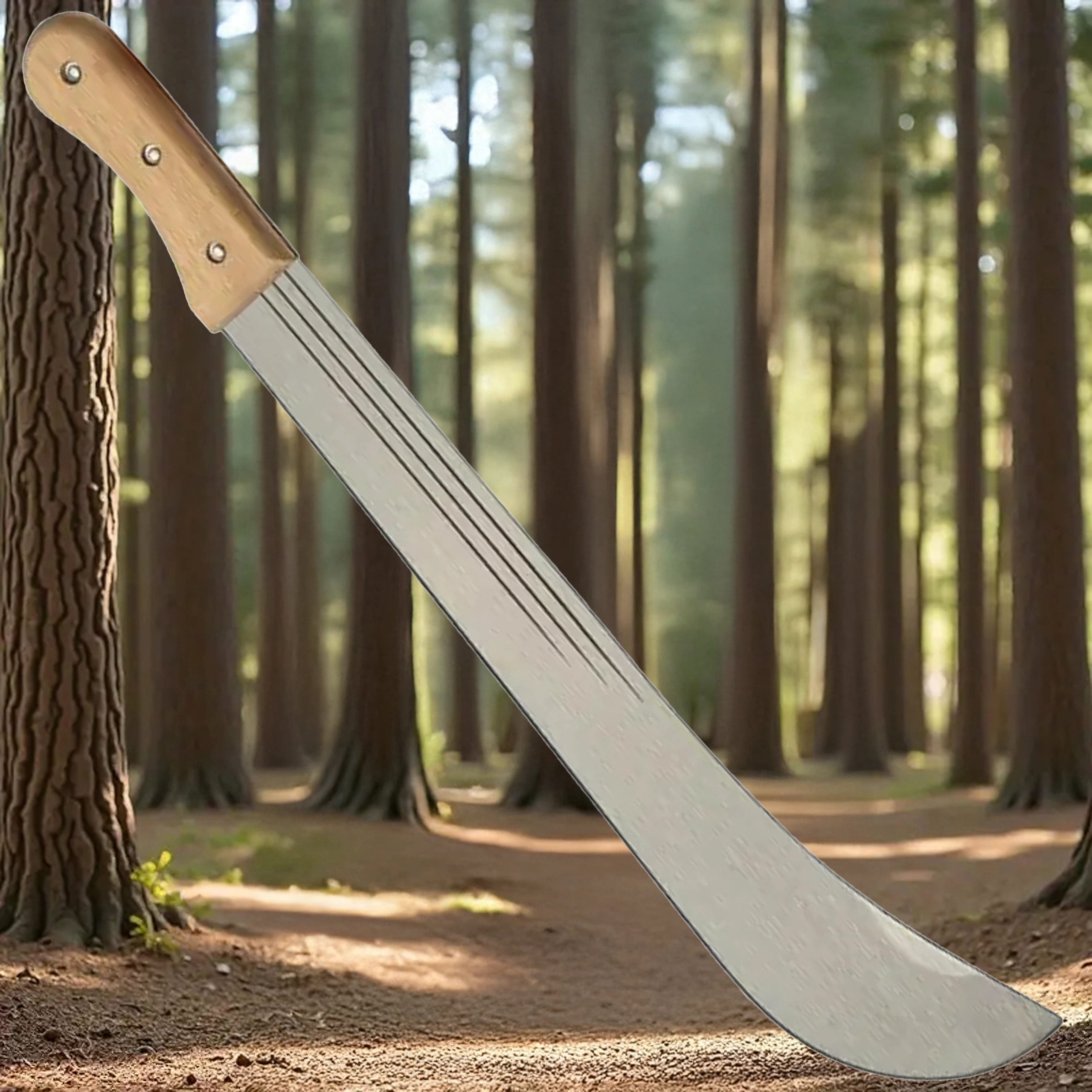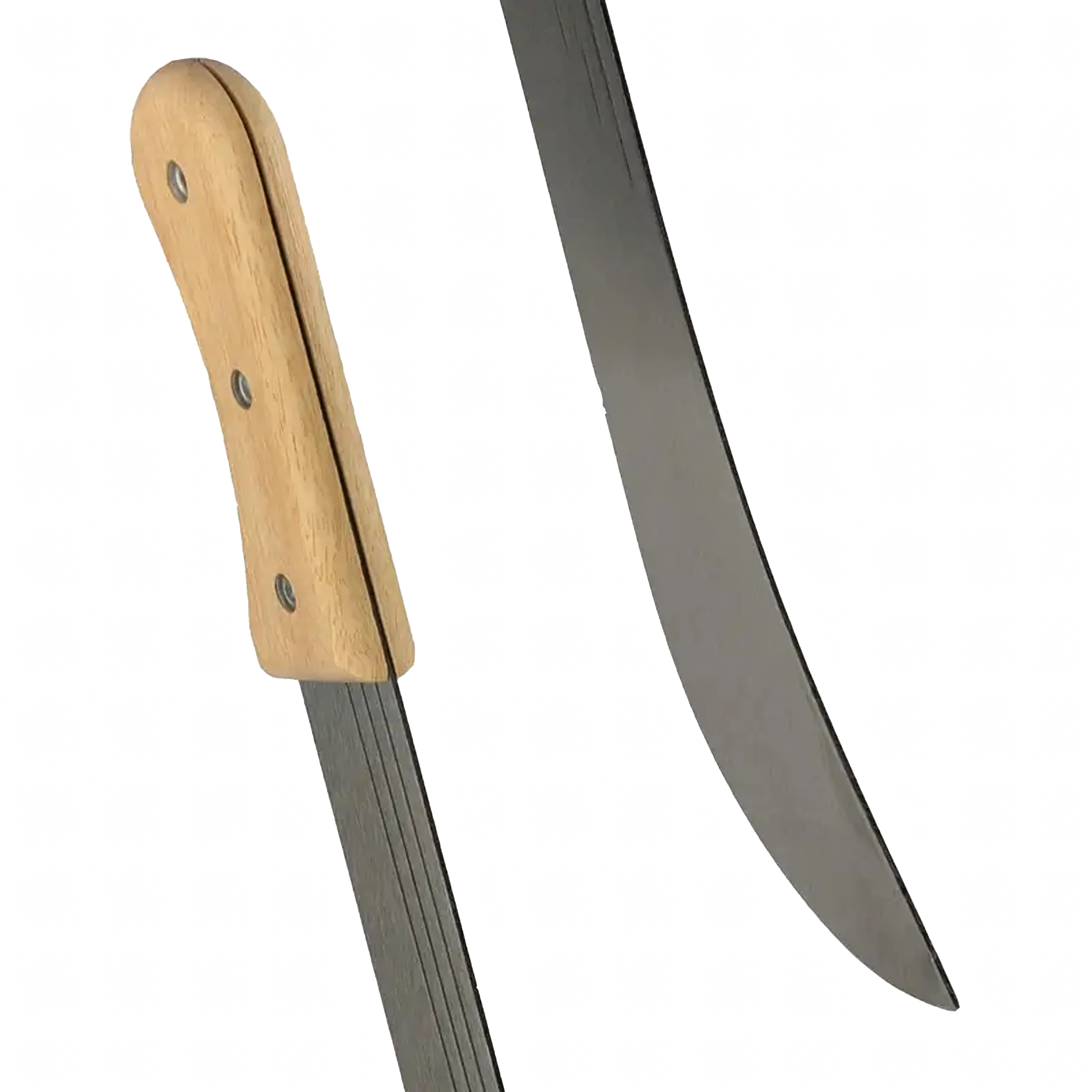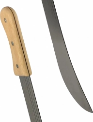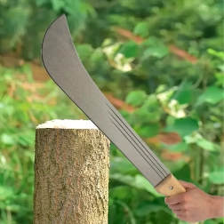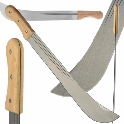 Ta kaljena mačeta združuje dolgo ukrivljeno rezilo iz kakovostnega jekla z udobnim lesenim ročajem za zanesljiv oprijem. Zaradi uravnotežene konstrukcije nudi gladek in učinkovit rez pri presekavanju goščave, odstranjevanju invazivnih rastlin ali hitrem oblikovanju rastja.