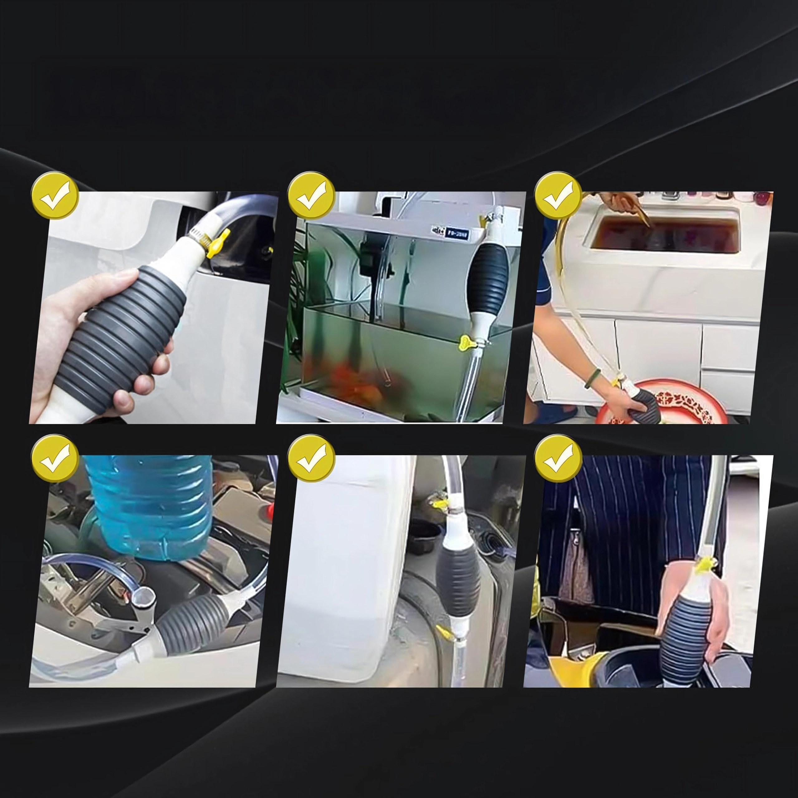 Praktična ročna sifonska črpalka s 1 m dolgo cevjo omogoča hitro in varno črpanje goriva, olja, dizla, vode in drugih tekočin. Zahvaljujoč povratnemu ventilu preprečuje povratni tok in olajša začetek pretoka. Je kompaktna, trpežna in enostavna za uporabo – idealna za dom, garažo in delavnico.