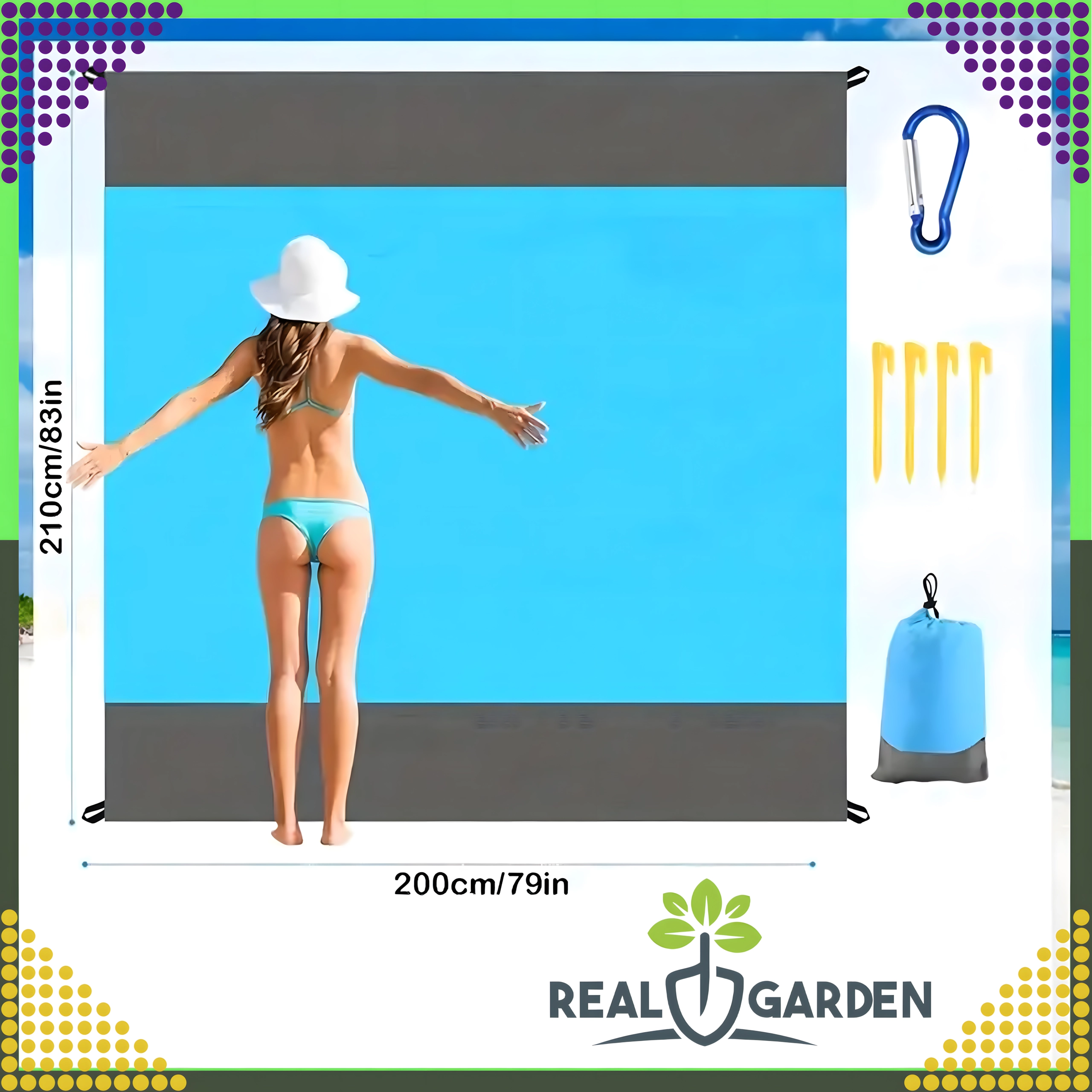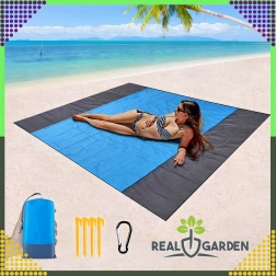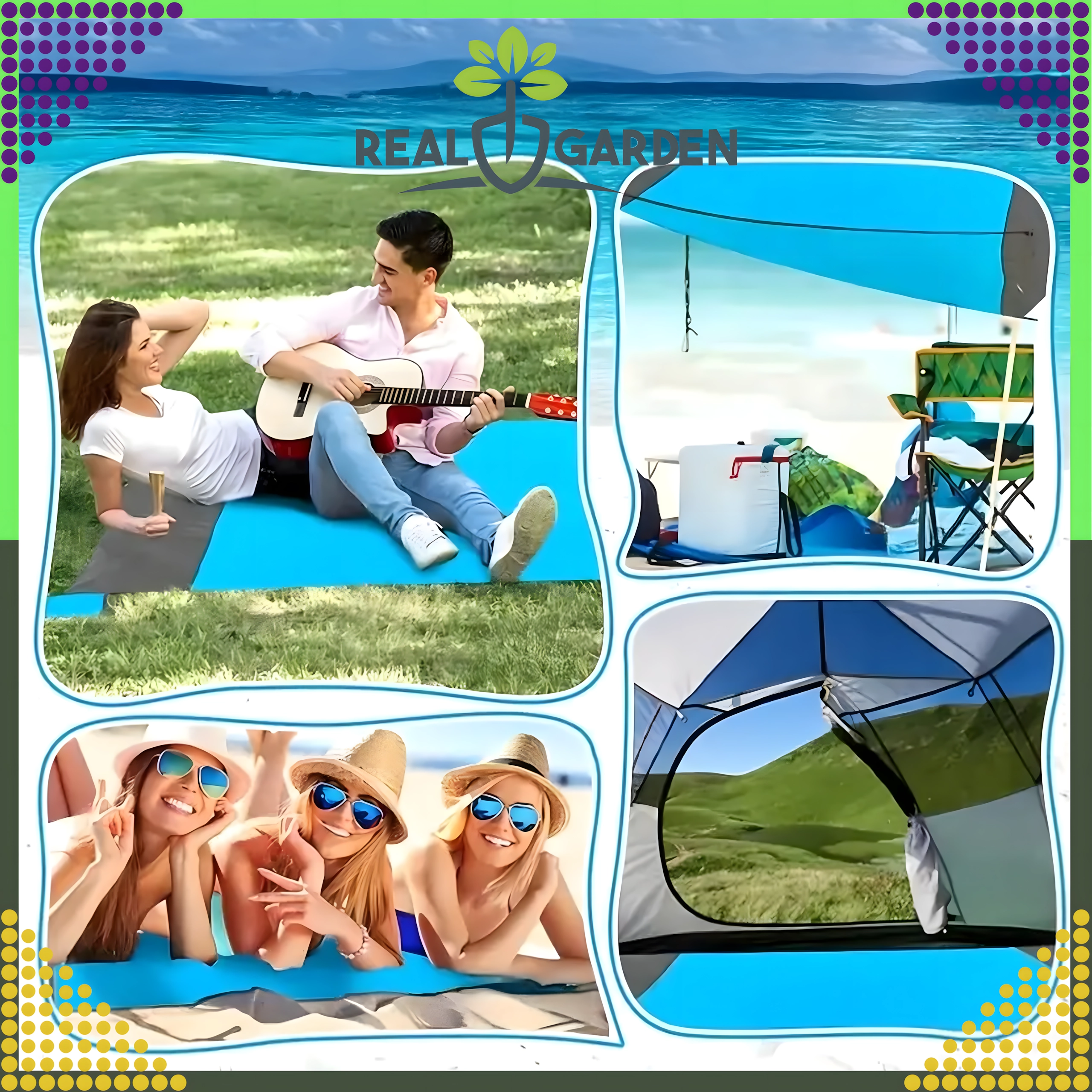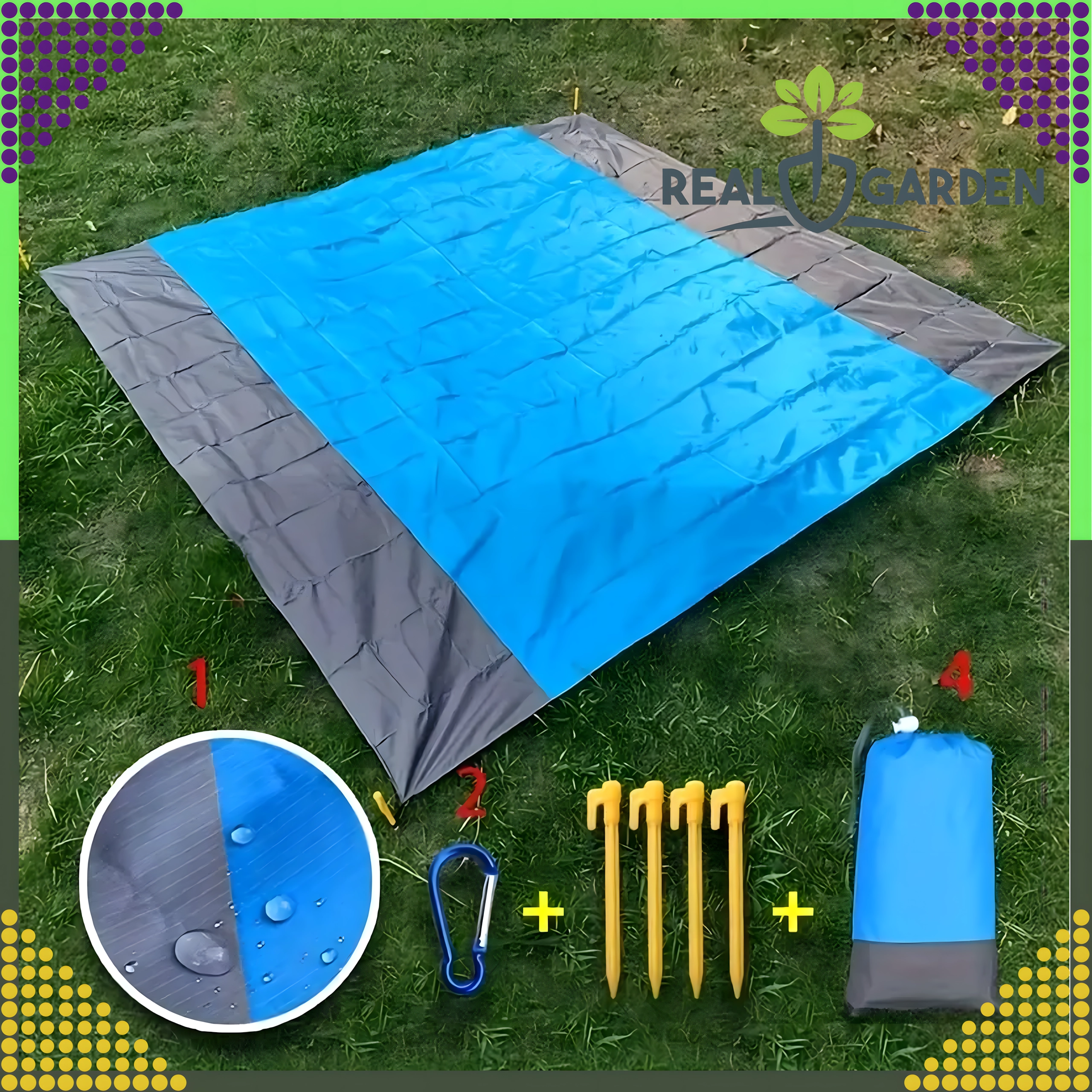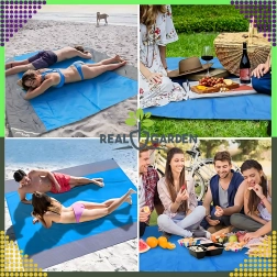 Praktična in udobna plažna/piknik odeja velikosti 210 × 200 cm je idealna za plažo, piknik in kampiranje. Je vodoodporna, lahka, enostavno se zloži in se zahvaljujoč klinčkom/možnostim pritrditve trdno drži na mestu. Priložen je praktičen ovitek. Odeja ščiti pred vlago, se enostavno čisti in na njej udobno sedi celotna družina.