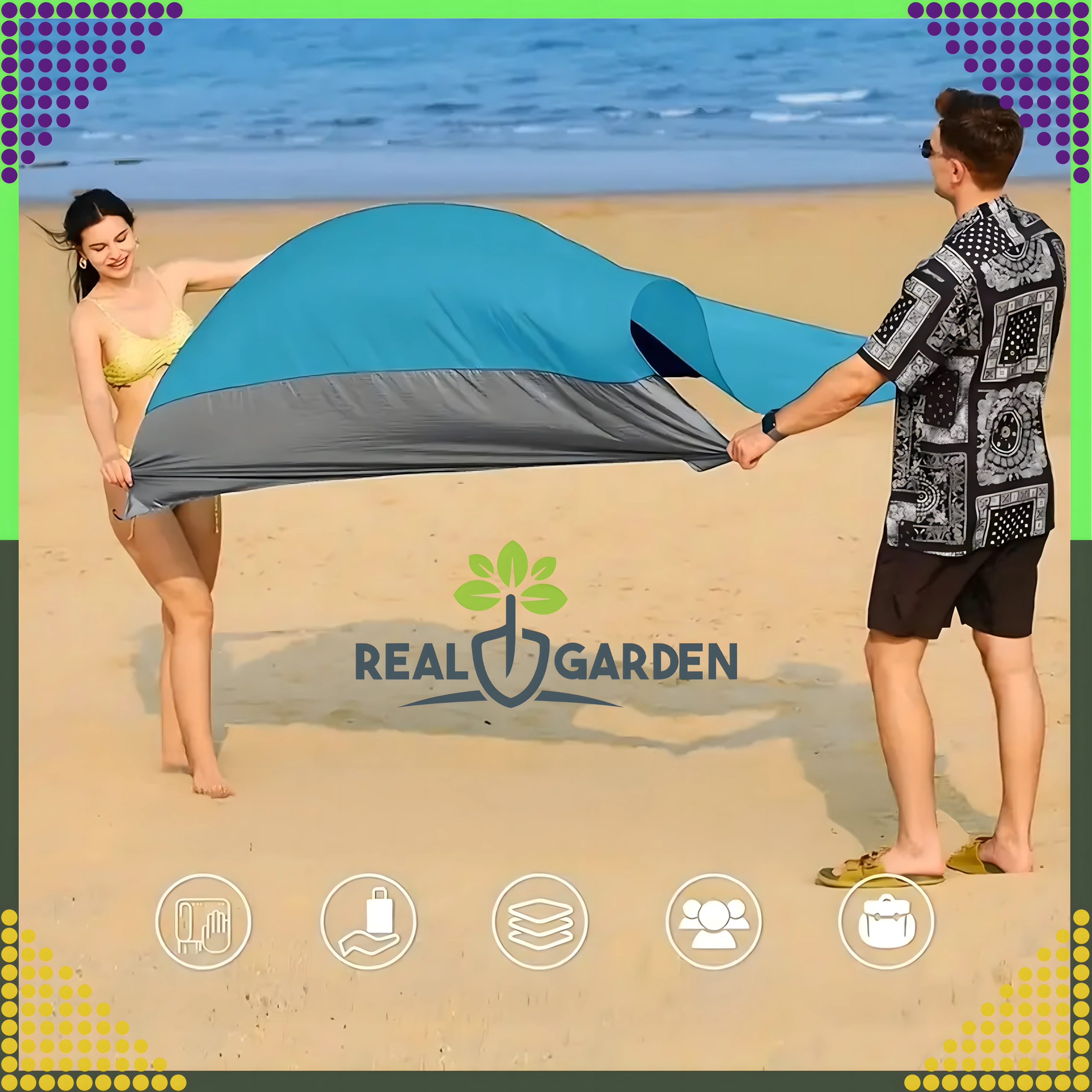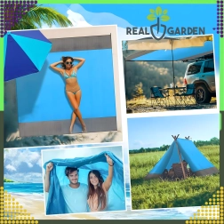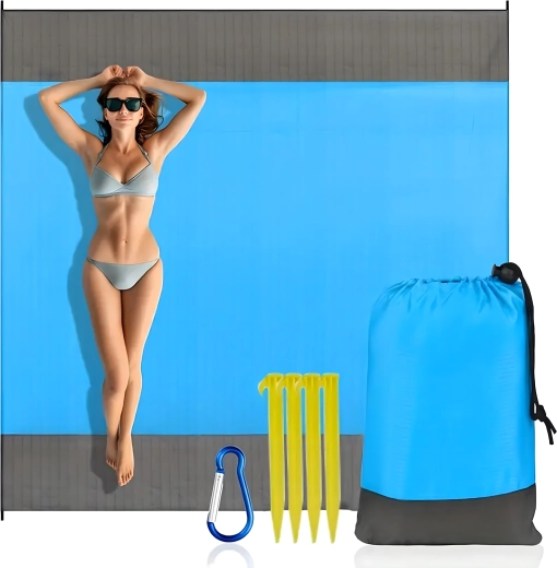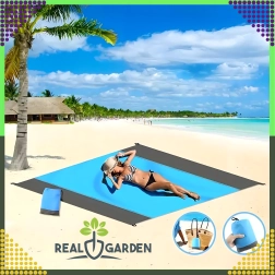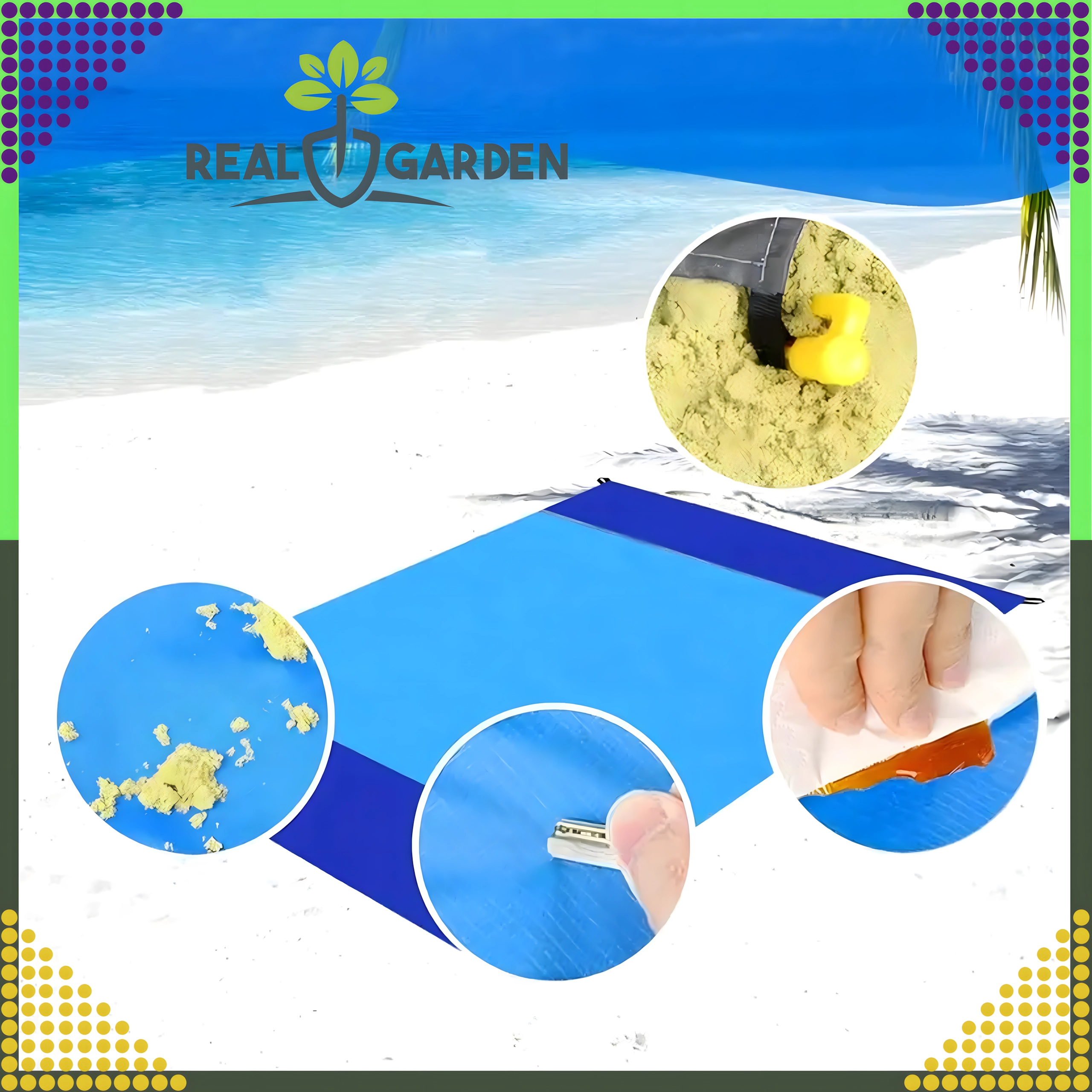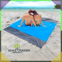 Praktična in udobna plažna/piknik odeja velikosti 210 × 200 cm je idealna za plažo, piknik in kampiranje. Je vodoodporna, lahka, enostavno se zloži in se zahvaljujoč klinčkom/možnostim pritrditve trdno drži na mestu. Priložen je praktičen ovitek. Odeja ščiti pred vlago, se enostavno čisti in na njej udobno sedi celotna družina.