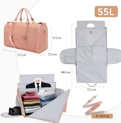 Praktična in stilna potovalna torba 2v1 s prostornino 55 l združuje prostoren vikend/duffel bag in integriran ovitek za obleko ali obleko. Je vodoodporna, vzdržljiva in zložljiva, idealna za službena potovanja, vikend izlete in business travel – vaše oblačila ohrani brez gub in vse pregledno organizira.