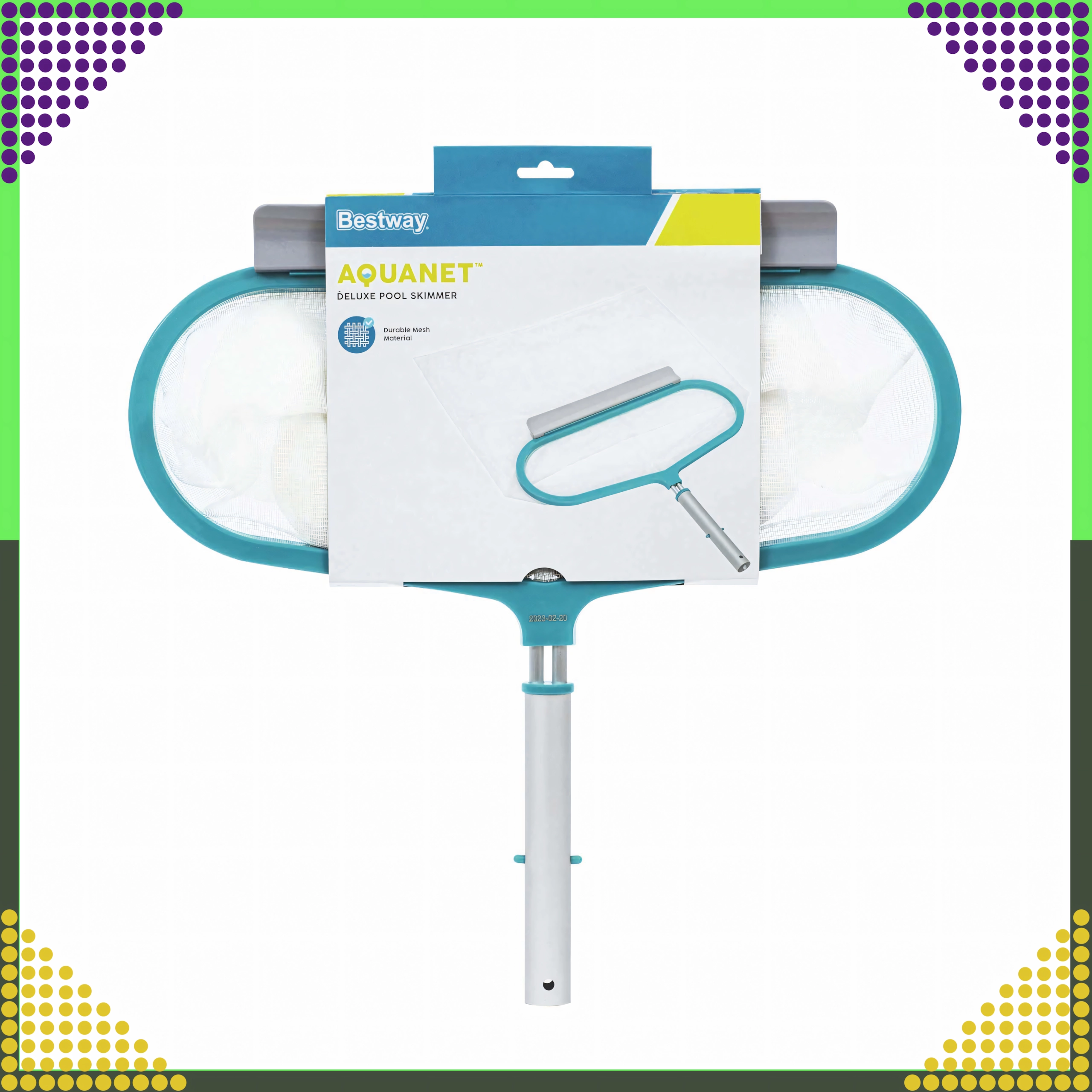 Praktična in zanesljiva mrežica Bestway AquaNet Deluxe je zasnovana za enostavno vzdrževanje bazenov vseh velikosti. Lahkoten in trpežen aluminijast okvir zagotavlja dolgo življenjsko dobo in odpornost proti koroziji, medtem ko fina mrežica zanesljivo ujame tudi drobne nečistoče z vodne gladine.