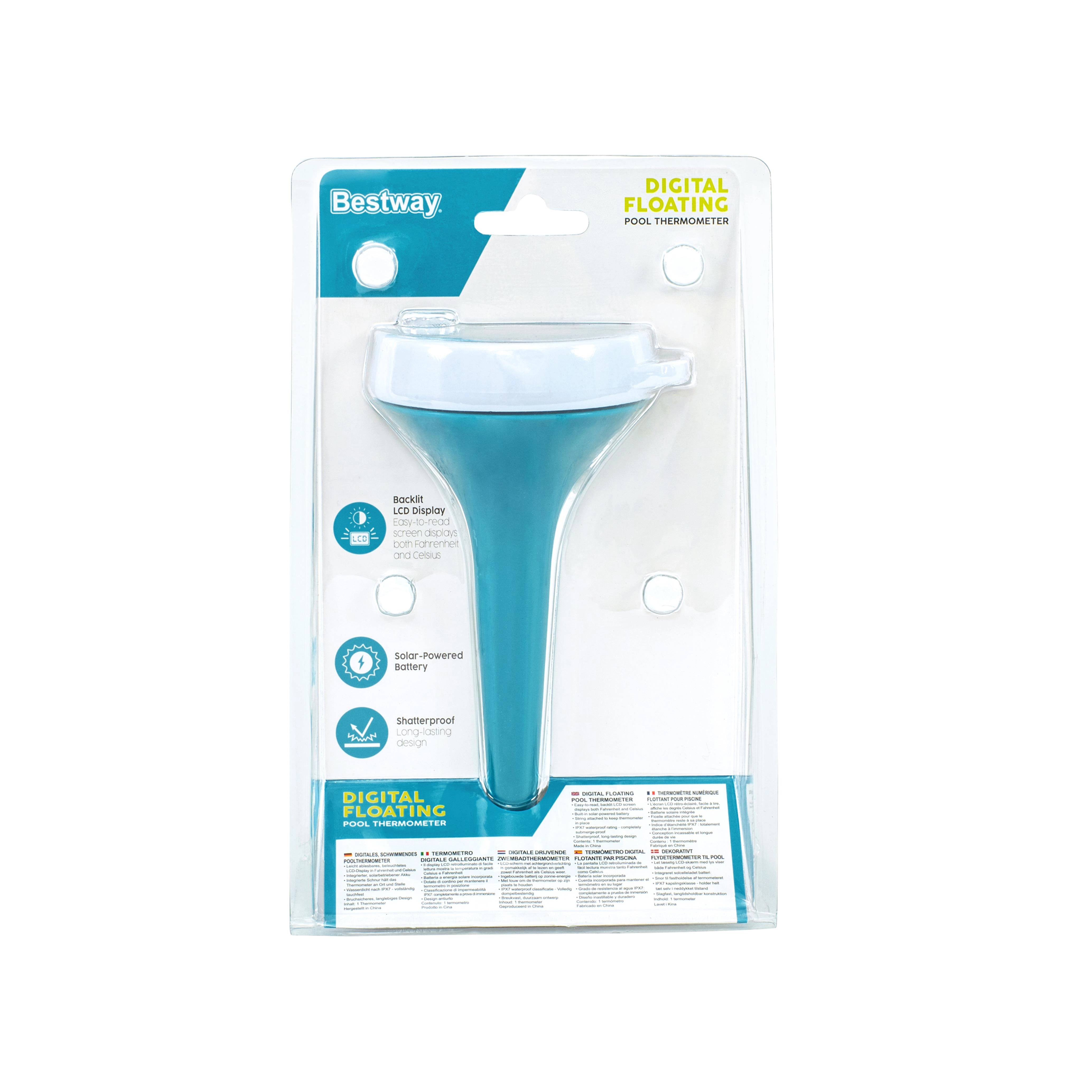 Digitalni sončni termometer BESTWAY je praktična rešitev za bazene, masažne kadi in vrtna jezerca. Plavajoča zasnova s preglednim zaslonom takoj pokaže trenutno temperaturo vode, sončni panel pa zagotavlja ekološko, brezvzdrževalno delovanje brez potrebe po menjavi baterij.