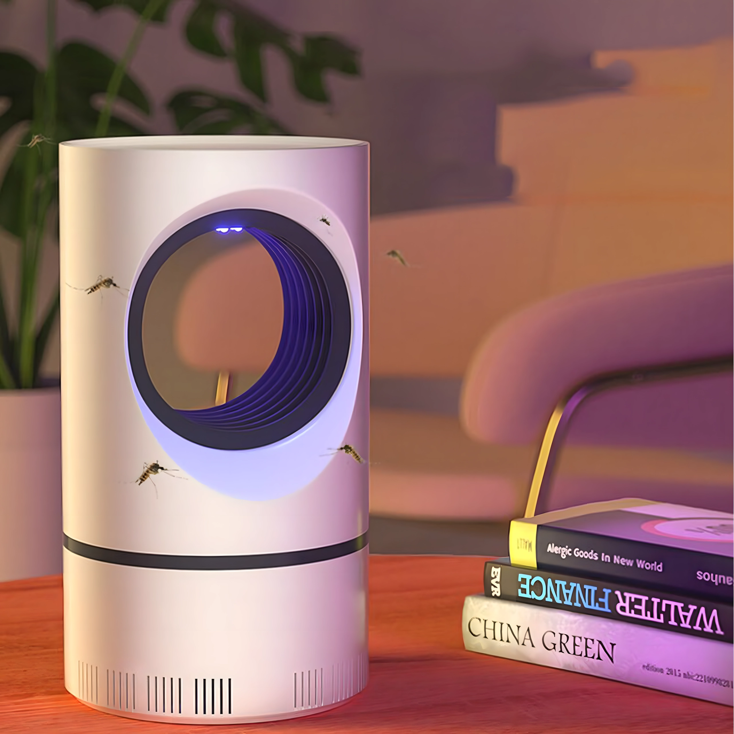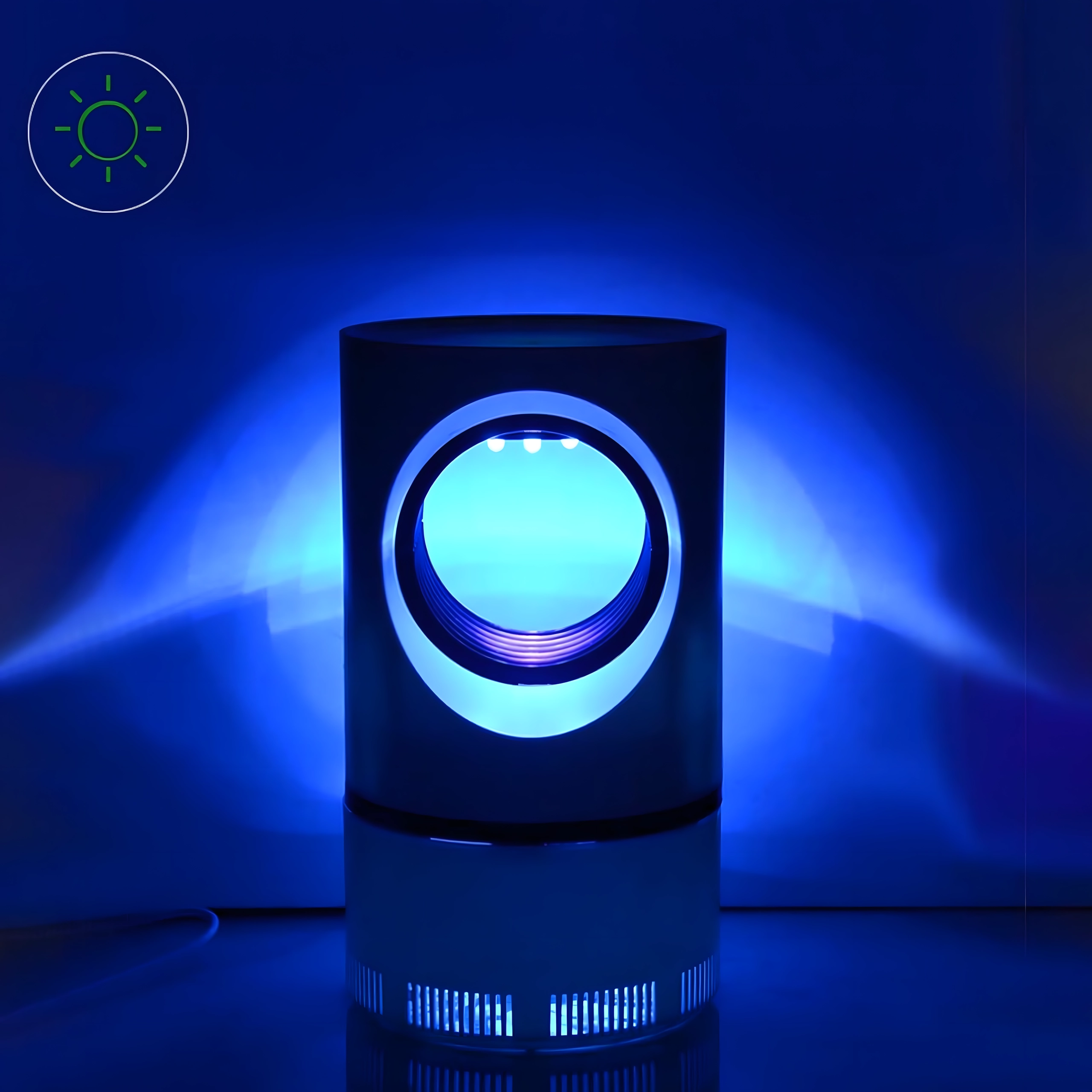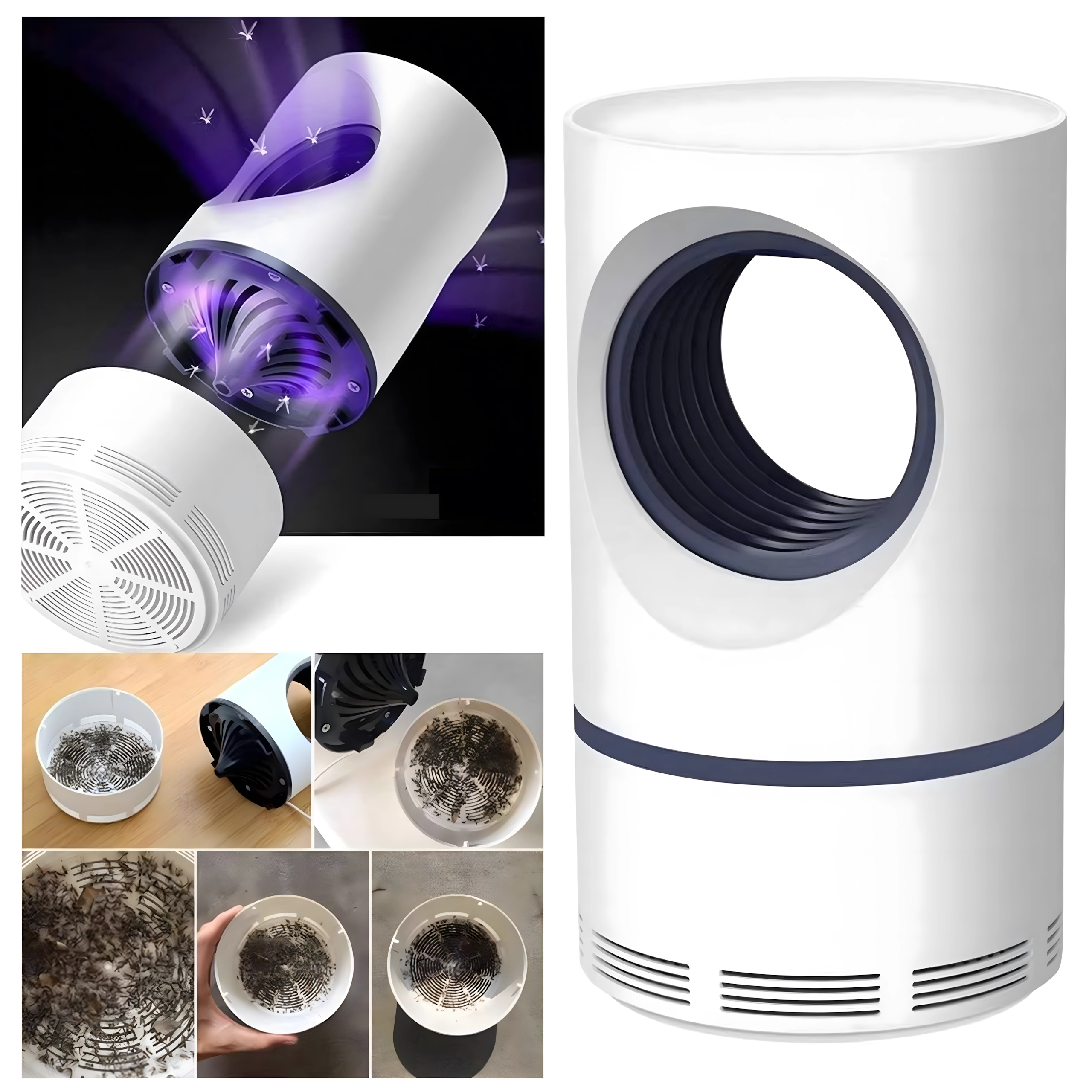 Sodoben UV lovilec insektov združuje učinkovito UV LED svetlobo in tih sesalni ventilator. Privabljene komarje in muhe varno posrka ter zaklene v spodnji posodici brez uporabe kemikalij. Idealna rešitev za miren spanec in prijetne večere doma in na terasi.