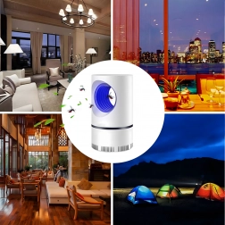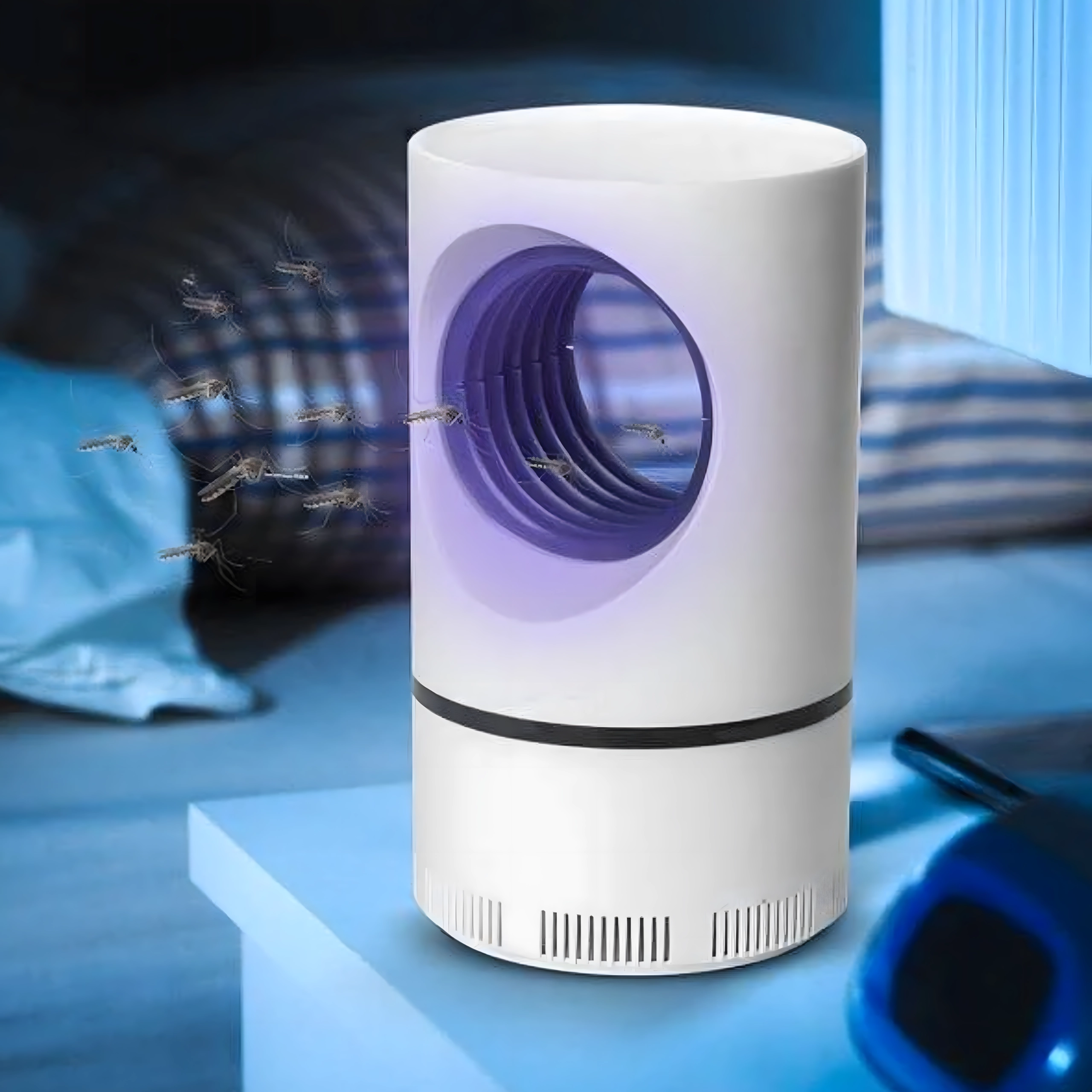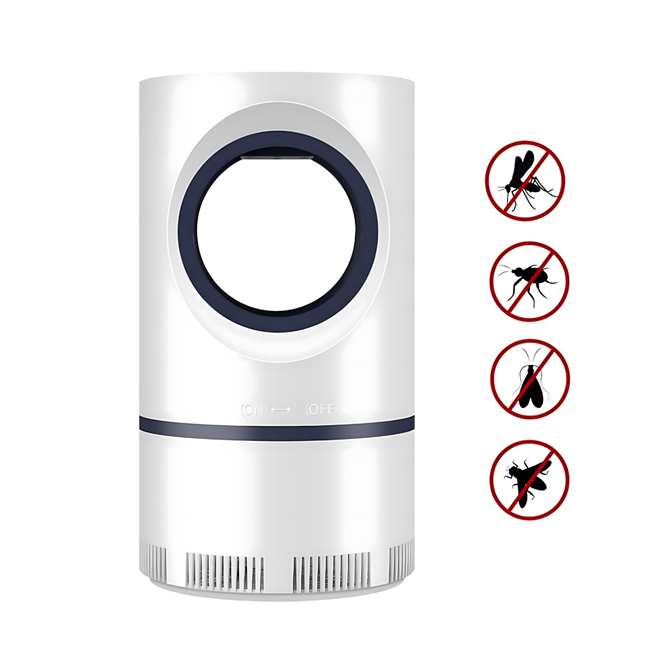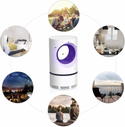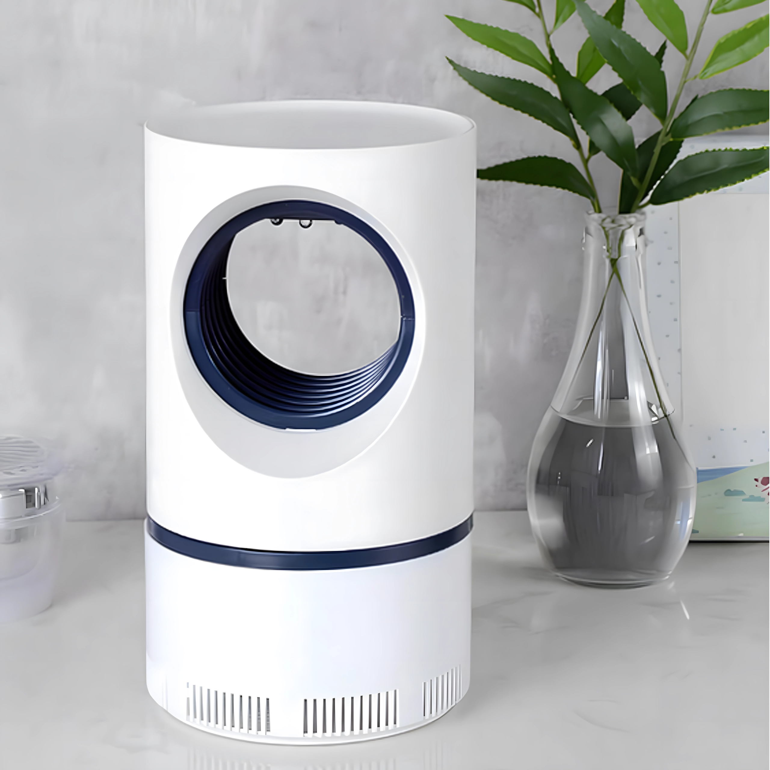 Sodoben UV lovilec insektov združuje učinkovito UV LED svetlobo in tih sesalni ventilator. Privabljene komarje in muhe varno posrka ter zaklene v spodnji posodici brez uporabe kemikalij. Idealna rešitev za miren spanec in prijetne večere doma in na terasi.