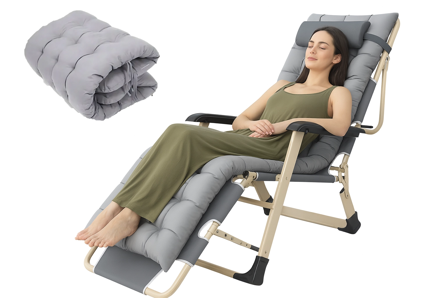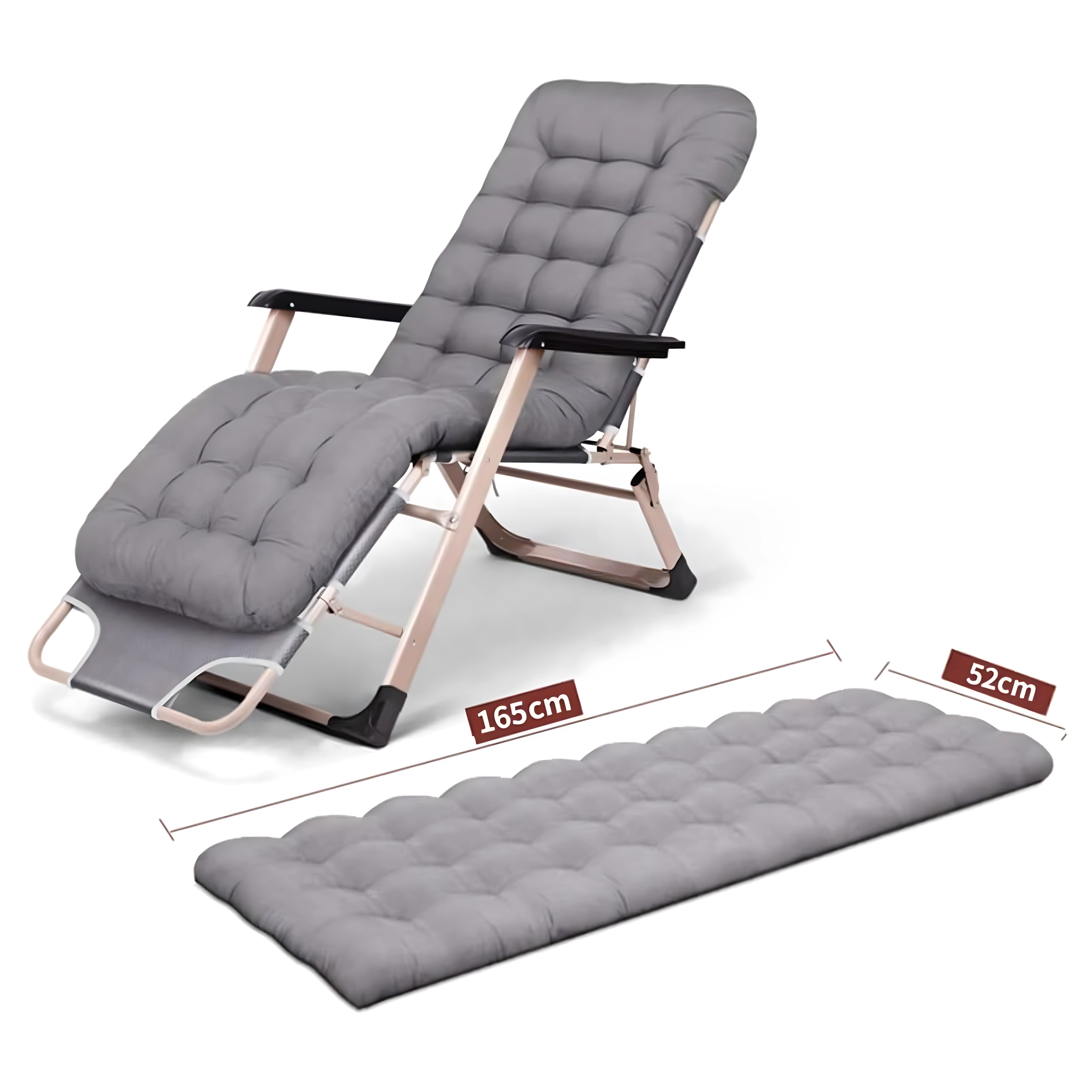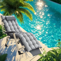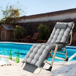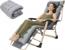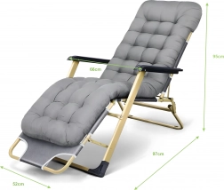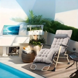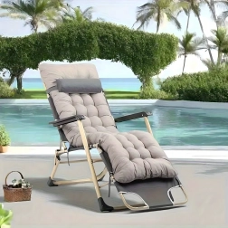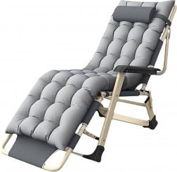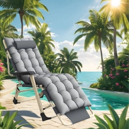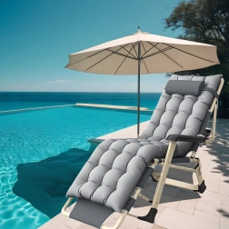 Praktičen in eleganten ležalnik za vaš počitek. Gosto oblazinjenje z odstranljivo blazinico zagotavlja prijetno oporo glave in hrbta, medtem ko stabilna zložljiva konstrukcija poskrbi za varno in udobno ležanje doma in na prostem. Materiali so nezahtevni za vzdrževanje in odporni na običajne vremenske vplive.