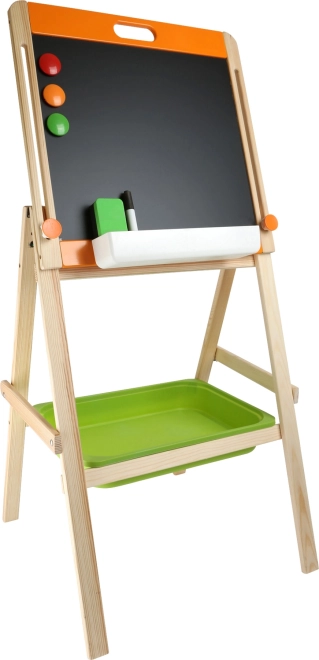 Odkrijte univerzalno tablo 2v1 za otroke od 4. leta – leseno, stabilno in po višini nastavljivo. Ponuja črno kredno in belo magnetno stran za risanje, pisanje in učenje. Priloženi so zeleni shranjevalni okvir in dodatki za takojšnjo uporabo. Idealna za razvoj ustvarjalnosti in fine motorike ter za zabavno učenje doma. Dvostranska tabla, magnetna bela površina in črna kredna površina, nastavljiva višina, stabilna lesena konstrukcija, shranjevalni prostor.