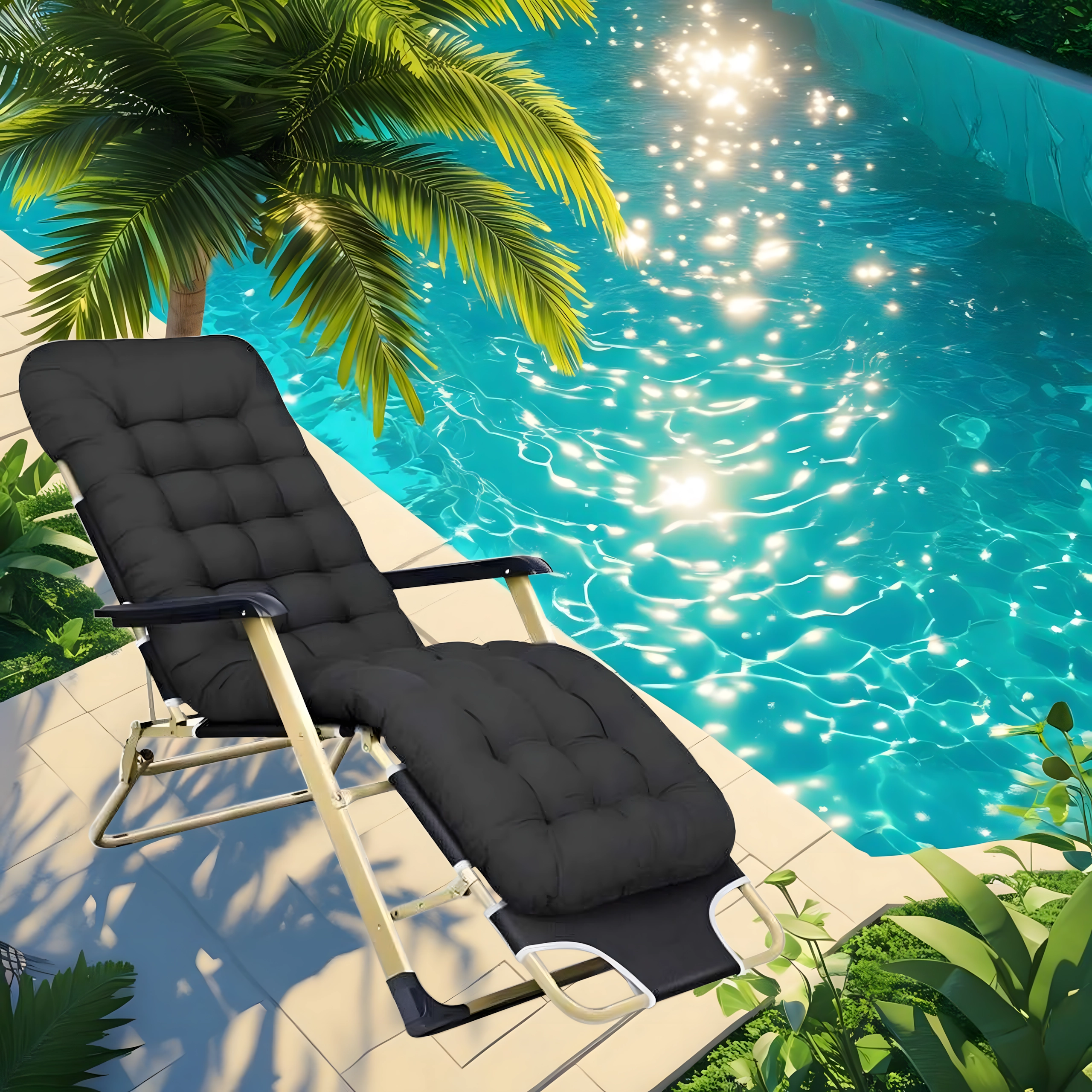 Ležalnik preprosto zložite v kompaktno velikost in ga odnesete kamorkoli – na vrt, teraso, balkon, plažo ali v kamp.