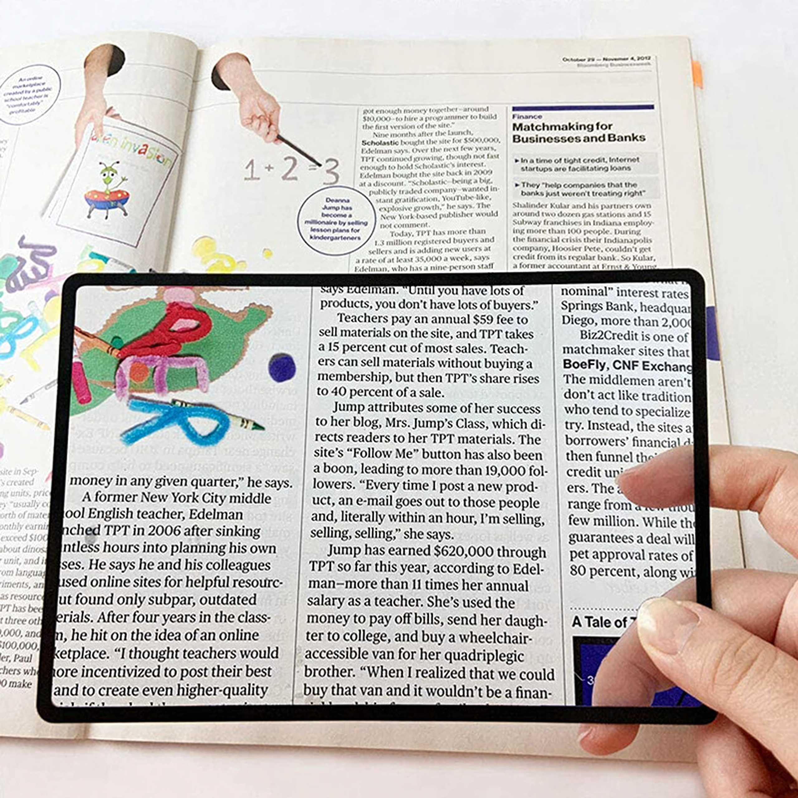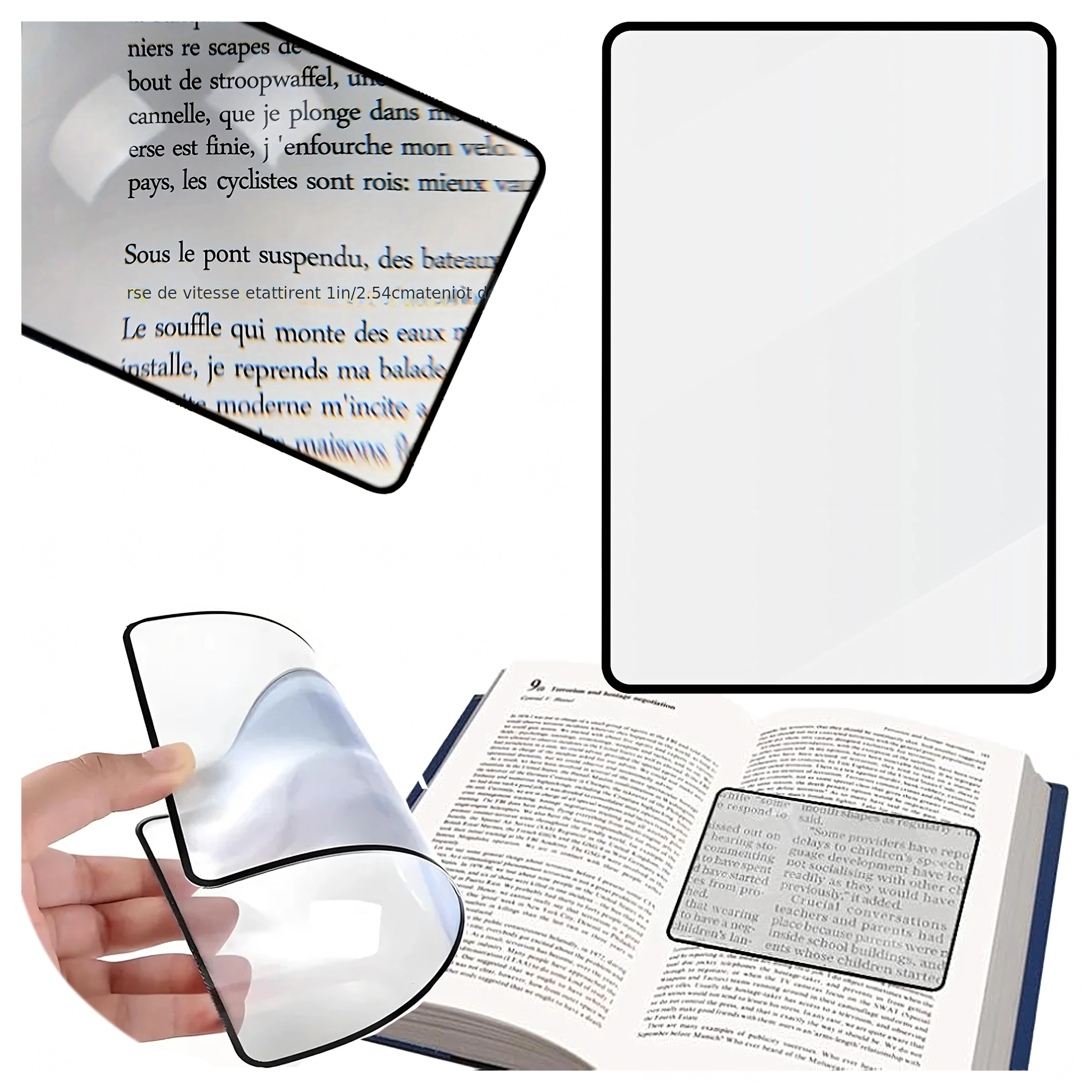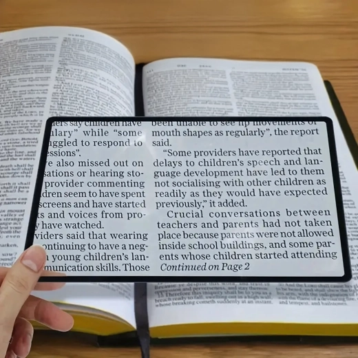 Praktična stranovna lupa s fleksibilnim plastičnim lečnim listom poveča besedilo in podrobnosti do 200 %. Zahvaljujoč tanki izvedbi z lahkim okvirjem se udobno drži, lahko jo položite neposredno na stran in berete brez naprezanja oči.