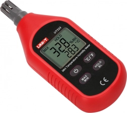 UNI‑T UT333 je priročen merilnik za hitro kontrolo mikroklime. Meri temperaturo v območju −10 do 60 °C ter vlažnost 0–100 % RH z natančnostjo, primerno za vsakodnevno in profesionalno uporabo. Kompaktno ohišje, nizka masa in osvetljen zaslon omogočajo udobno uporabo tudi v slabših svetlobnih pogojih.
