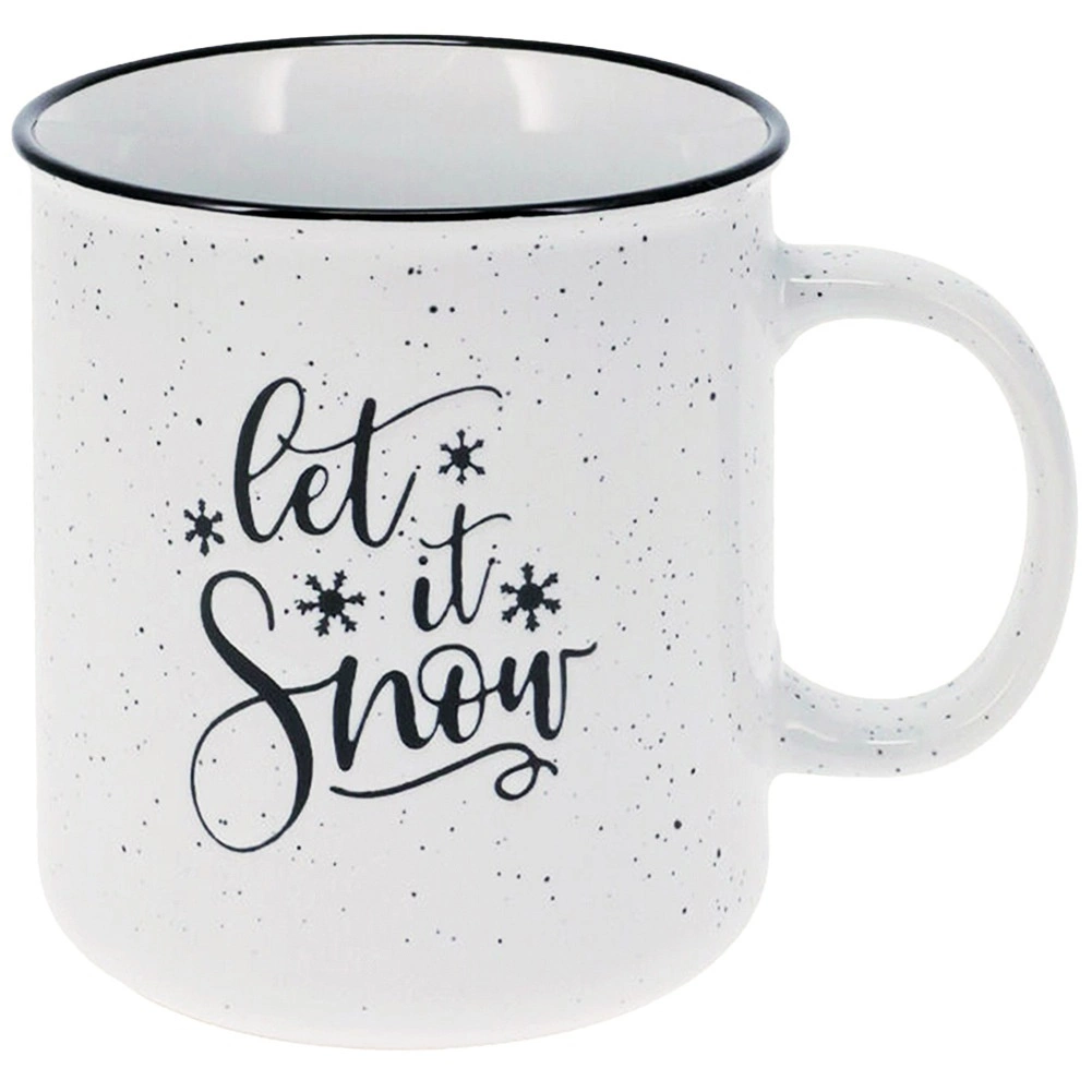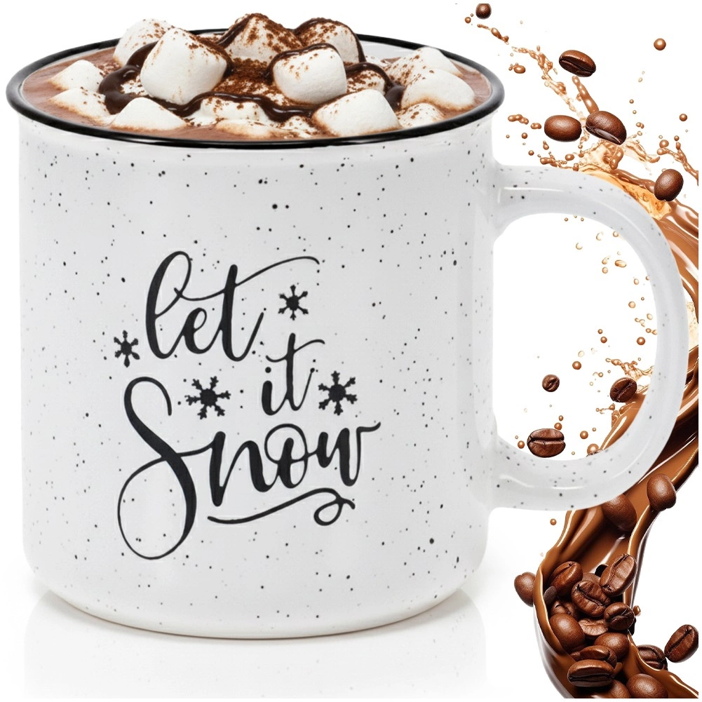 Odkrijte udobje velike prostornine v elegantnem zimskem dizajnu. Kameninasta skodelica z napisom Let it Snow in drobnim pikčastim vzorcem je idealna za dolge zimske večere – vaš napitek bo dlje časa topel, širok rob pa poskrbi za prijetno pitje.