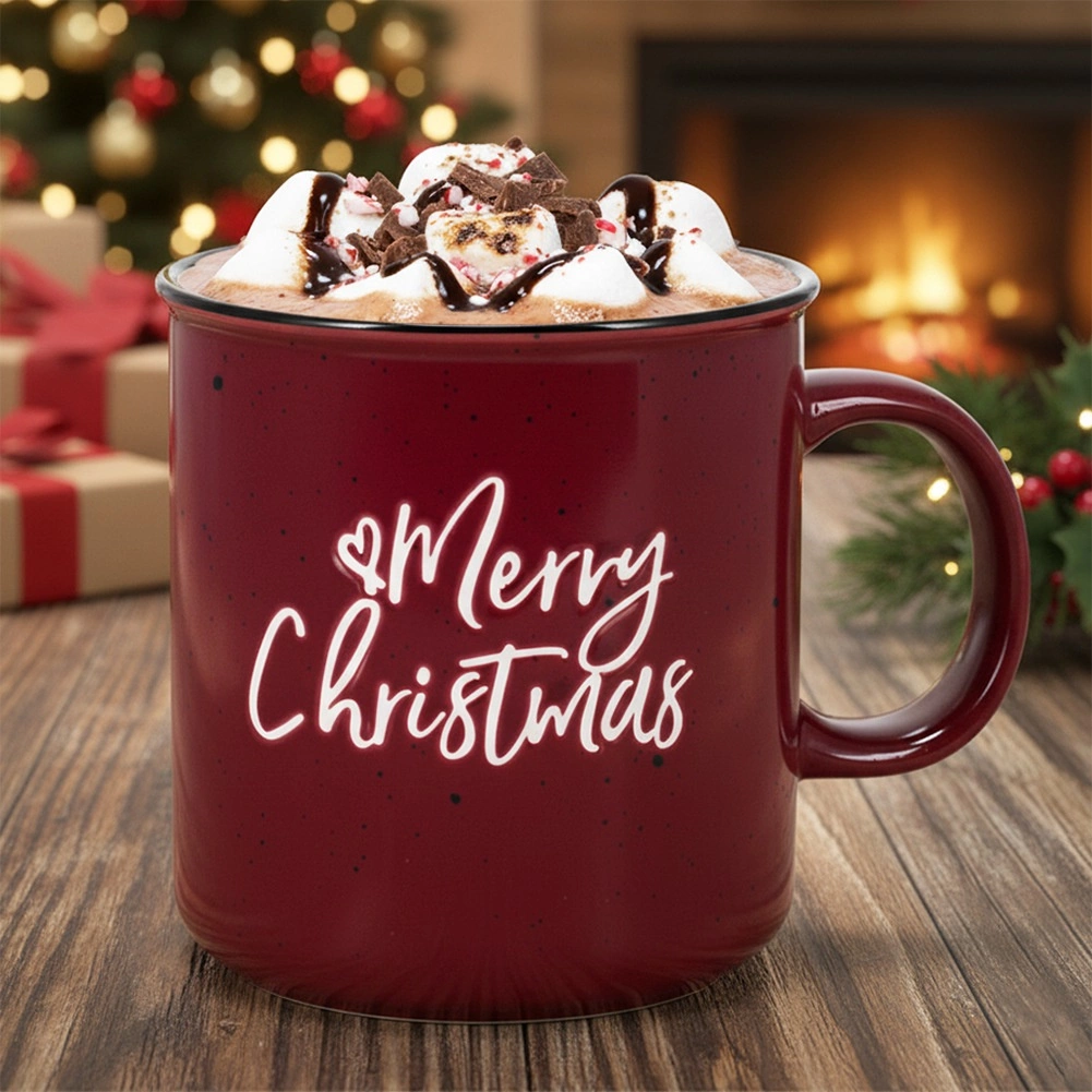 Reliefni napis, bordo glazura in sijoča površina pričarajo božično vzdušje pri vsakem obroku. Odlična ideja za darilo.