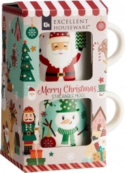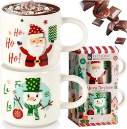Stilski komplet dveh božičnih skodelic iz kakovostnega porcelana v beli barvi bo polepšal vsak zimski dan. Skodelici z veselima motivoma SANTE in snežaka sta odlični za vsakodnevno uporabo in za slavnostne trenutke za mizo. Zahvaljujoč ergonomskemu ročaju sta prijetna za držanje in odlična za vroče napitke.