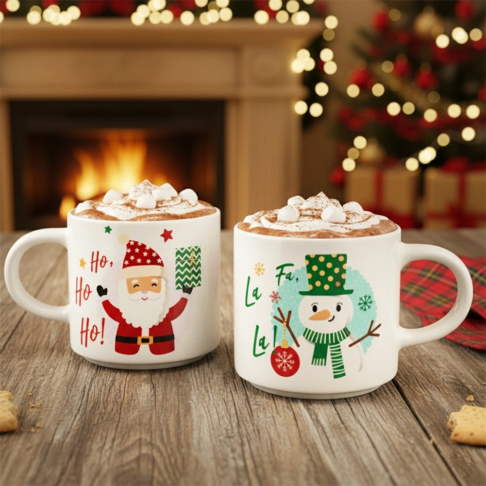 Dva motiva v enem setu – SANTA in snežak – popolna izbira za vroč čaj, kavo in kakav med adventom in božičem.
